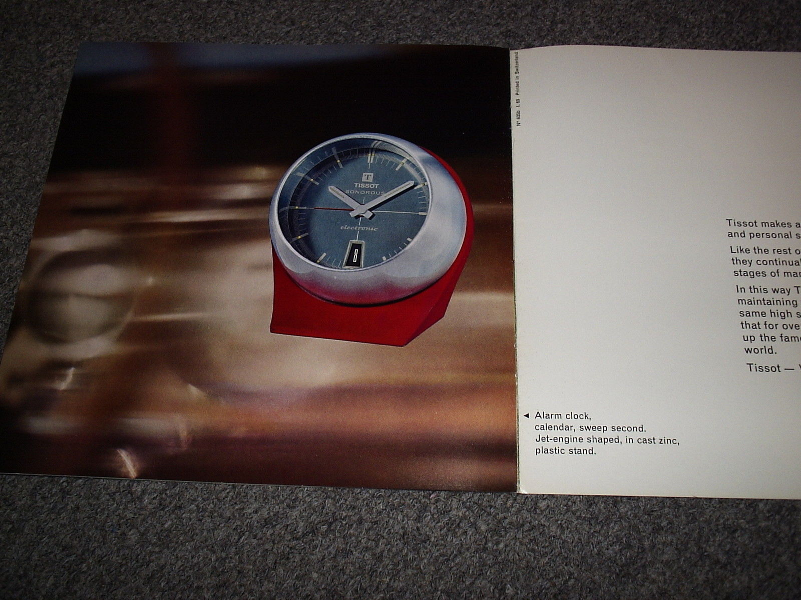 If anyone has any mid/early Seventies Tissot* brochures or catalogues could you please see if this is included anywhere and provide any descriptions given. Thank you. [* I know there were a couple of co-branded Omega/Tissot catalogues around this time but couldn't see this clock on old-omegas.com]