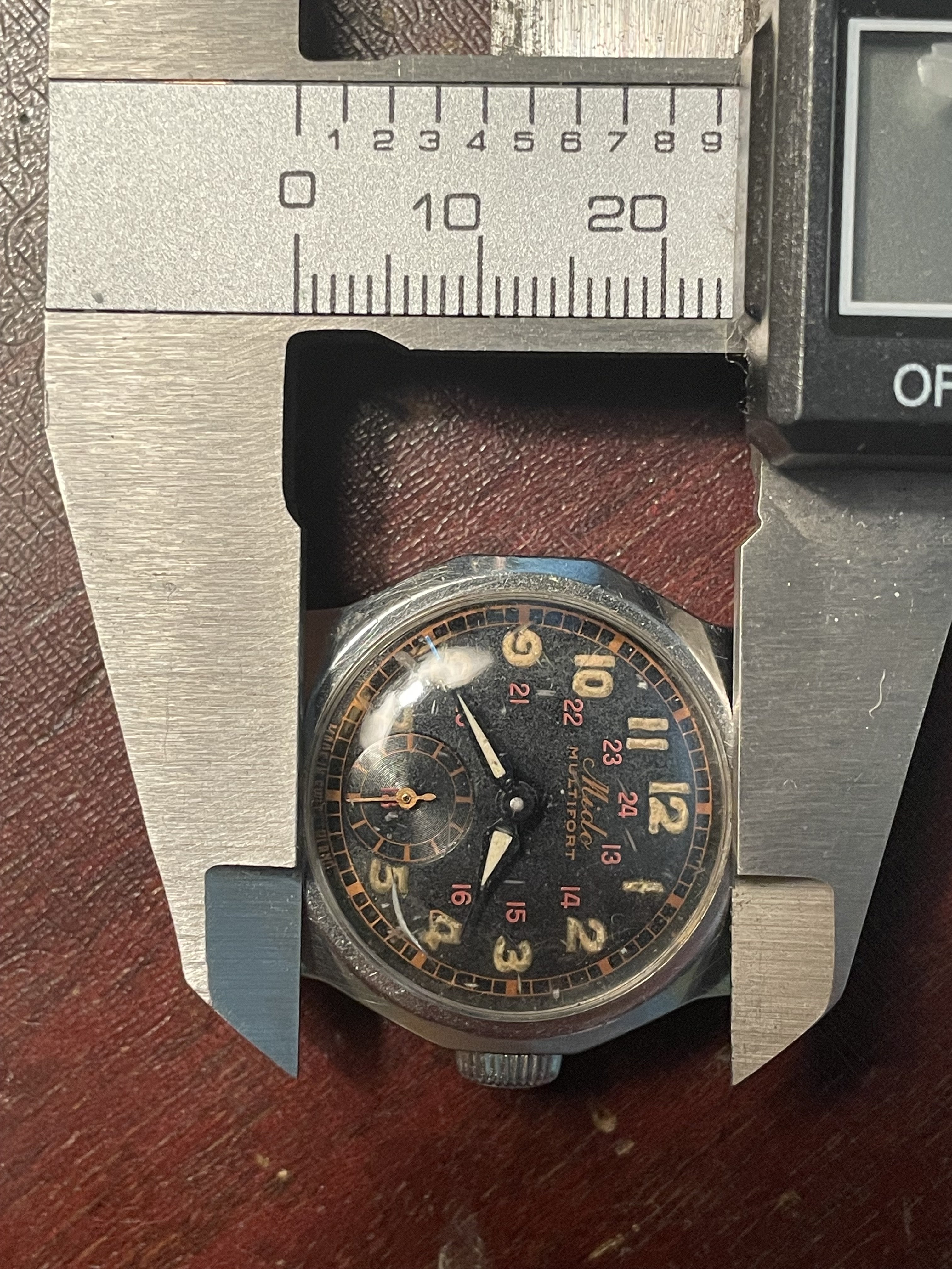 ·Greetings all. This is most likely the civilian version of the Royal Marine (dial not marked “RM” and no red second hand), but appears to be the same watch. It’s one of my wife’s fav’s and she wore it on a period correct Bonklip- but sadly one of the “klips” unklipt when she was closing the door to her car and it hit the pavement face first. Luckily the watch seems to be running fine, but the crystal cracked.