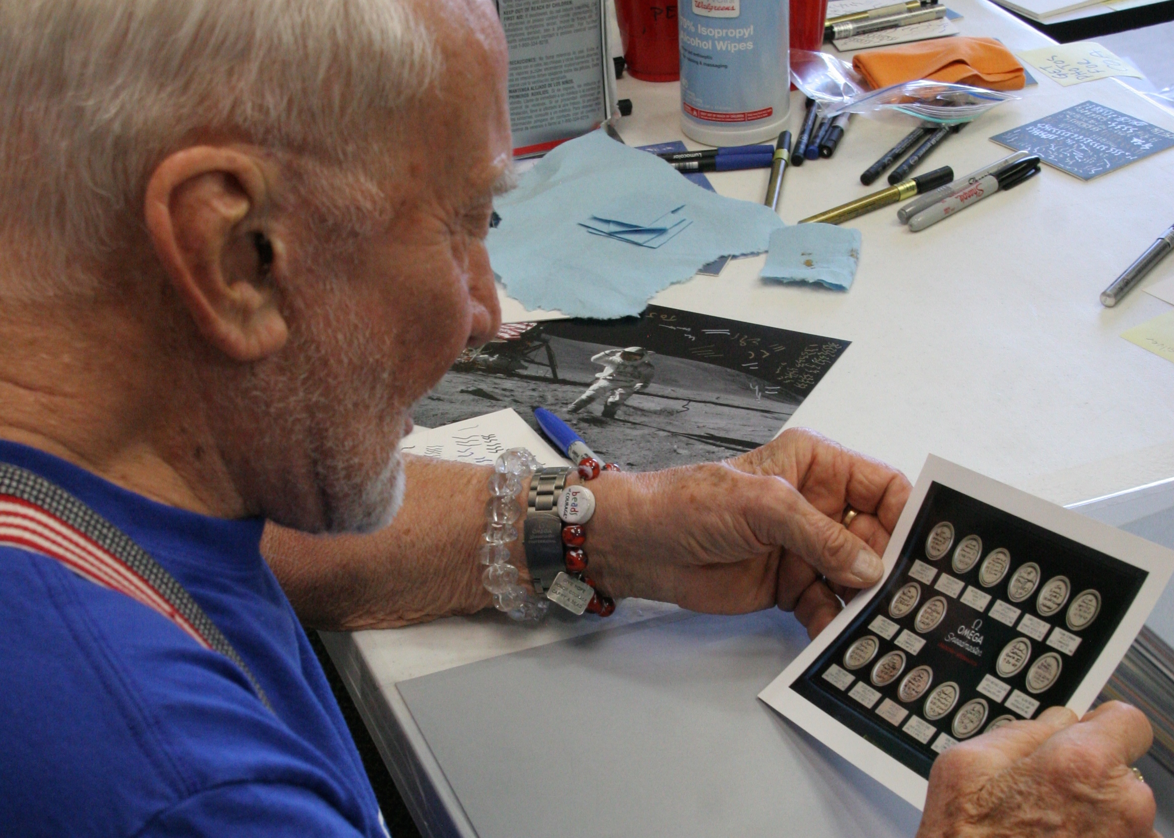 The pieces in the collection document many of the first-time events that occurred during the Gemini and Apollo missions. The mission accomplishments are recorded by the astronauts themselves on 1960's style Speedmaster case backs that are similar to the case backs present on the NASA-issued Speedmasters they used to mark the time of these historic events. The collection today consists of sixteen missions documented by fourteen American astronauts and one Russian cosmonaut recording the events that are forever part of US manned spaceflight history.