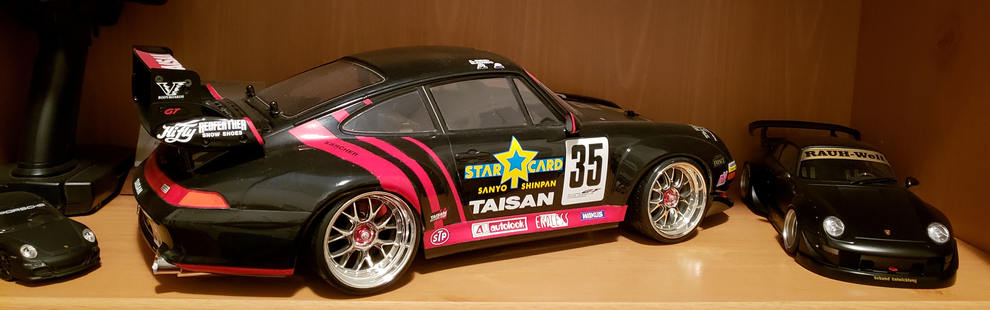 Another kit from several yeas ago is this 1/24th Porsche GT3R by Fujimi. I was going to paint it metallic black to match my own car, however that seemed a little boring. So I used the Racing Livery that was supplied with the kit. Those decals were a real challenge to work with! But I think it turned out pretty good.