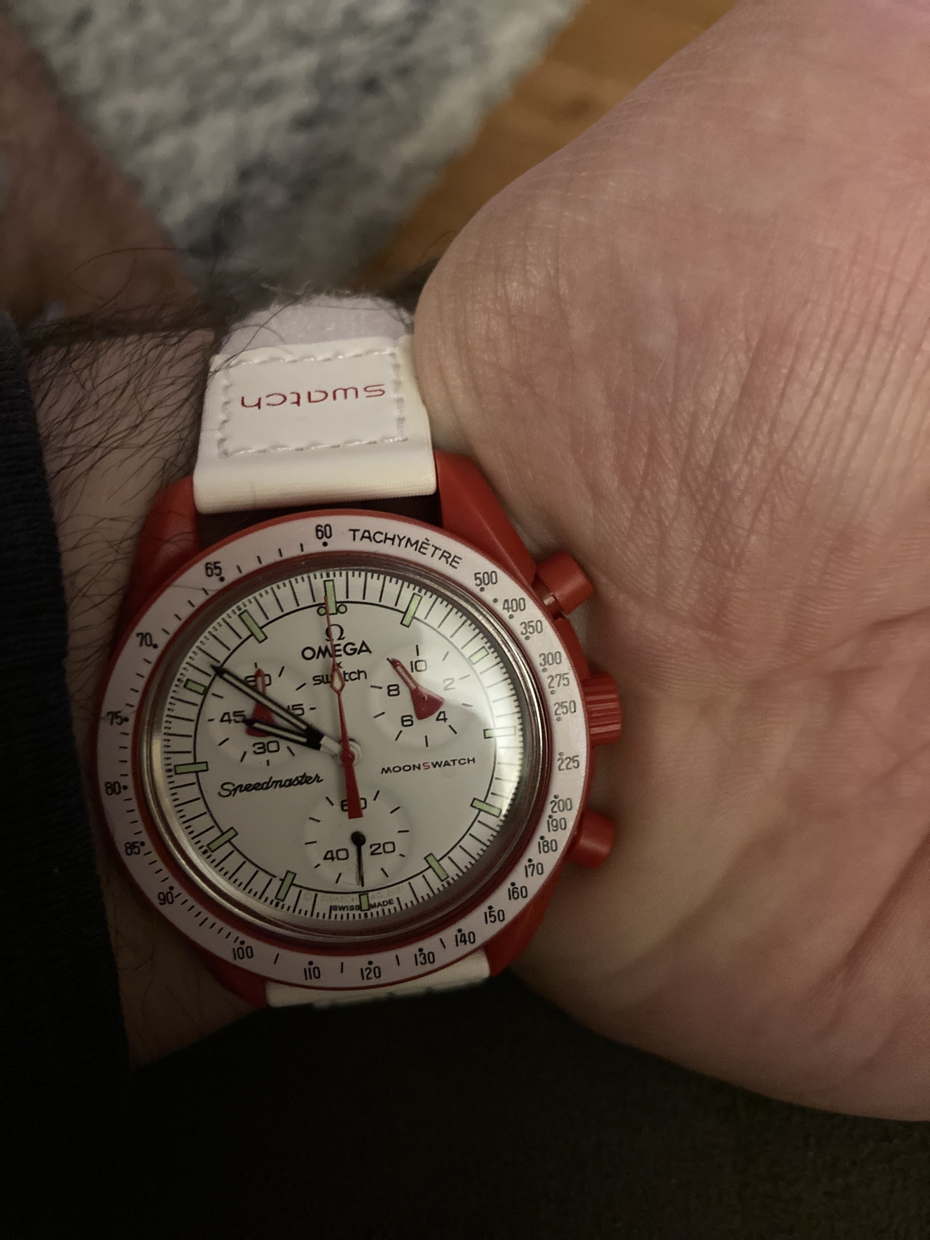 First time poster here with a question: my incredibly talented gift-giver of a wife presented me with a Swatch MoonSwatch: Mission to Mars as an early Valentine’s Day present.