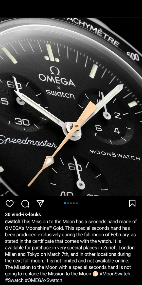 ·One could be persuaded that the "smart" way to sell the Moonswatch would be online with a "notify" when the one you want is available, they would be able to gauge demand for which version is selling the best, but you'd be missing the point. The real reason is to get you into a Boutique to see and hopefully buy a " real" Omega.
