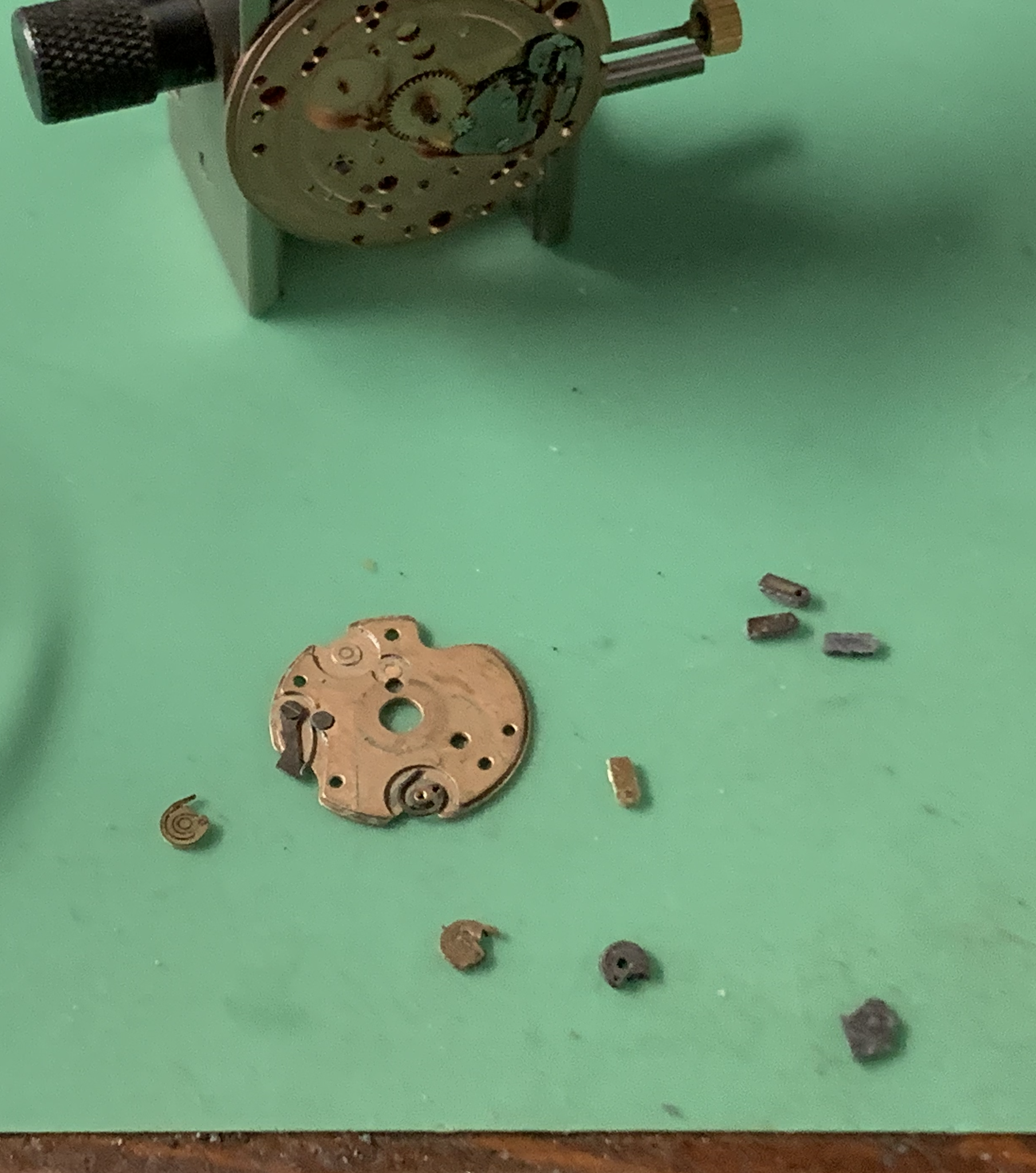 I had assembled the parts back into the watch, so did not have them with me to check for thickness. Some guidelings suggest milling them off from the back. I was limited in time to try that step. The extra lines are used to make the parts break away from the stock. It is hard to remove the inside sprial on the corrector.