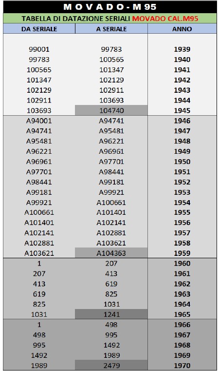CONCLUSION: unlike other maisons, Movado has therefore theorized and produced batches of serial numbers different for each caliber conceived, created and disseminated. Each model therefore has its own serial uniqueness. It’s possible accurately date models that case the cal. 150 MN like those who collect the cal. 125 and so on...