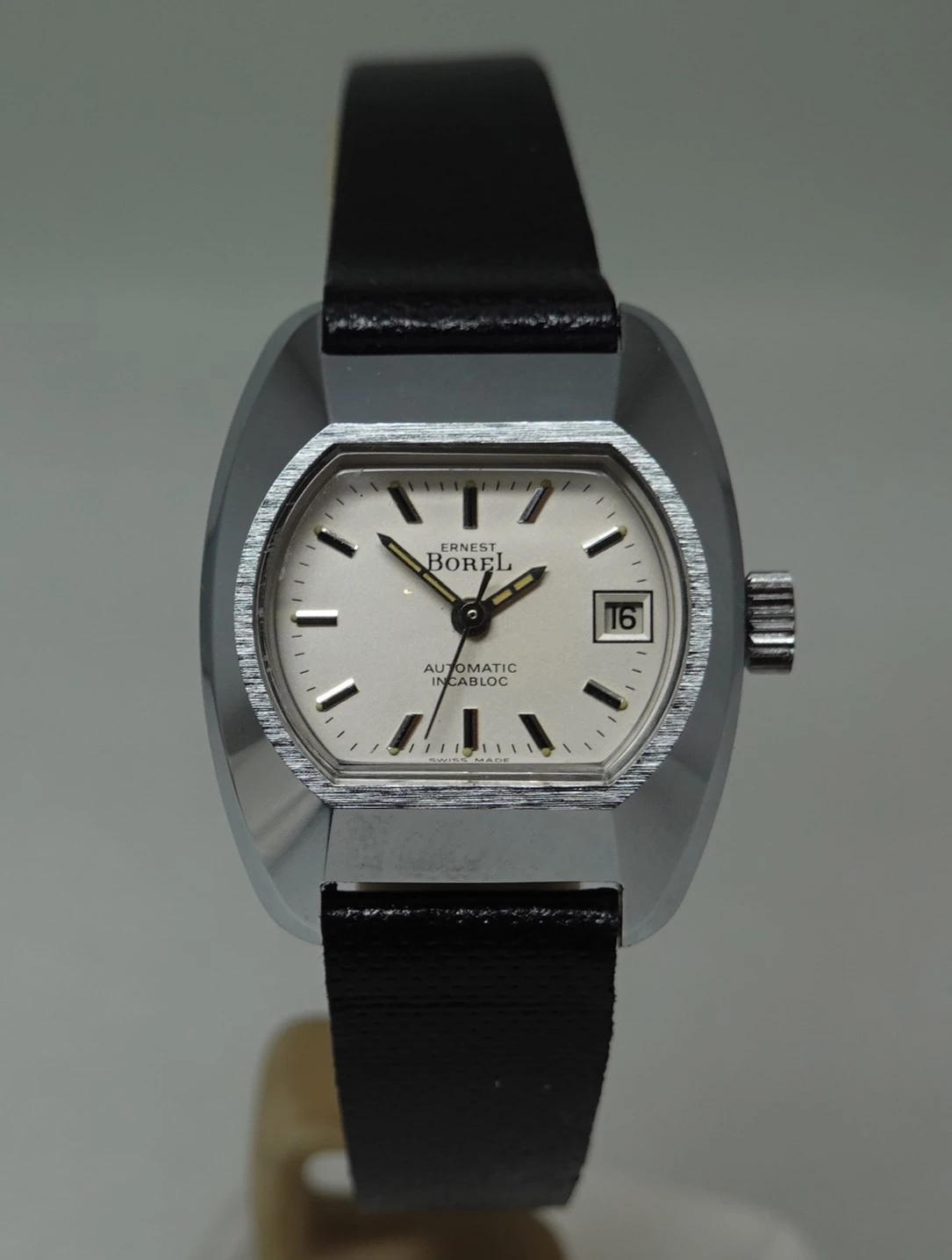 current Ernest Borel watch brand appears to be a Swiss front for a Chinese firm, so I assume the authentic company didn't survive the quartz crisis. Borel is probably most known for their cocktail watches, but occasionally a more traditional watch shows up on eBay or Chrono24. Alas, though, those tend to be in pretty rough shape. The watch in this thread is the first I was able to find in nice condition (essentially NOS).