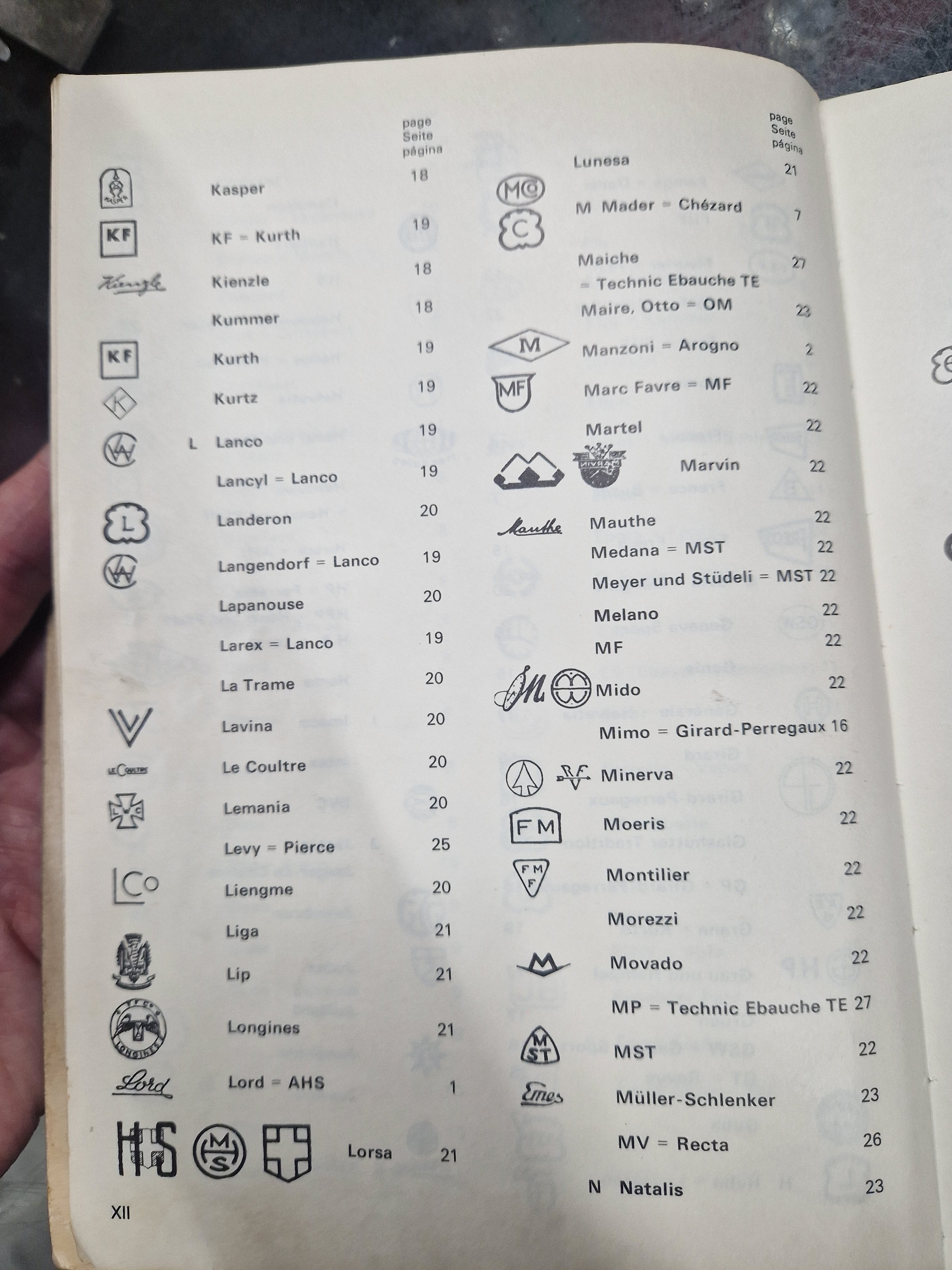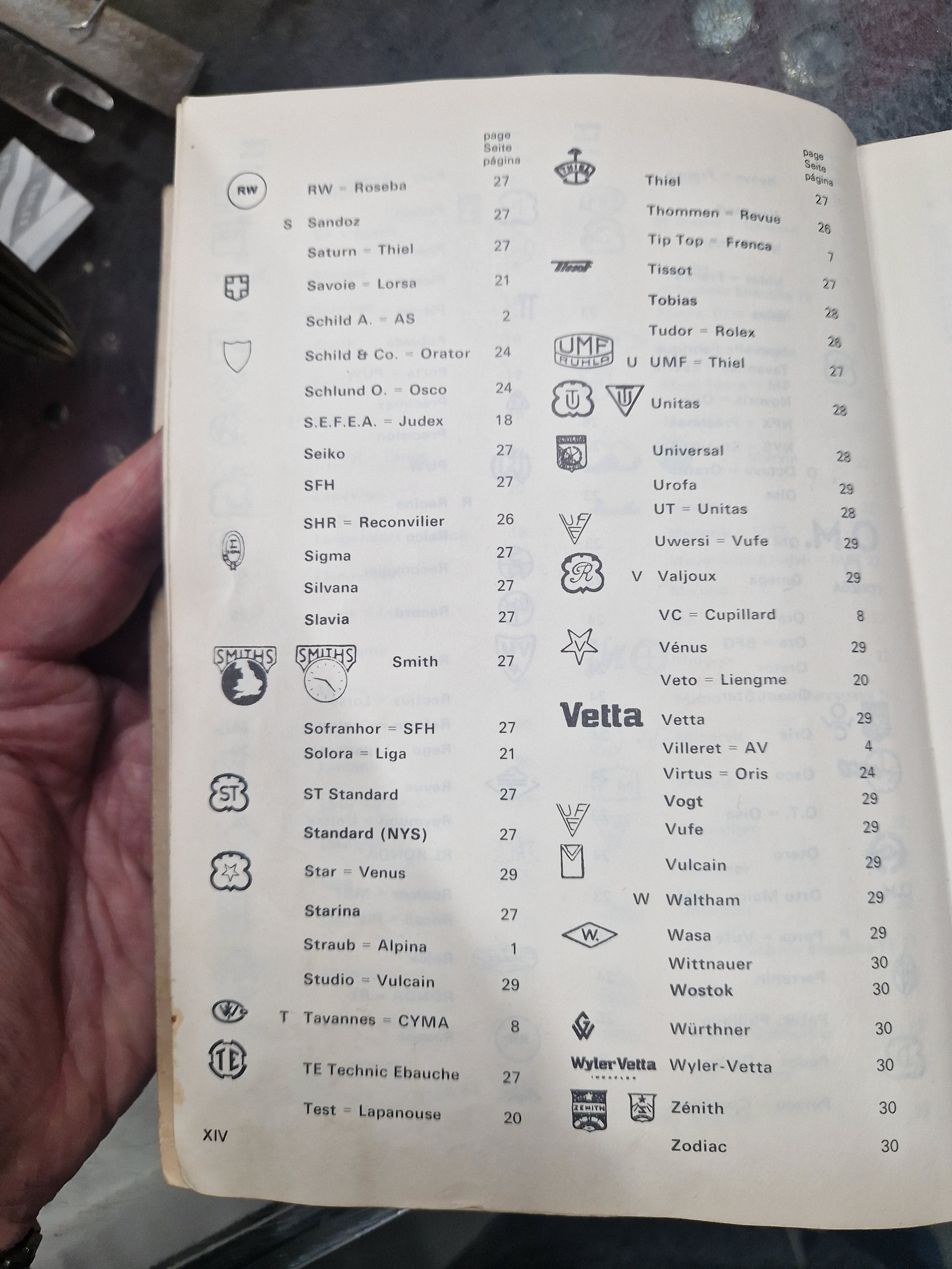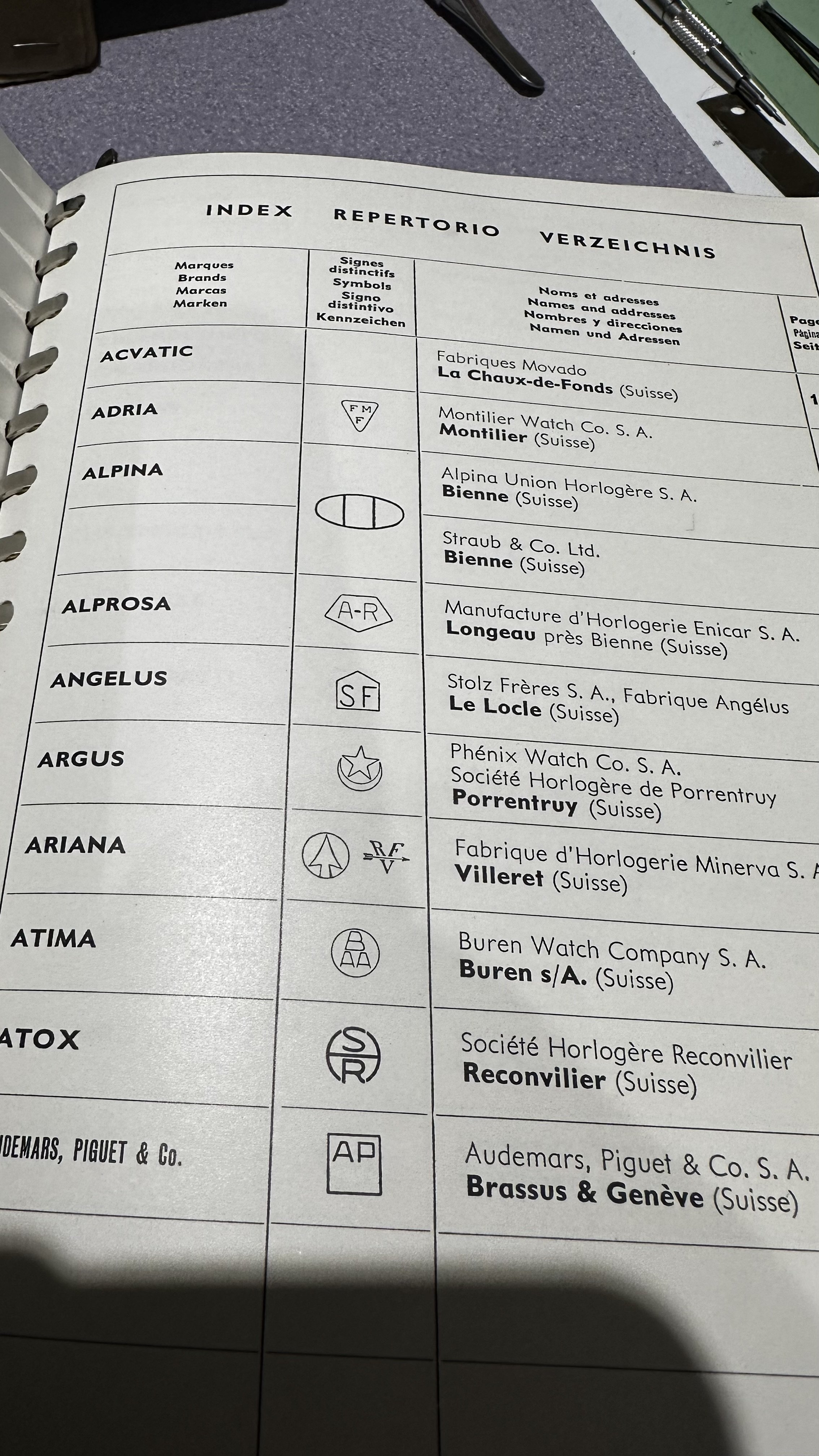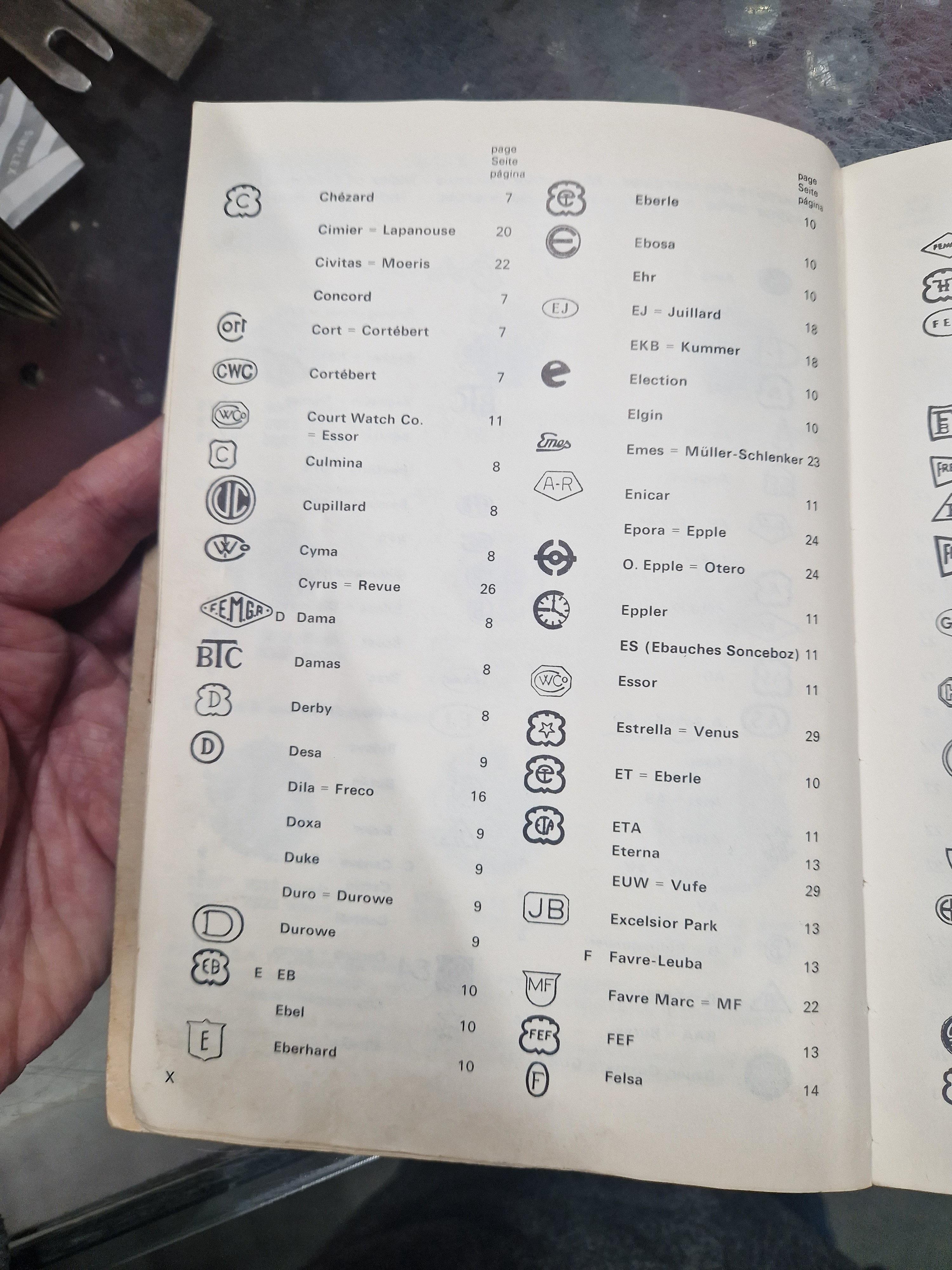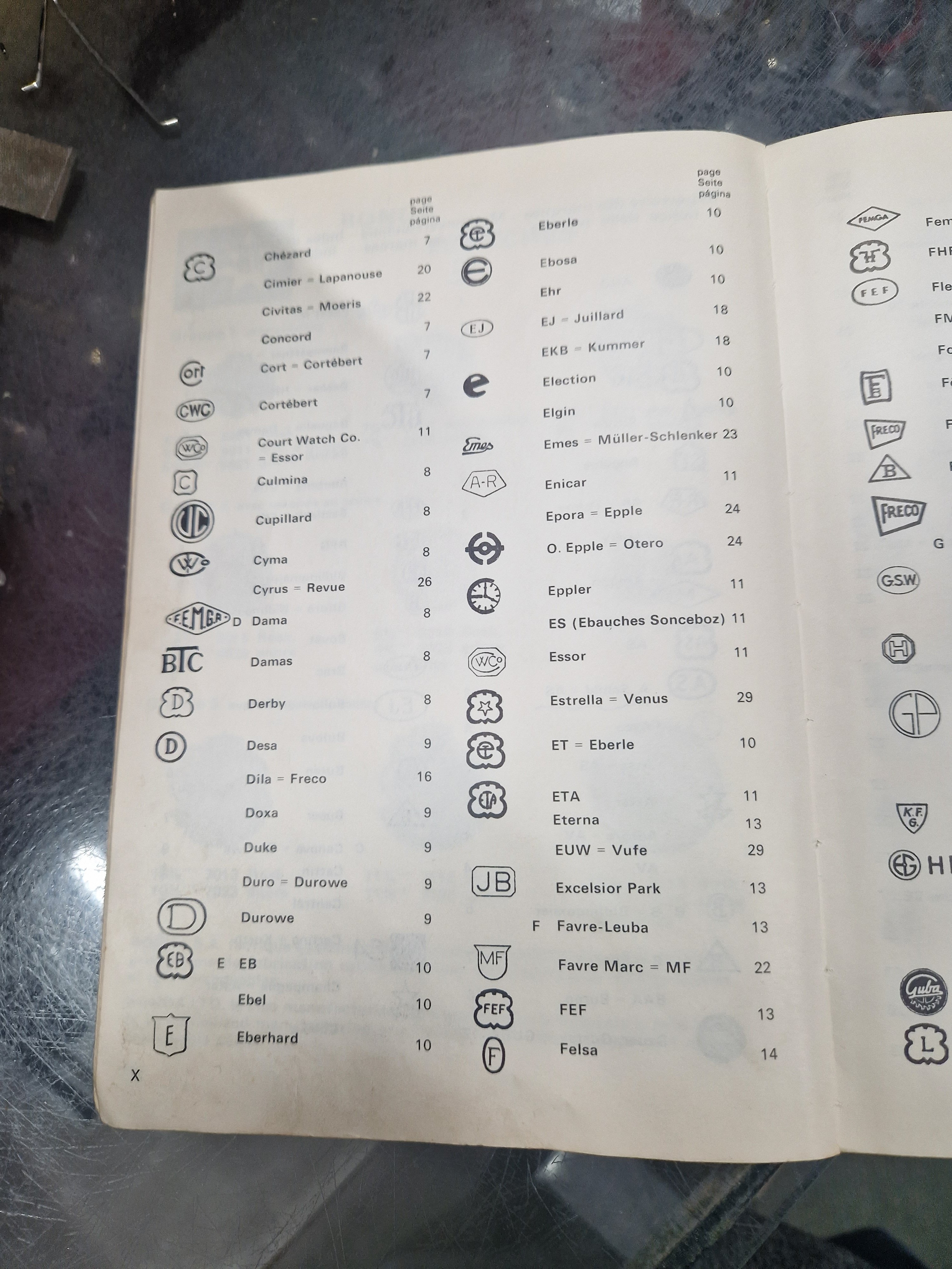 Posts 744 Likes 1,766 Danwales ·Nov 10, 2023 At my watchmakers recently and he had an old book of manufactures on his counter. I snapped a few pages. Maybe an useful reference for people.