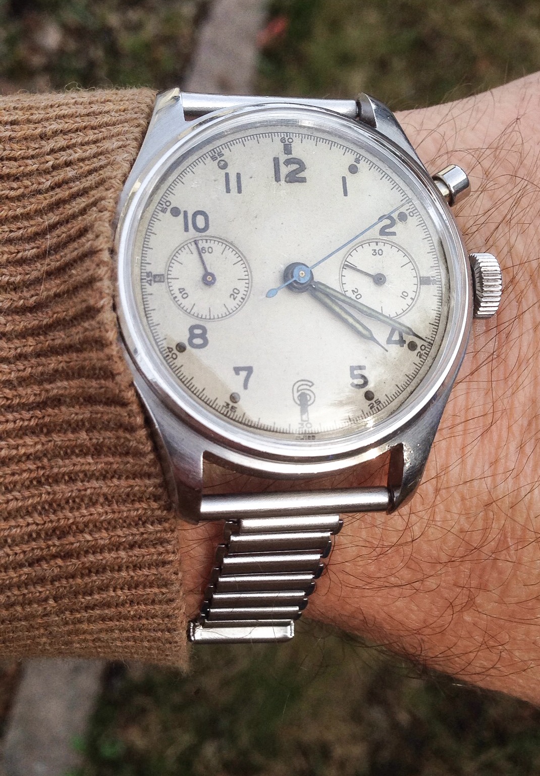 Some weeks ago a auction lot in UK caught my attention as it looked to have a nice military chronograph as part of it. Not really mentioned too baldly, and with a very low estimate figure.