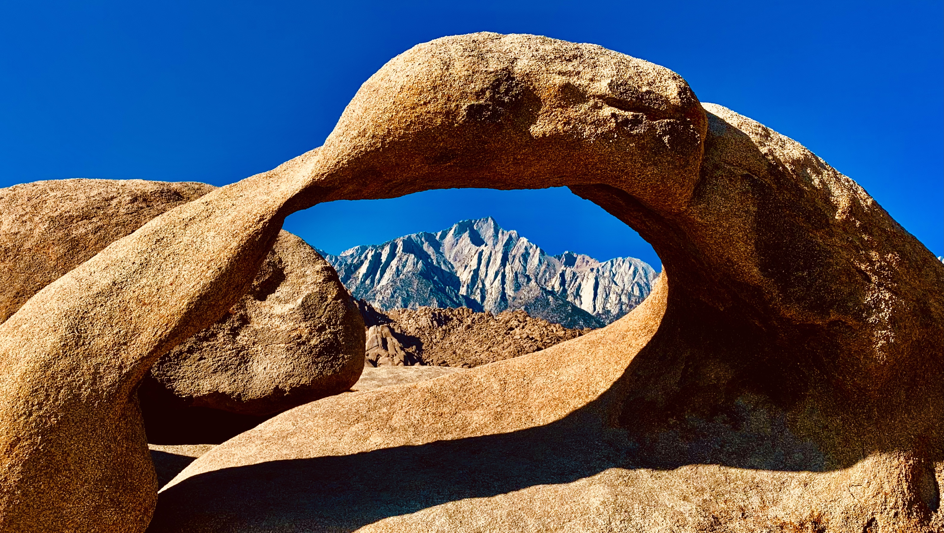 I took a little ride to the Sierra Nevada Mountains in California. Ended up in the Alabama Hills at the base of Mt. Whitney. A great rock formation called the Mobius Arch framed the peak just right. 14000 feet of pure granite.