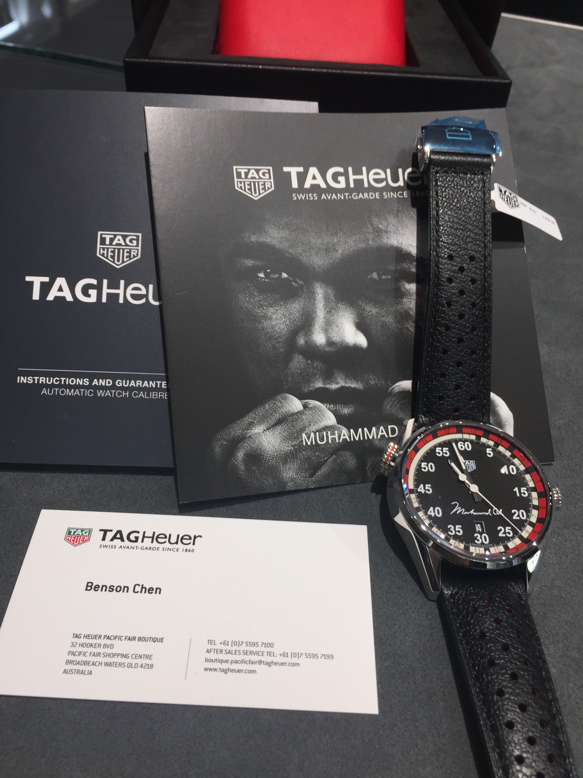 Comes with special box, gold coin with Ali autograph, photo and back of coin, 2years warranty from Tag service, purchase receipt from Tag Heuer and I'm offering extra gift with purchase.