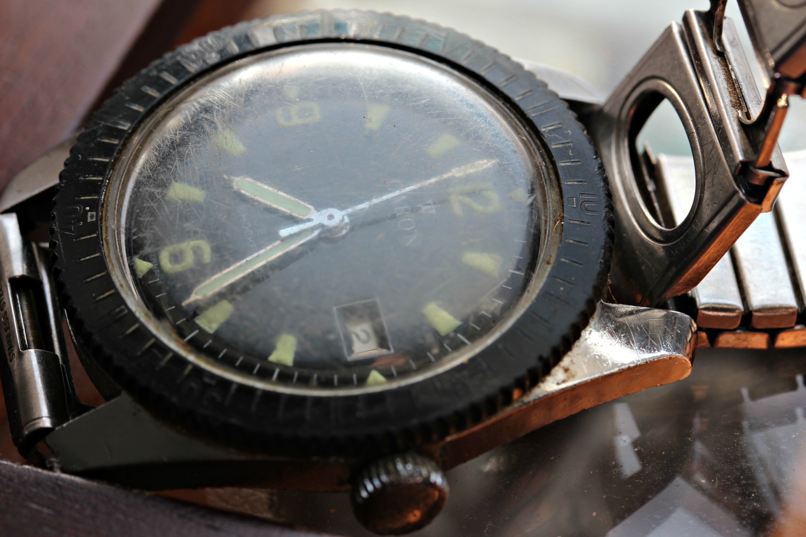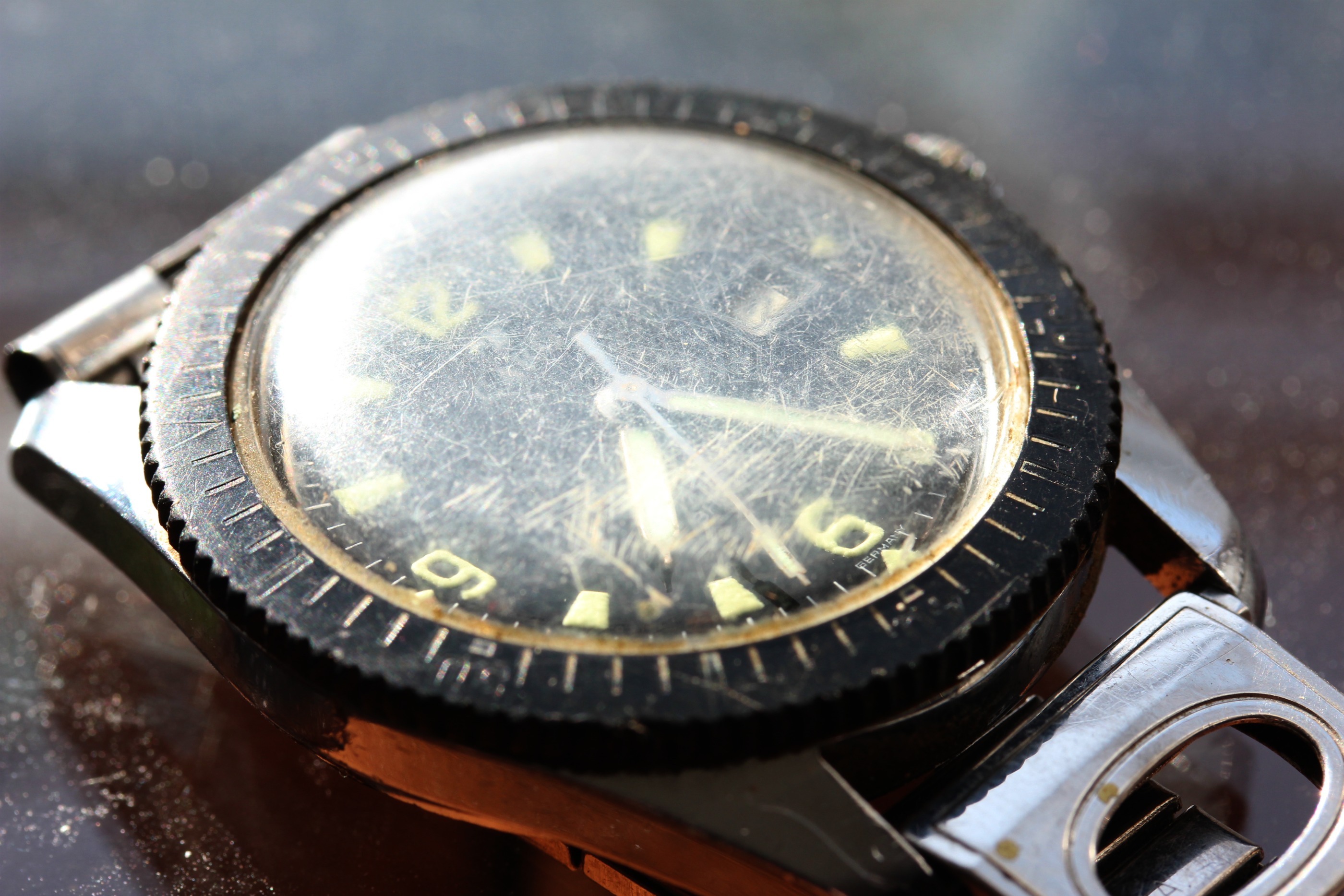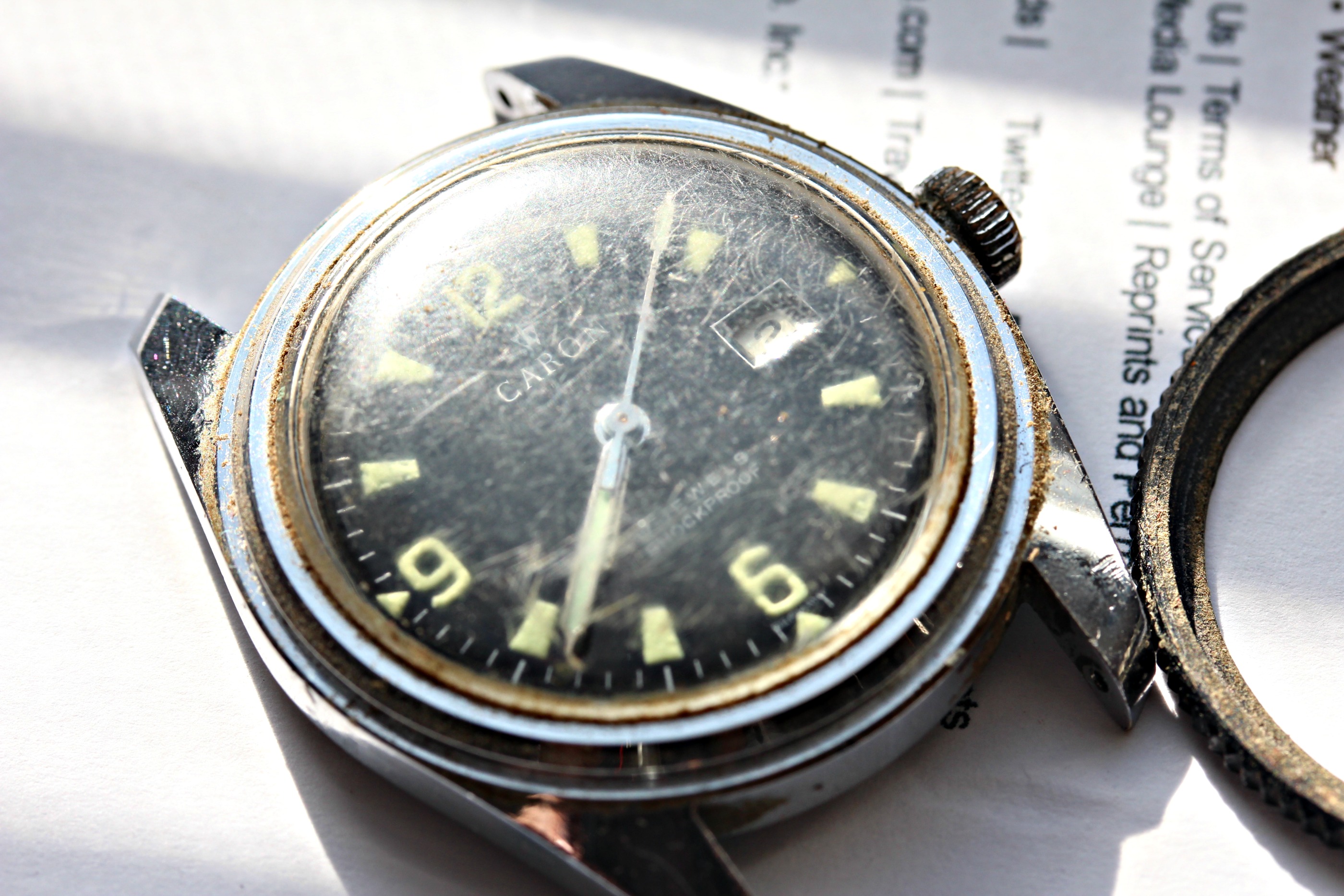 Now if you were our friend and seeing how grimy that watch is the first thing you do is disassemble it. Then soak it in gasoline, because that's what all master mechanics do...