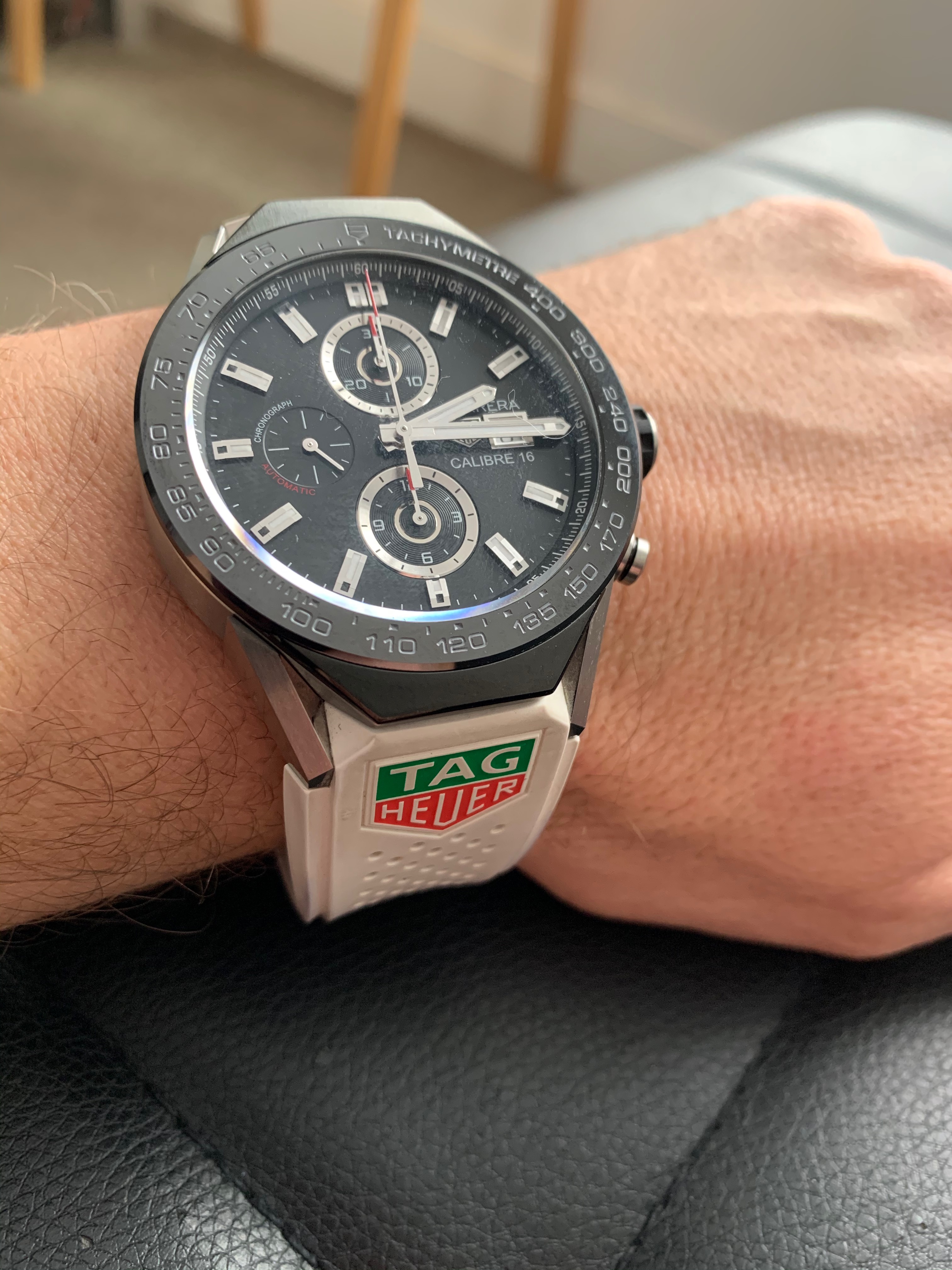 路So i've been wanting my Connected 45 to look like this since the day i bought it. For the longest time couldn't find the Calibre 16 Chronograph watch head 9for a decent price) anywhere in Canada or even north America. Well the other day I did and ordered it immediately. 2 days later it arrived and I couldn't be happier. Looks amazing!! I haven't seen too many pics posted with the white band or even with the module in general so I figured i'll put some up.