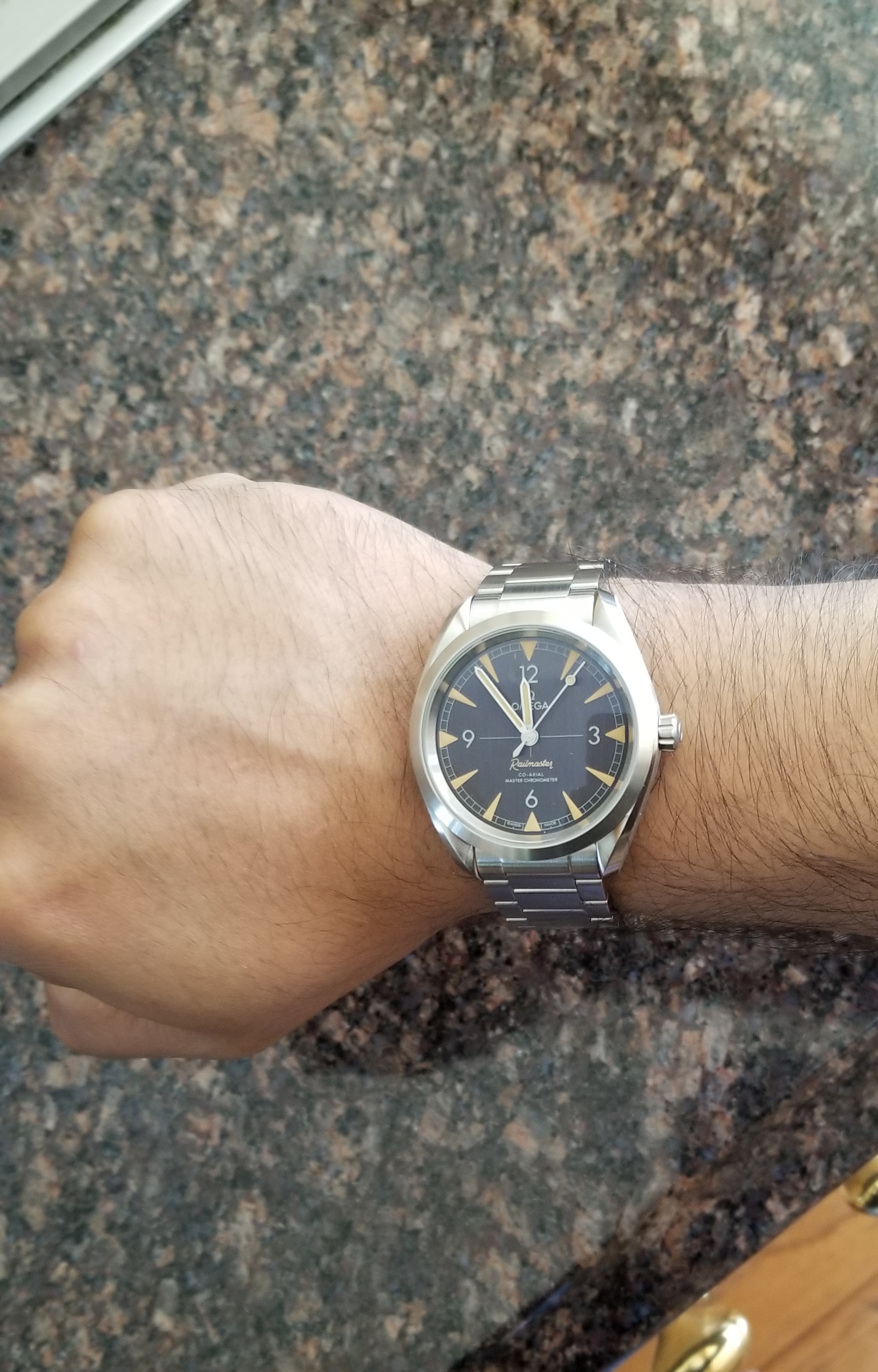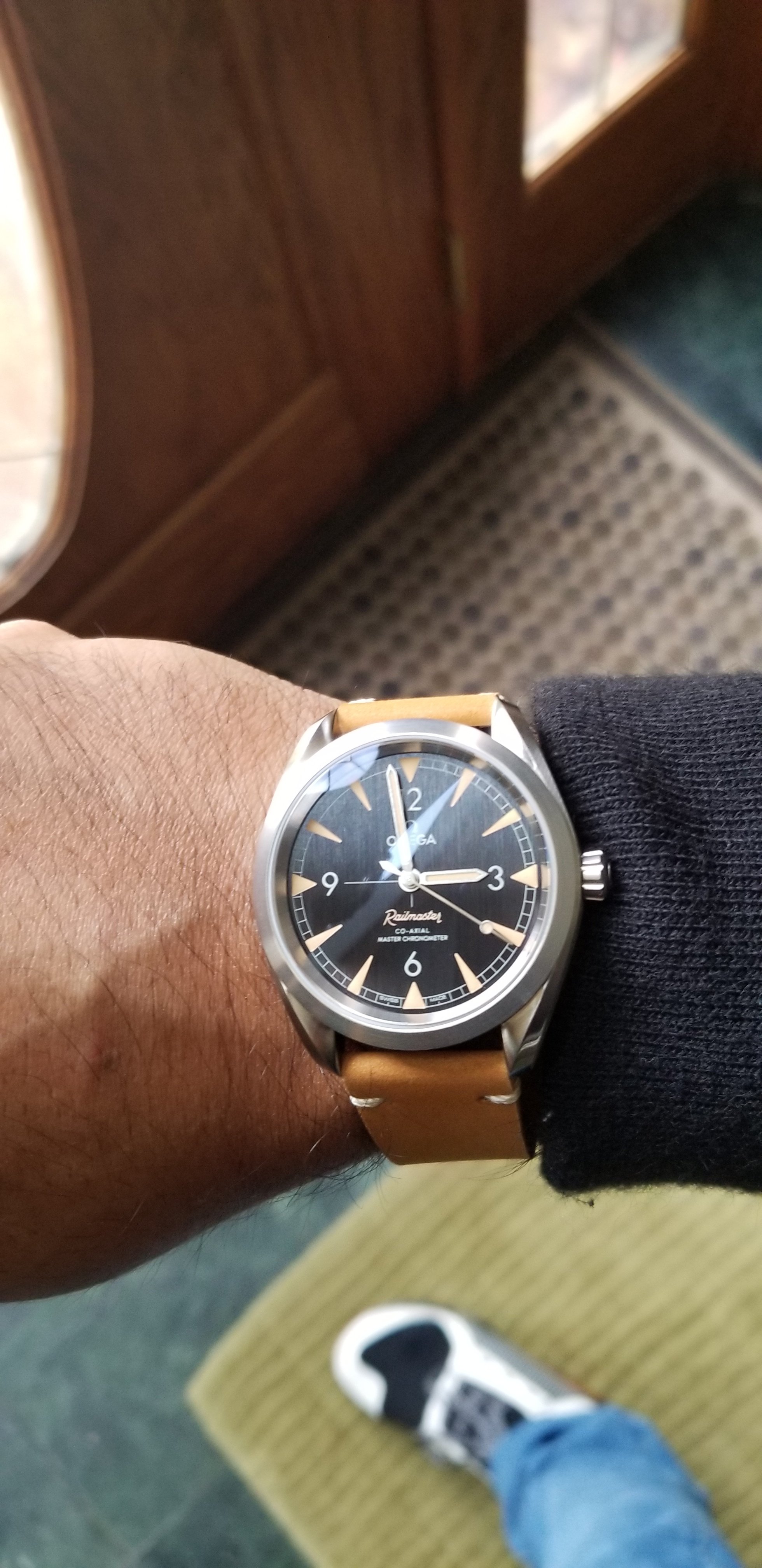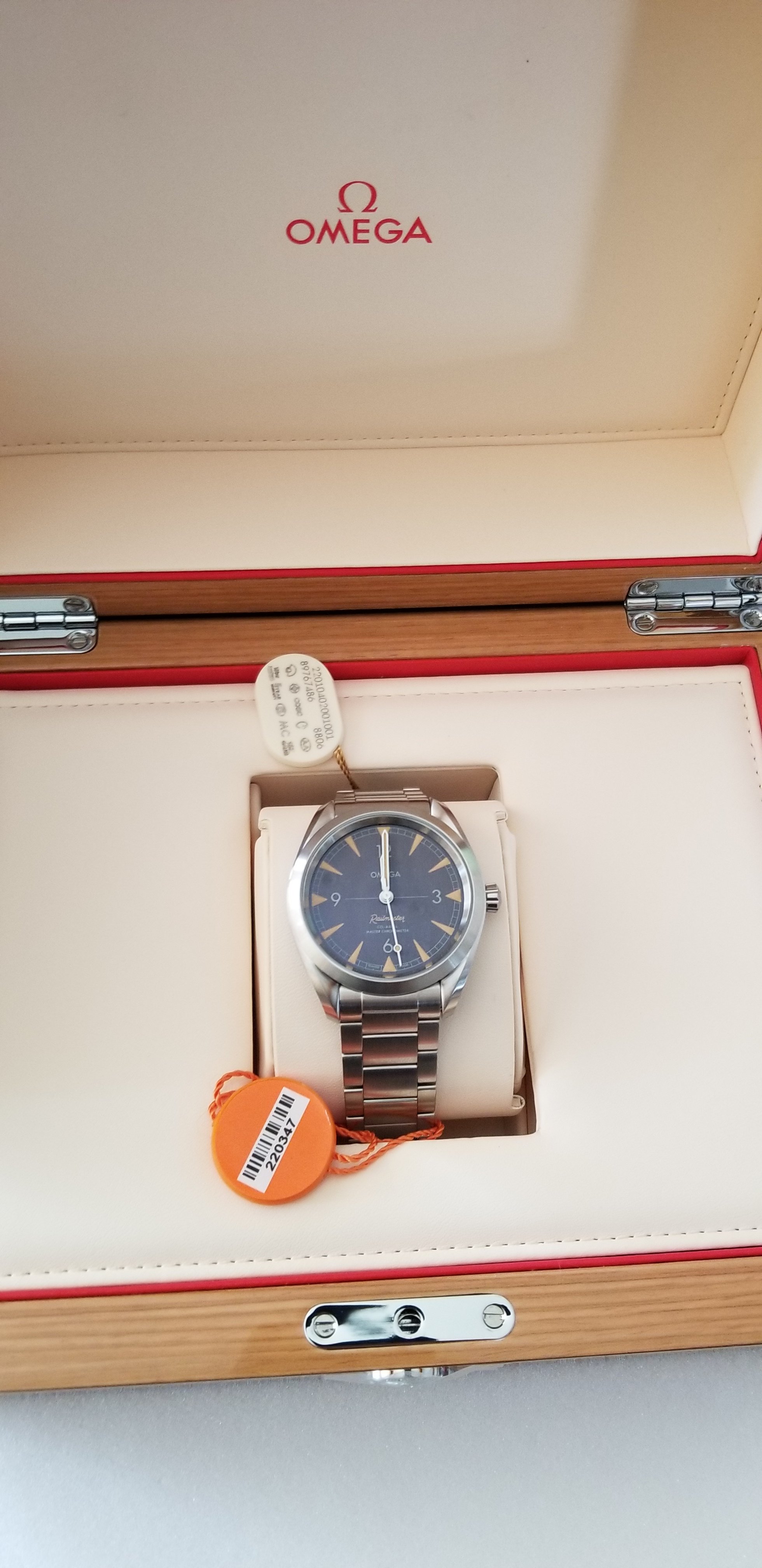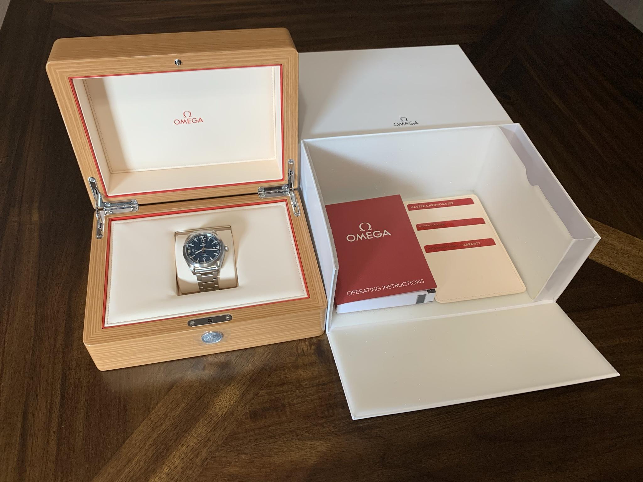 ·I got in my first Omega watch this past week, the blue dial Railmaster. Certainly, it's one of the more divisive models in the current Omega lineup, but personally, I love it. When I first saw the Railmaster with the blue dial, it drew me in a little more than the black and silver offerings. I think the choice to go with white Super LumiNova was the way to go. The "vintage" lume color suits the 1957 trilogy more in my opinion, but I admit it adds a little extra contrast on the neutral colored dials. Sadly I wasn't able to see and try on the piece in person before purchasing one. None of the Omega ADs within a 6+ hour one way driving distance actively stock the watch, so it would have to be ordered directly through Omega, with an unknown wait time, then I could come in whenever it arrived. I decided going used was the better bet, and I was able to find one for the price I wanted to pay, complete with boxes and papers. Not being able to see it firsthand, I wasn't 100% sure that I would be smitten with it, but getting it in and spending some time with it, my doubts are gone.