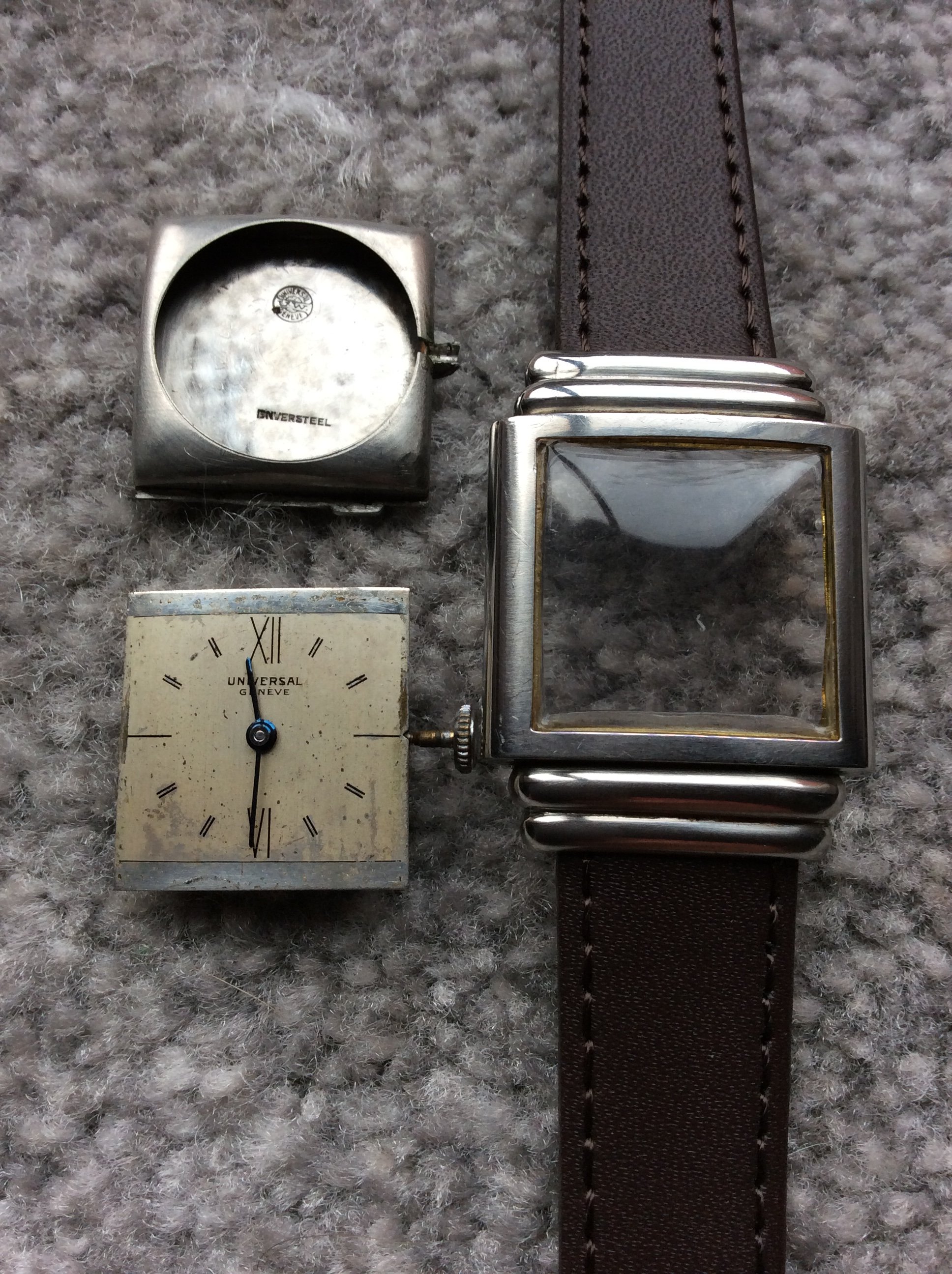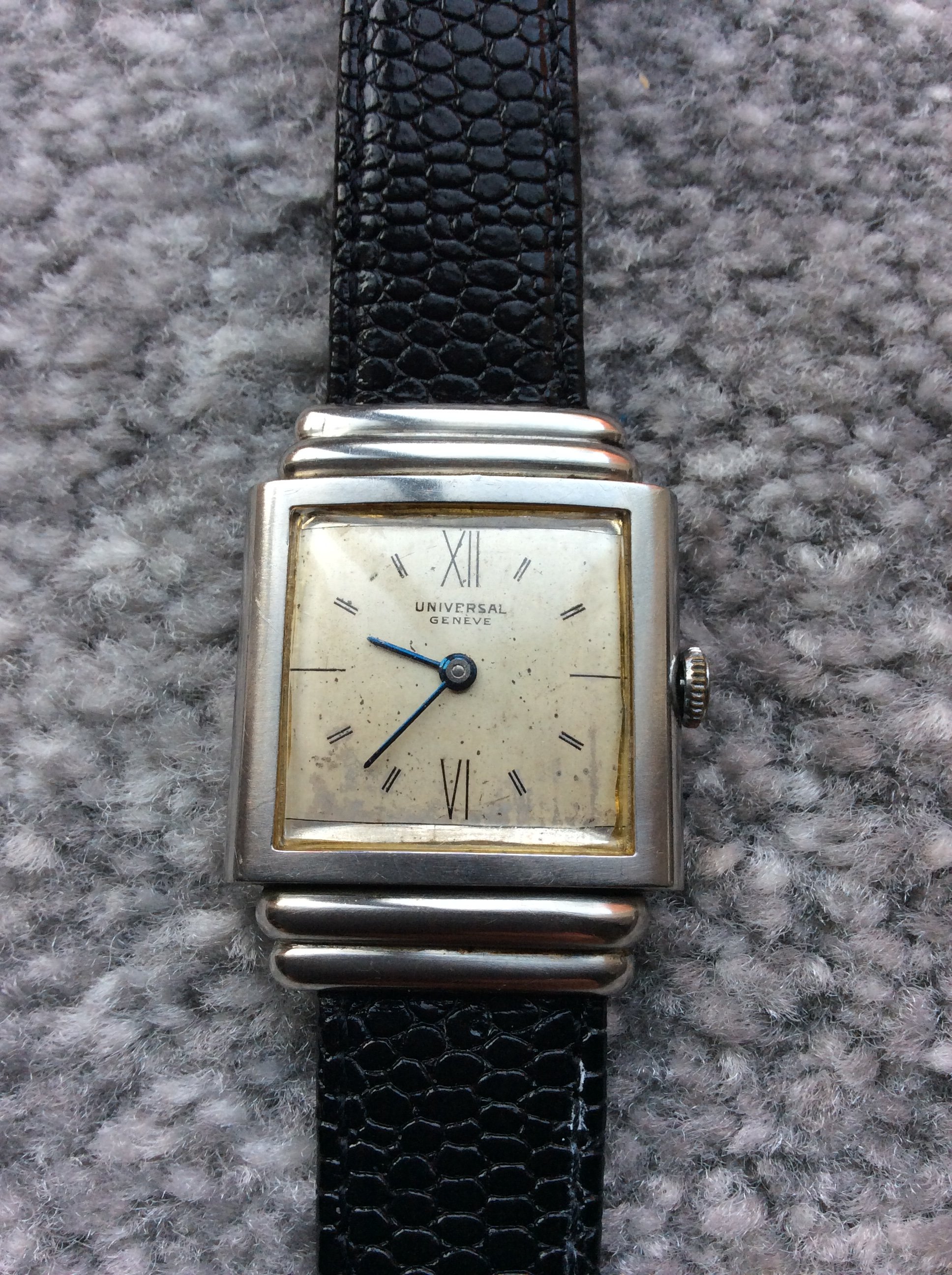 ·hi everyone. I currently wear a heuer carrera 1553 and have owned several vintage omegas, vintage Rolexes and a few heuers. I was on eBay the other night and saw this. It was advertised as a 1945 universal Geneve. It was only a few hundred so I bought it. Then I bought Pietro Giuliano Salas book and looked at markings inside the very well made case and it dates it to pre 1937. It is small 25mm x 35mm but a very well made watch and movement going strong. I wound up yesterday and still going and keeping perfect time. Wondered what people thought as I know very little about universal Geneve.