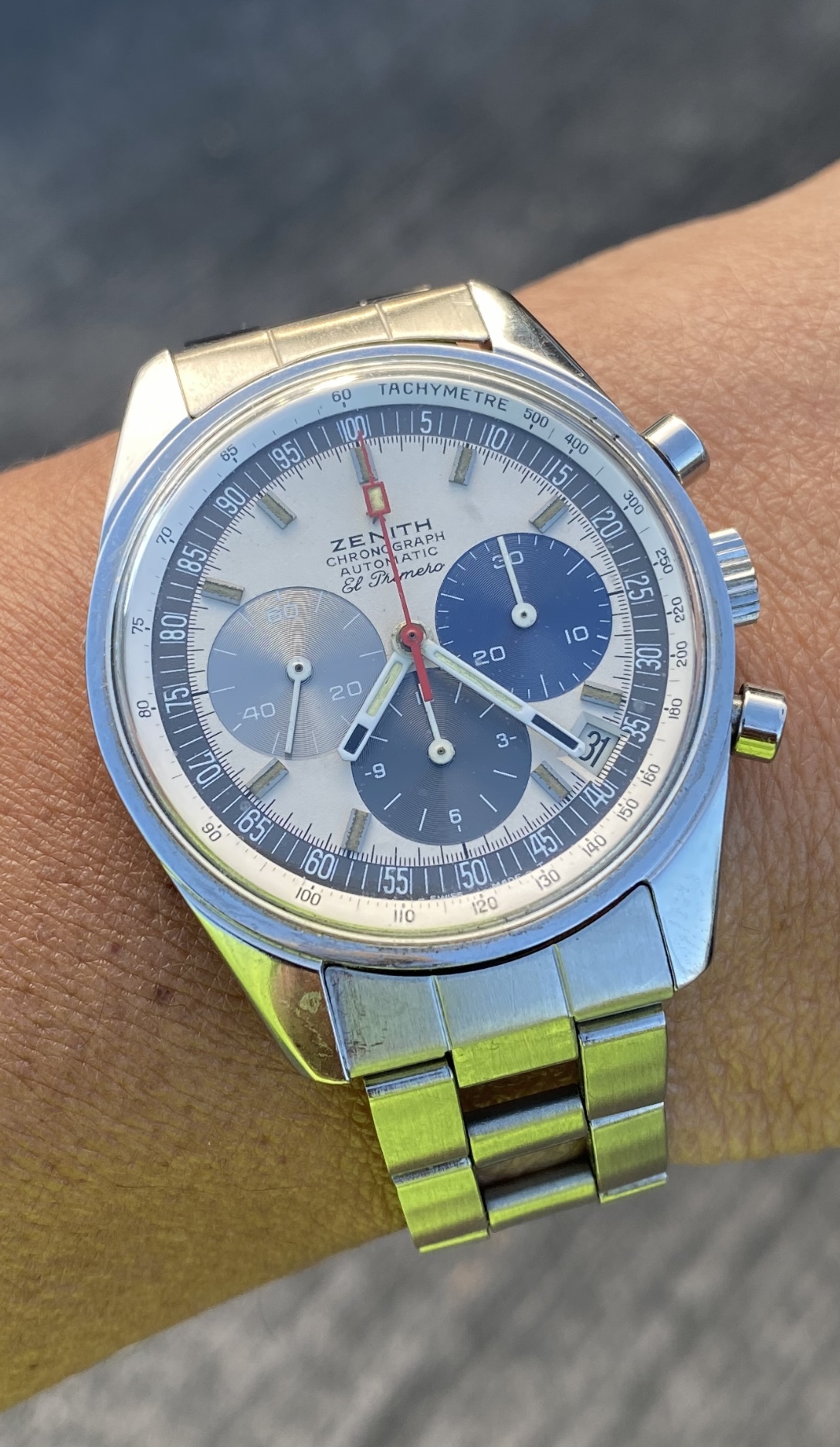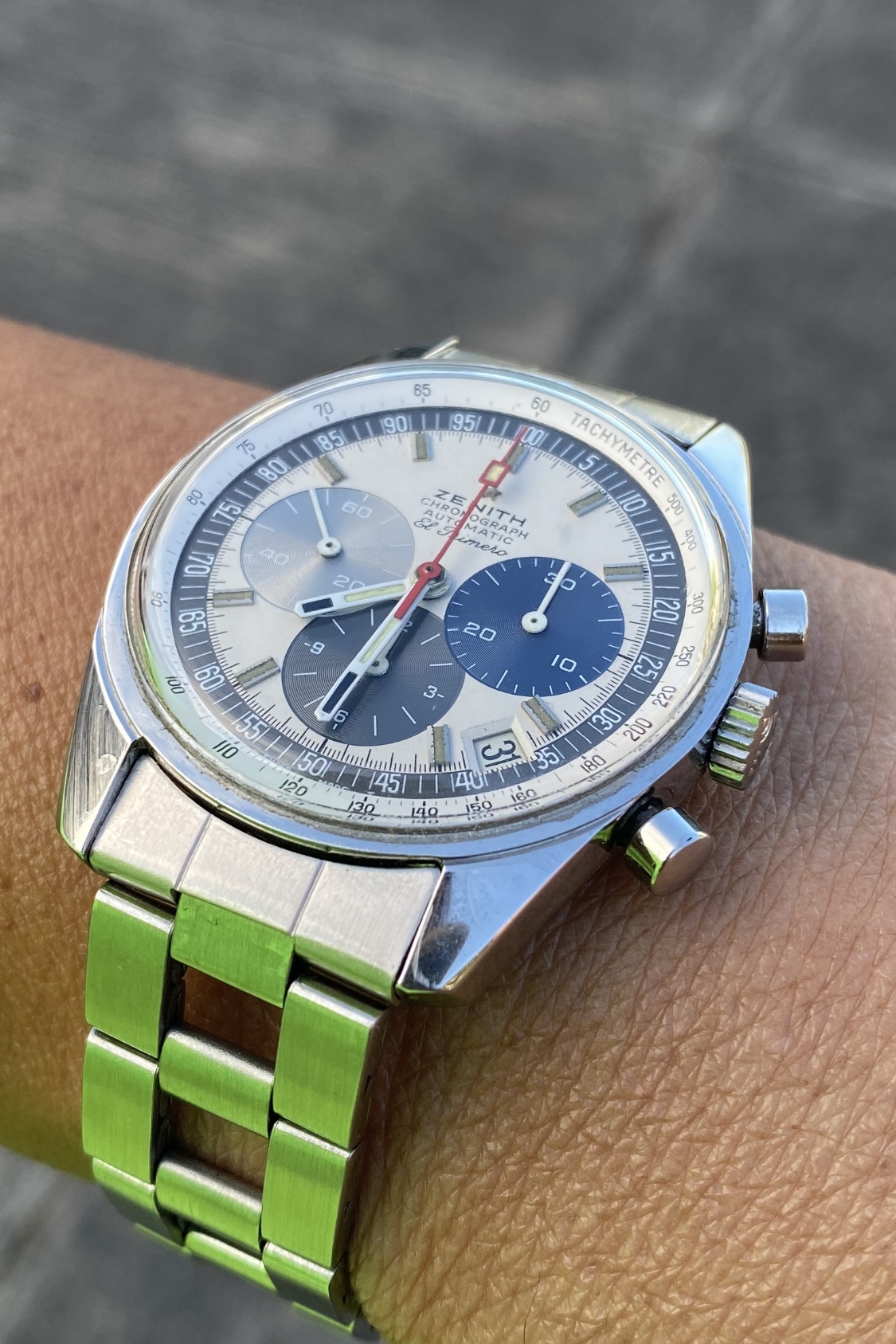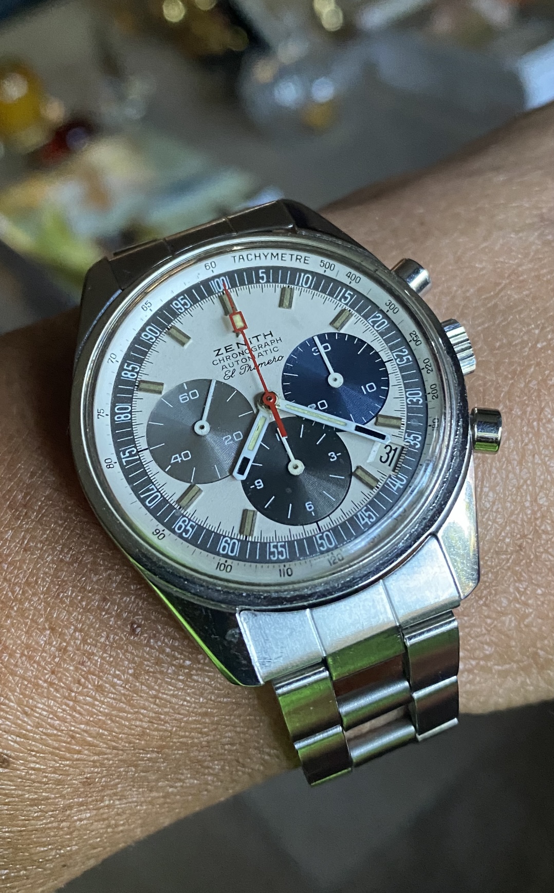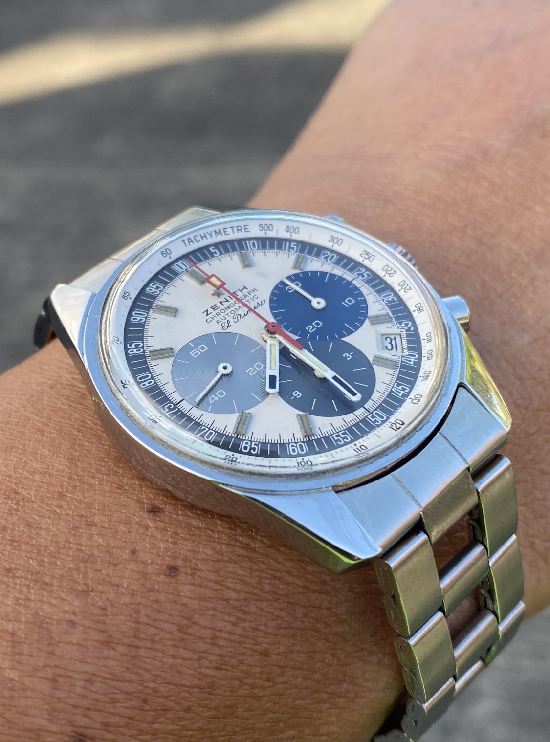 ·I caught another of my grail watch in a matter of 2 weeks after the tropical DRSD, the Zenith A386. This watch was offered to me a year ago but we could not come to terms. The owner gave me a call this week and said that he is accepting my offer. I am now the proud owner of this beautiful Zenith. It has a mk1 dial and the case is a Mk3. The case serial in 923D327. The ladder bracelet was hardly used and still has the original sticker in the clasp. Another great addition to my collection.