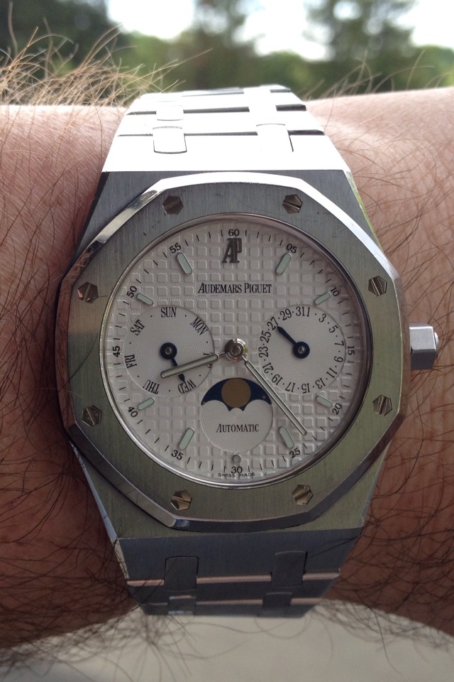 I took the pic on a full moon a while back to show off it's distinguishing feature. An advertisement for the AP Quantieme Perpetuelle (back in the early 1980's) was the first time in my life I became aware of the existence of ultra fine timepieces. The spark that ignited the passion!