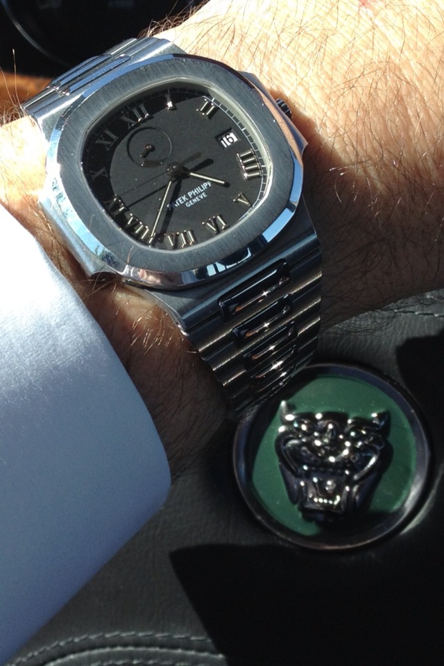 On the hunt for a simpler Nautilus 5711, a dealer I have known for years had this one in the store. I fell in love. The Jumbo Nautilus 3710. Known as "the Comet" for its unique execution of a power reserve indicator, mfg from 1998-2007. Box and papers, too. It was last serviced by Patek (Henri Stern NYC) nearly 10 years ago. A few nicks and scratches later, it has been sent in for well deserved service. BTW, after they logged the job number and have had it 5 weeks, still no response re: an estimate! Should I be scared?