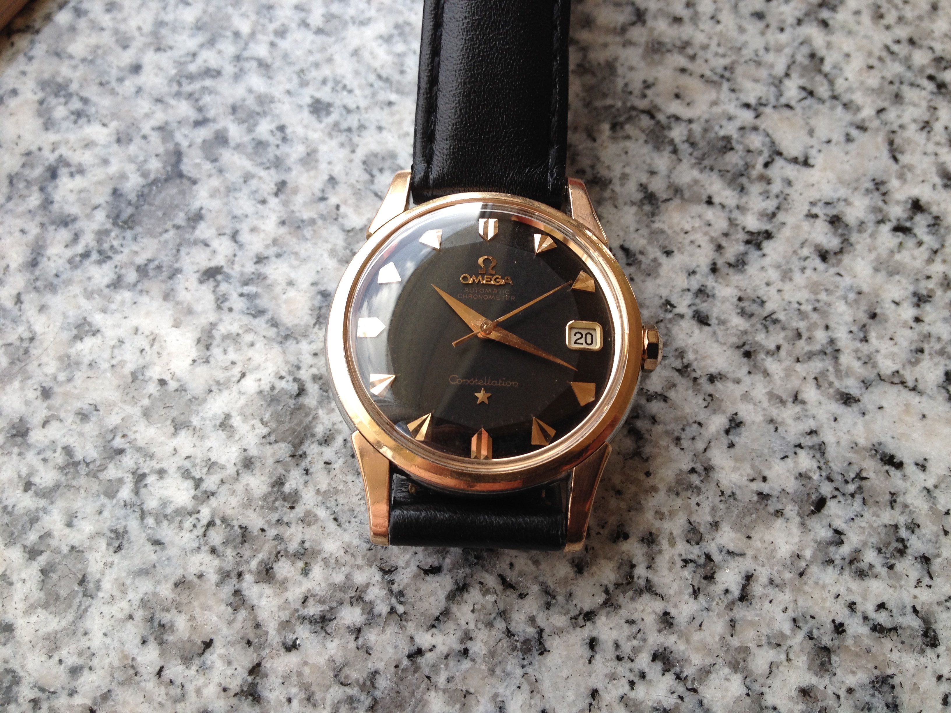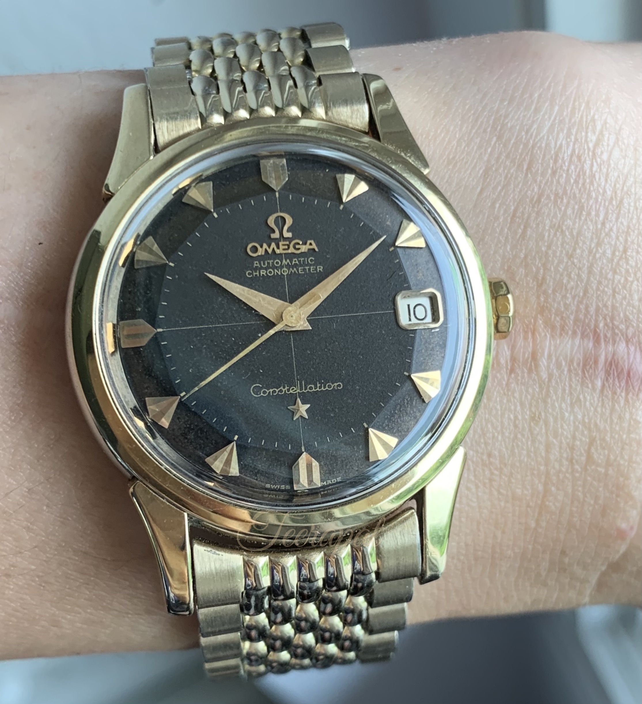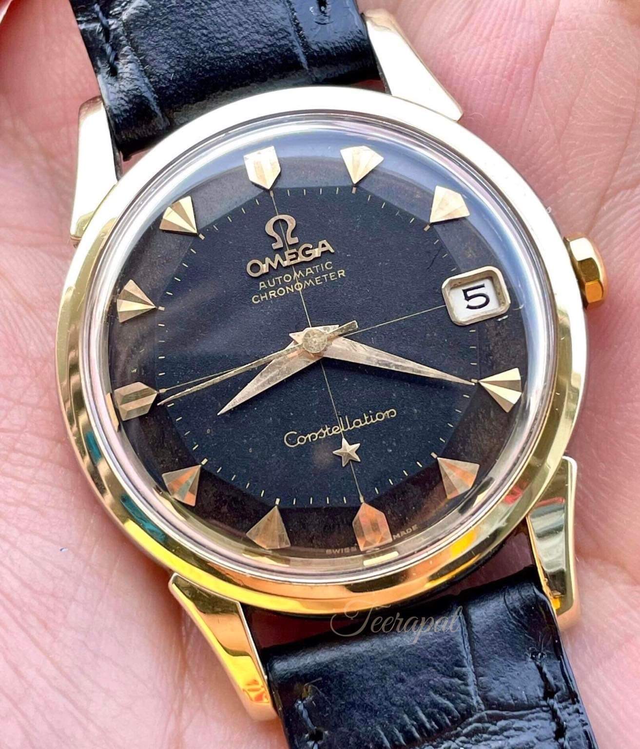 It was a gold cap omega constellation ref.14393.