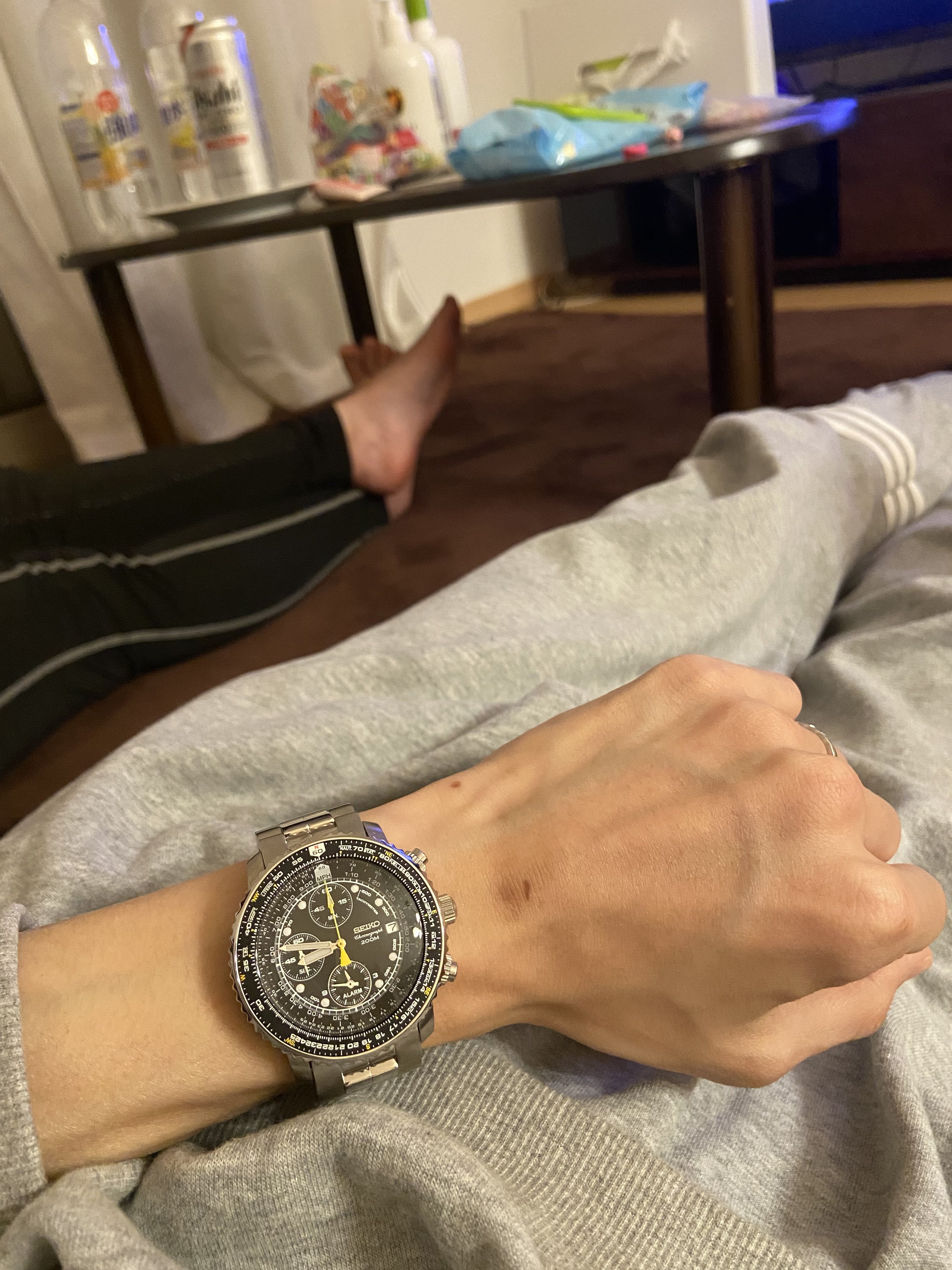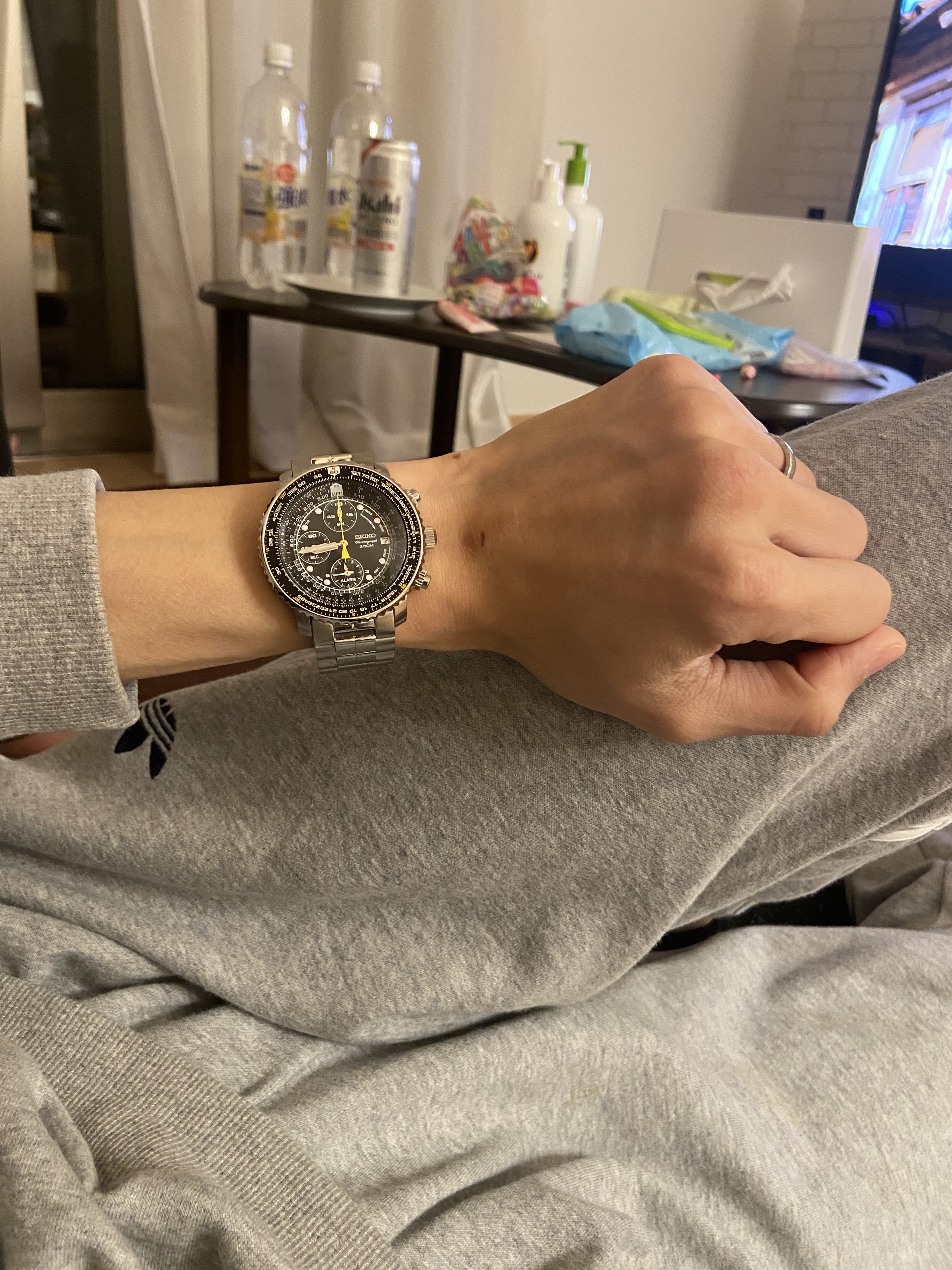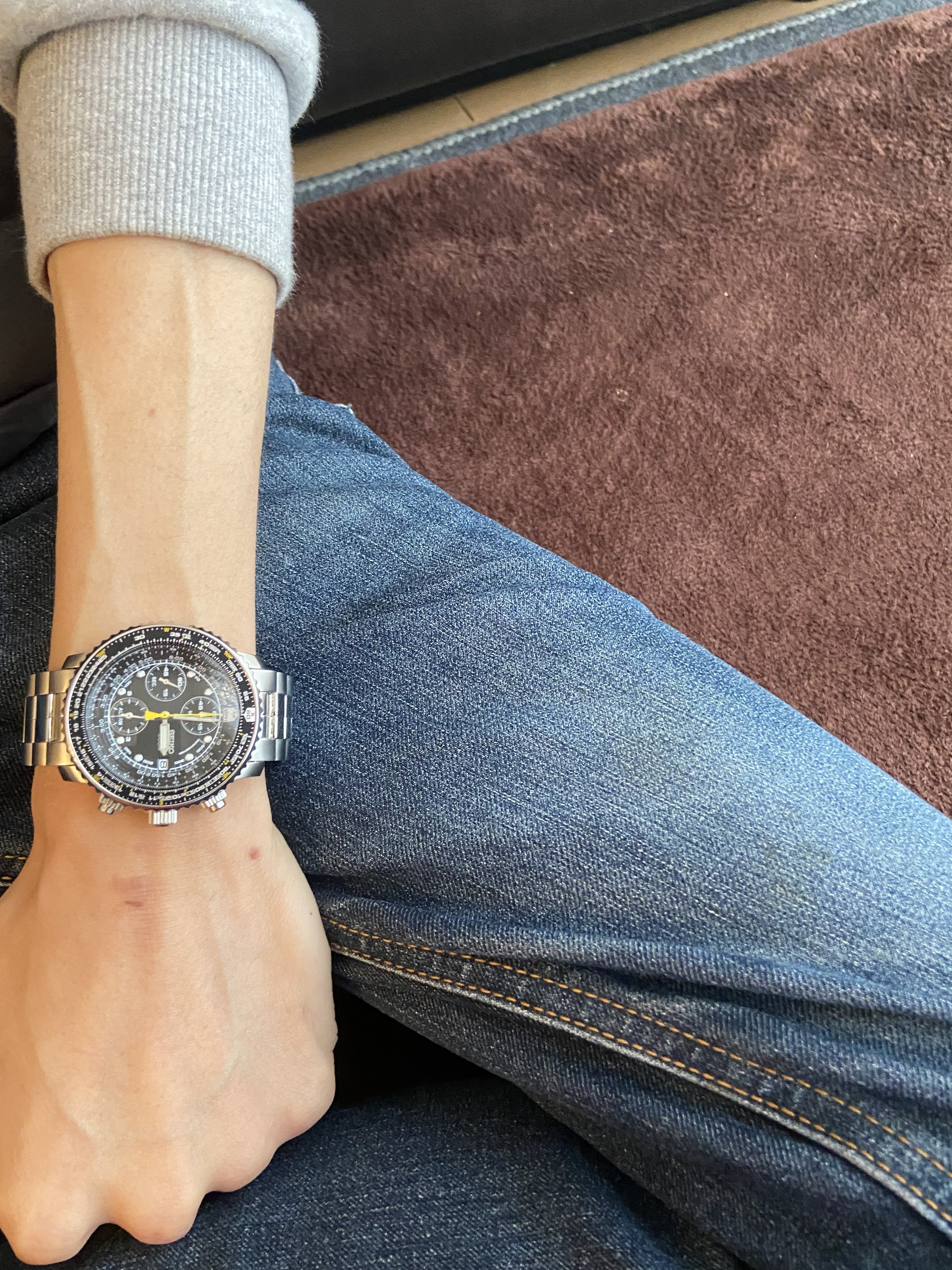 This is pretty the biggest one I can put on comfortably I think and due to the bigger bezels and smaller watch surface area, it give off a smaller than actual dimensions, ( the watch face part is only 32mm, including the slide bezel and it’s 42mm).