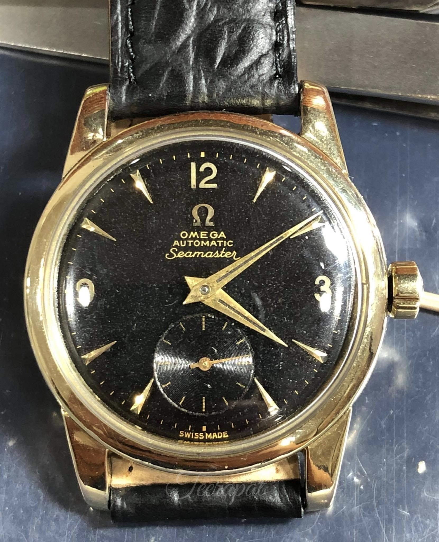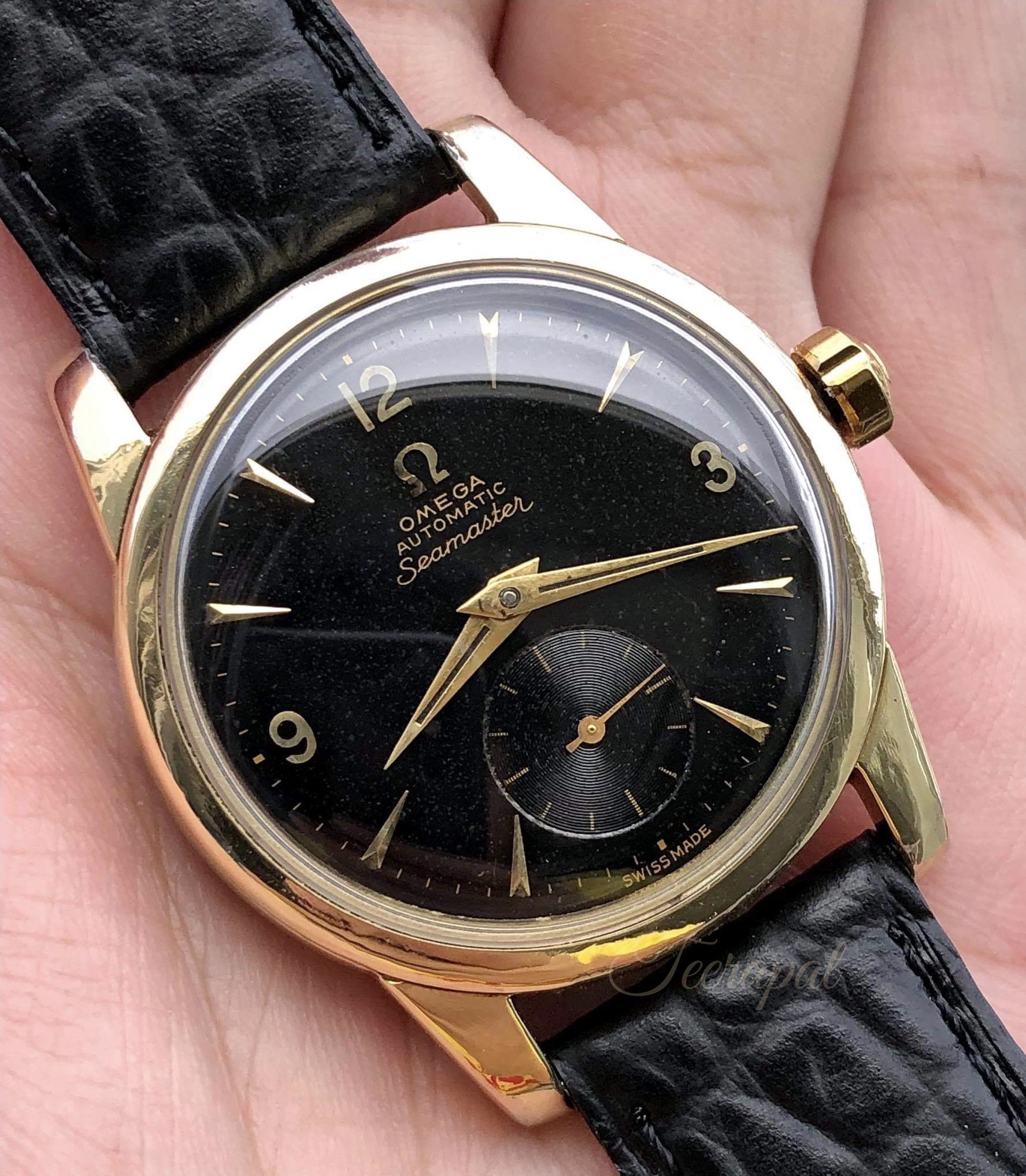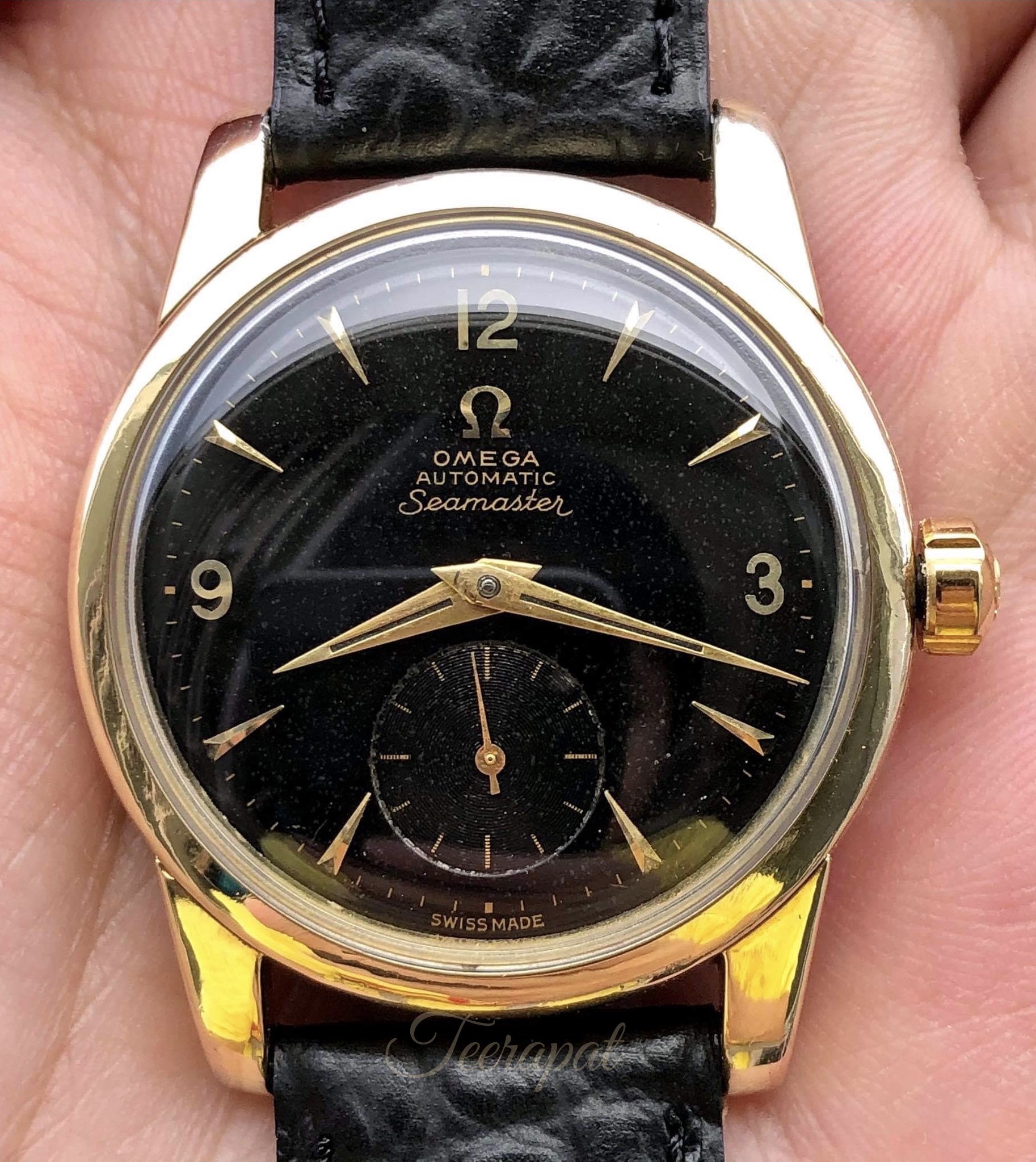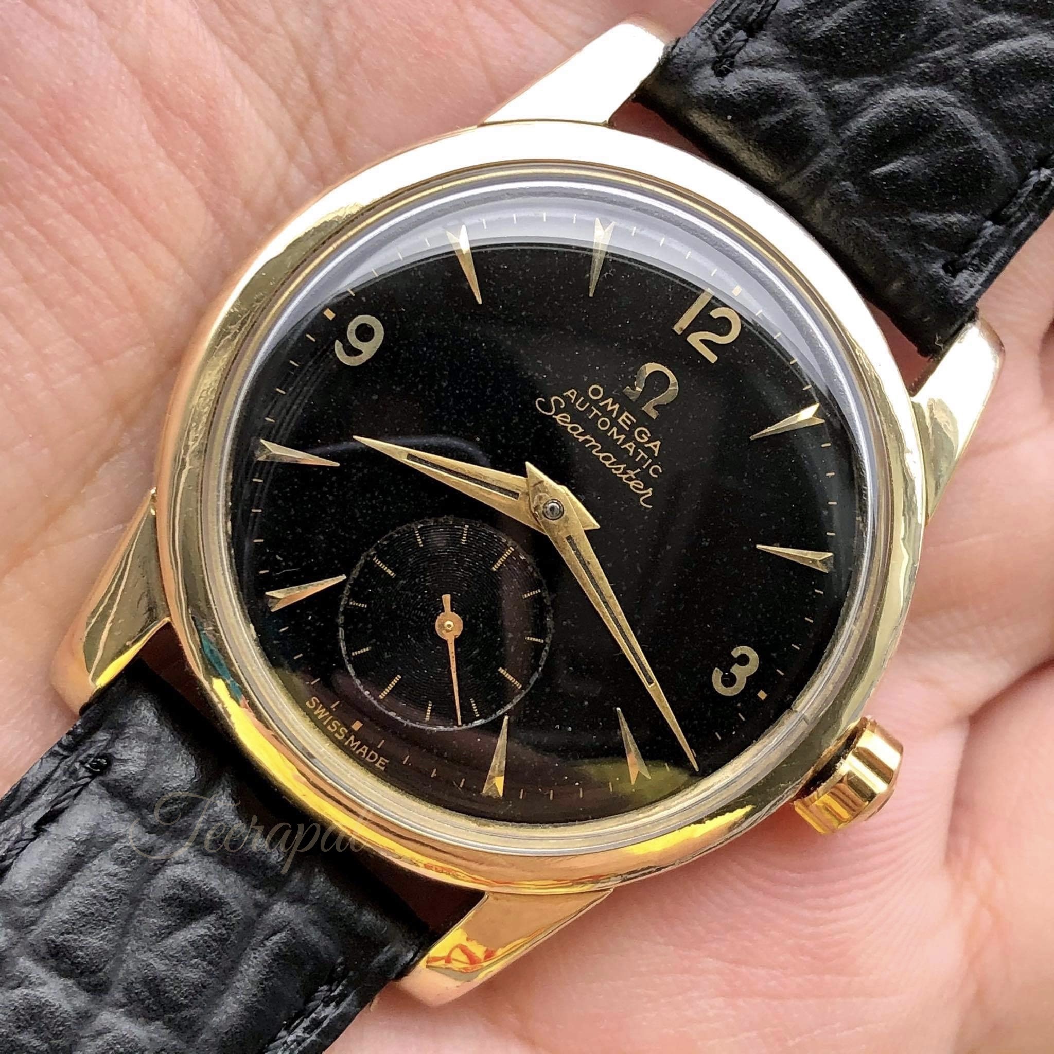 It was Omega seamaster ref.2848-1 with uncommon original black dial, serial no. 14,66x,xxx (around 1955) and powered by caliber 491.