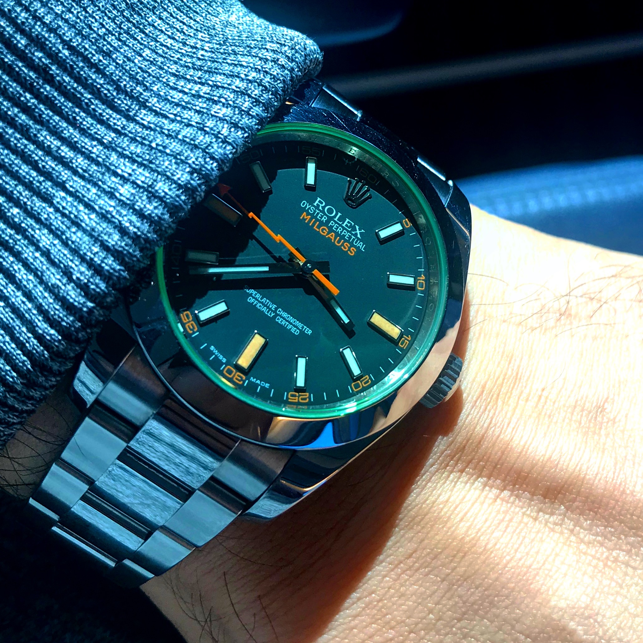 I actually kinda want a Milgauss... Green crystal, orange numerals, baton indices. Just need to try it on and make sure the 40mm isn't too small for me.