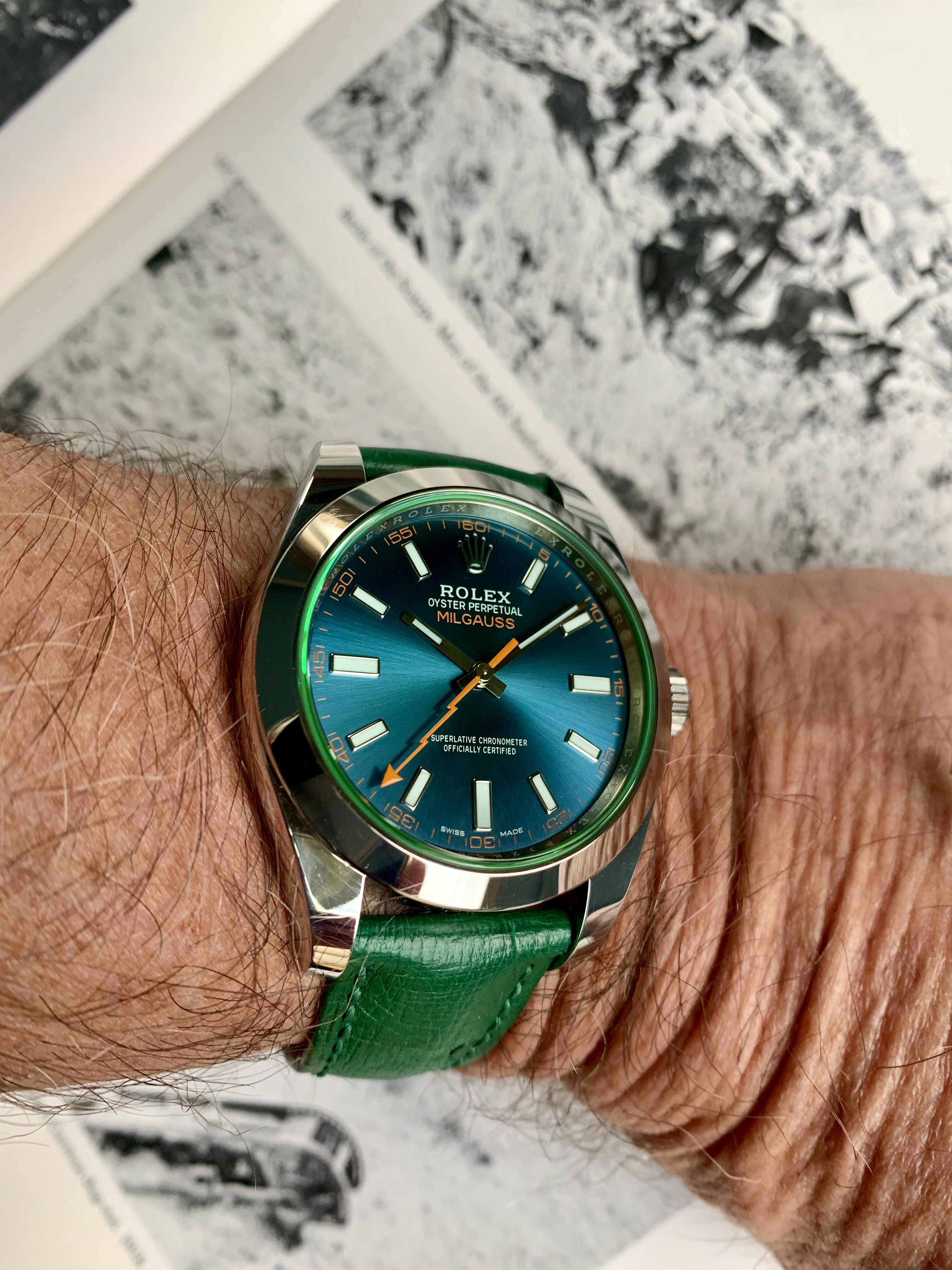 ·I recently bought my New Aqua Terra 15000 Gauss to go with my Rolex Milgauss and what a beauty it is. it sure dose complement my Milgauss. As far as technical goes i give it All to Omega, What a great technology. Omega is really playing there cards right. but lets not forget that Rolex was the first and even though its Mil= 1000 gauss its a very special piece. I do love them both equally and as far as comfort i would say Omega is more comfortable only because Rolex being top heavy but i would also say that Rolex Oyster bracelet is by far more comfortable. They both have a very unique second hand and i love it, with Rolex having a lightning bulb and Omegas ( Warning / caution ) or bumble bee. hope you enjoy.