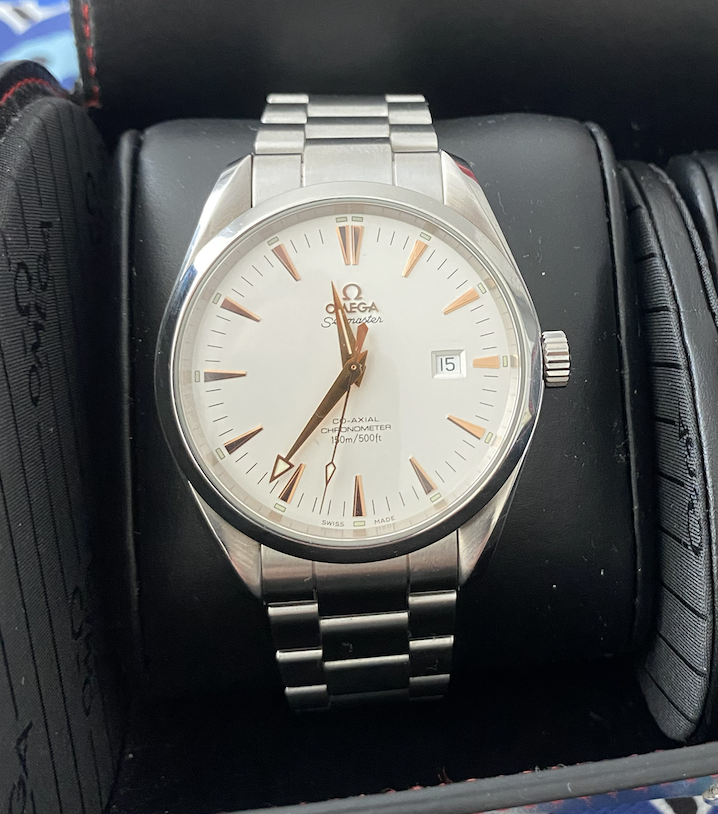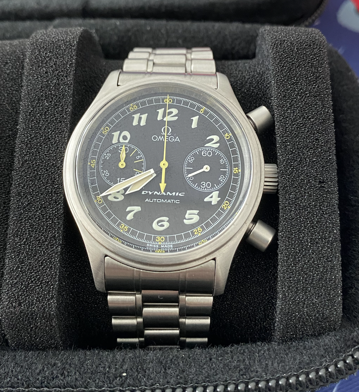 Probably the same year I bought a used modern Dynamic Chrono. I just love the dial on this and wanted something that was a departure from my usual huge watches. This had a complete overhaul by Omega in 2014.