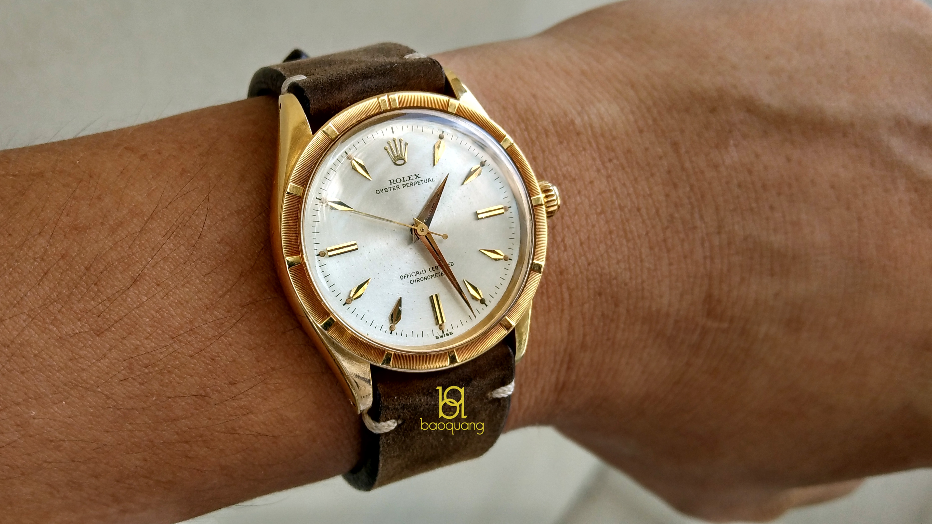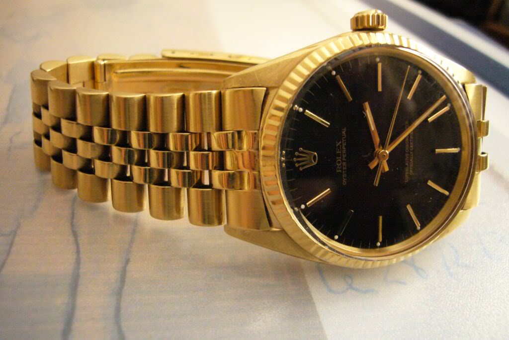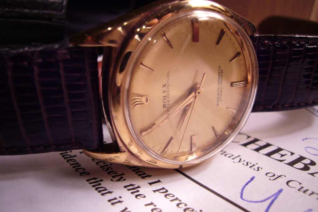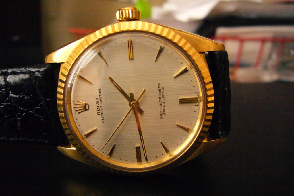 The 1013s are an amazing bargain, even today. $13k on a bracelet, $^k to $7k on a strap with gold rolex buckle. 18k 36mm case with 20mm lugs, same basic size as the 18k DateJust and Day Date, but not quite as tall so it lies flatter on the wrist. Intro'd in Sept. 1960 it had the 1560 movement, Dauphine hands and dagger markers. By the mid to late sixties it had changed to the 1570 movement with baton markers and stick hands. In the early seventies it got the hacking movement. Not sure how long after that production stopped. Some came on Oyster bracelets, others on Jubilees, and many on leather straps. They were for the few who did not want the more complicated DJ and DD, as a result they were probably produced in much fewer numbers or ordered by request. Here are a couple of others that I owned, and then let get away...included a pink gold smooth bevel 1012 version (mabe the rarest).