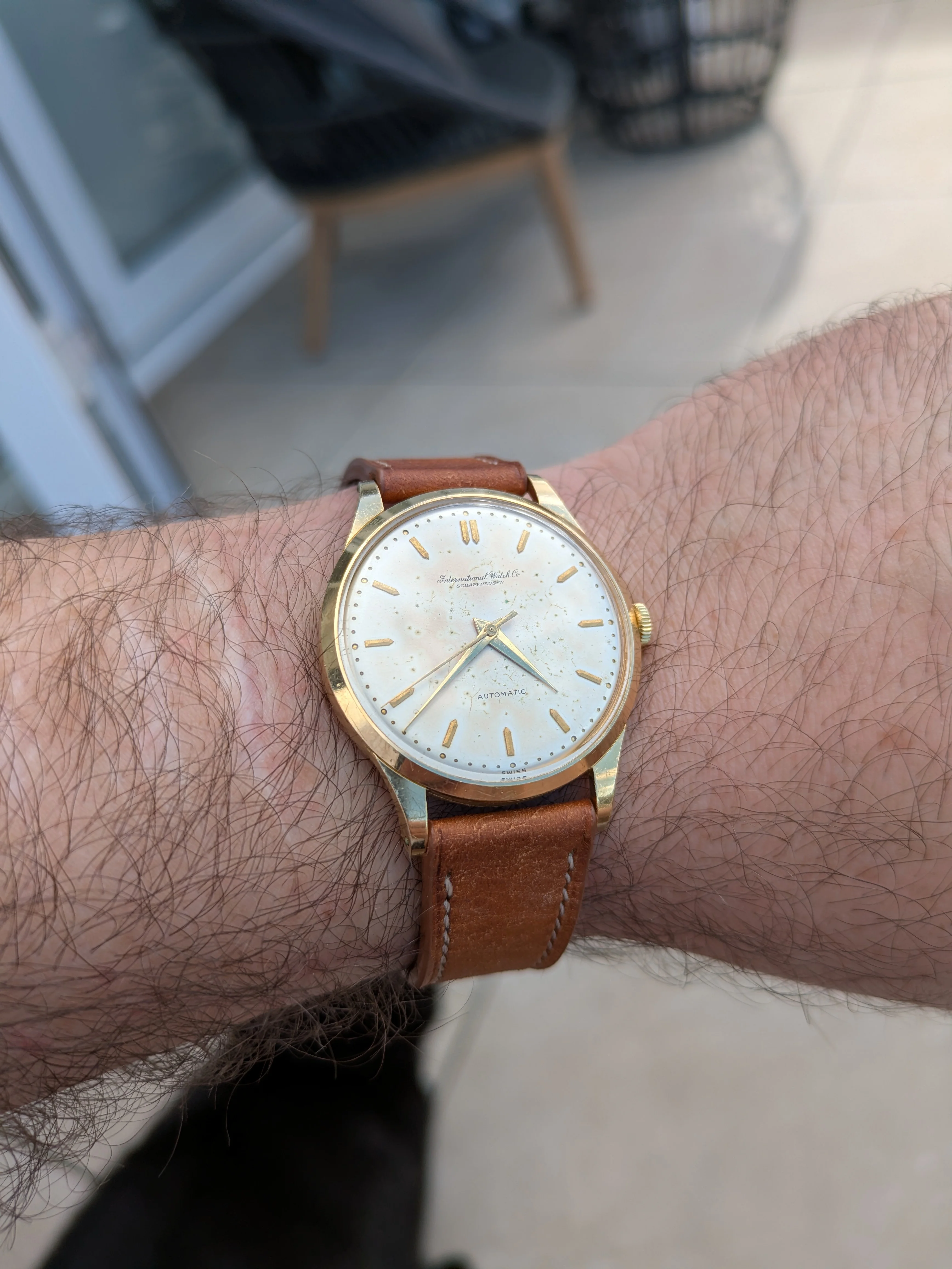 Posts 8 Likes 5 Schwuppes 路Apr 25, 2025 My own humble two vintage IWC pieces. I believe an "OldInter" from 1963, 35mm 18ct solid gold cal. 853. And (also not sure) a ref. 2403 manual wind cal. 403, early 70's. Please feel free to correct me on the model/ref numbers. 馃檪