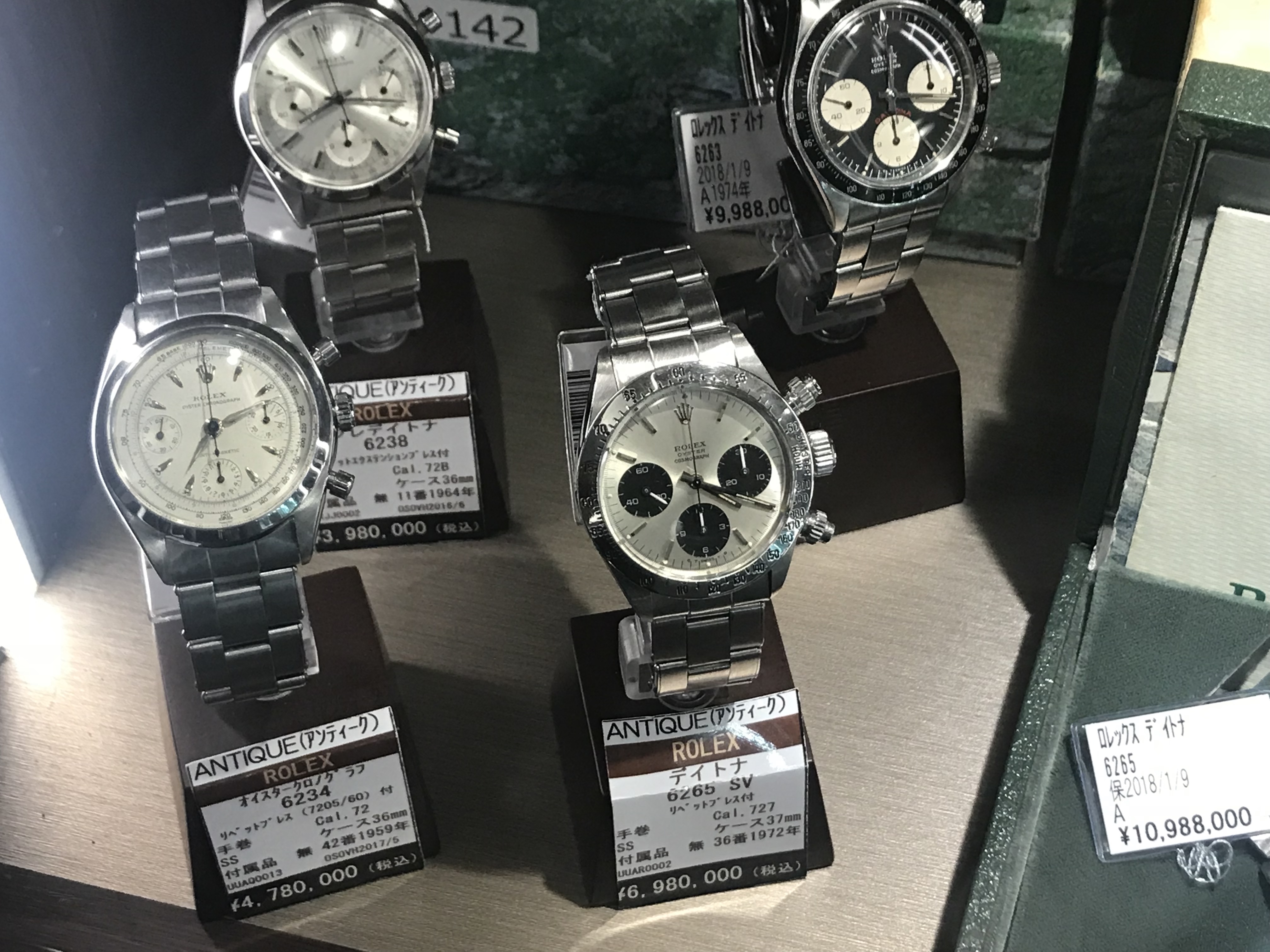 A 6265 Daytona. If you have a cool 60k USD. Are you seeing a trend? Unlike North American watch shops with over the top security for their boutiques.. in a lot of shops in Japan.. having it behind a glass cabinet is sufficient security.