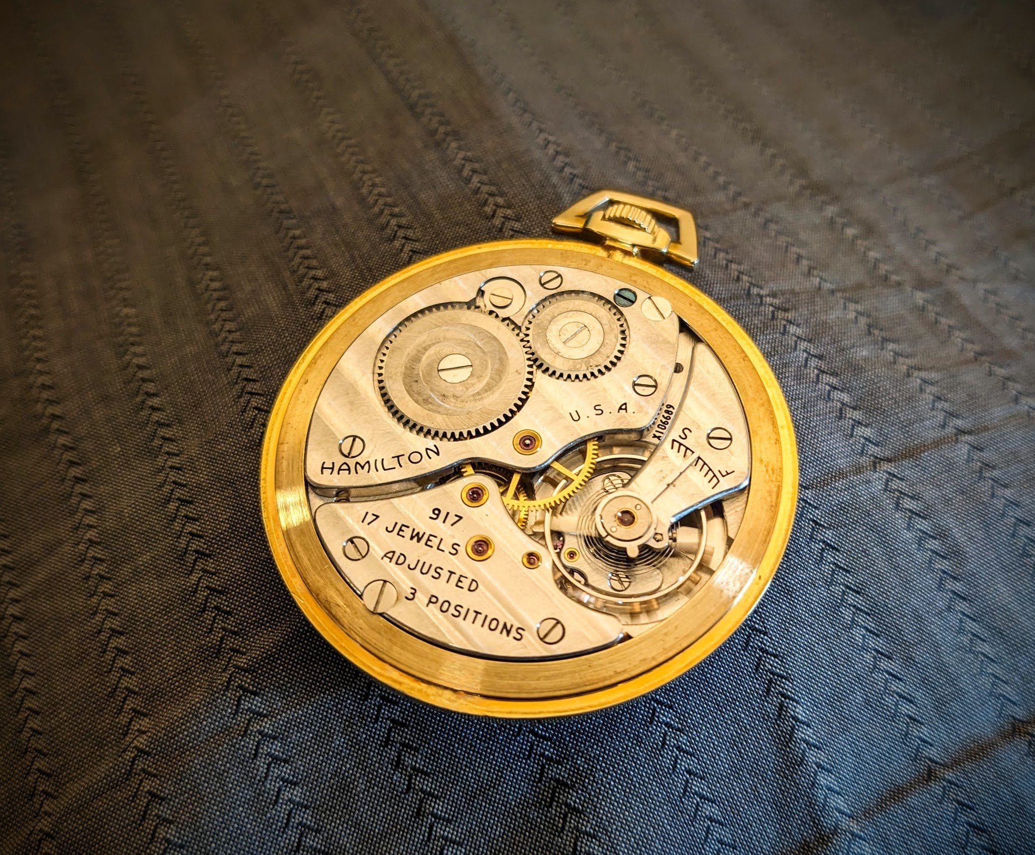 Posts 338 Likes 1,148 WestCoastTime ·Jan 23, 2024 Made in USA Hamilton 917, c.1946. One of my favourite old movements, can't really say why (other than that they are easy to work on & produce fine timekeeping results...). -