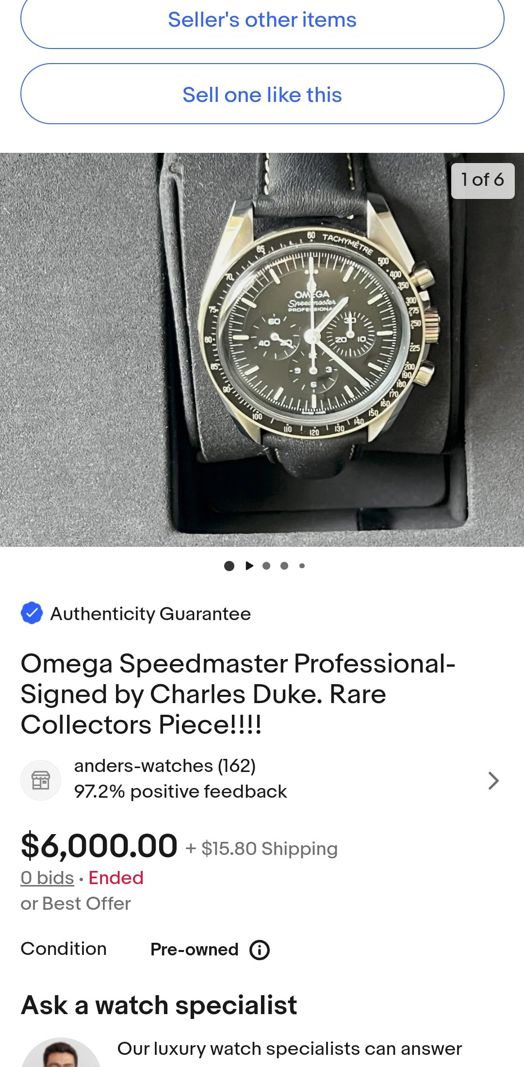 If this had been Duke's own watch or flown in space, it'd probably be triple the value.