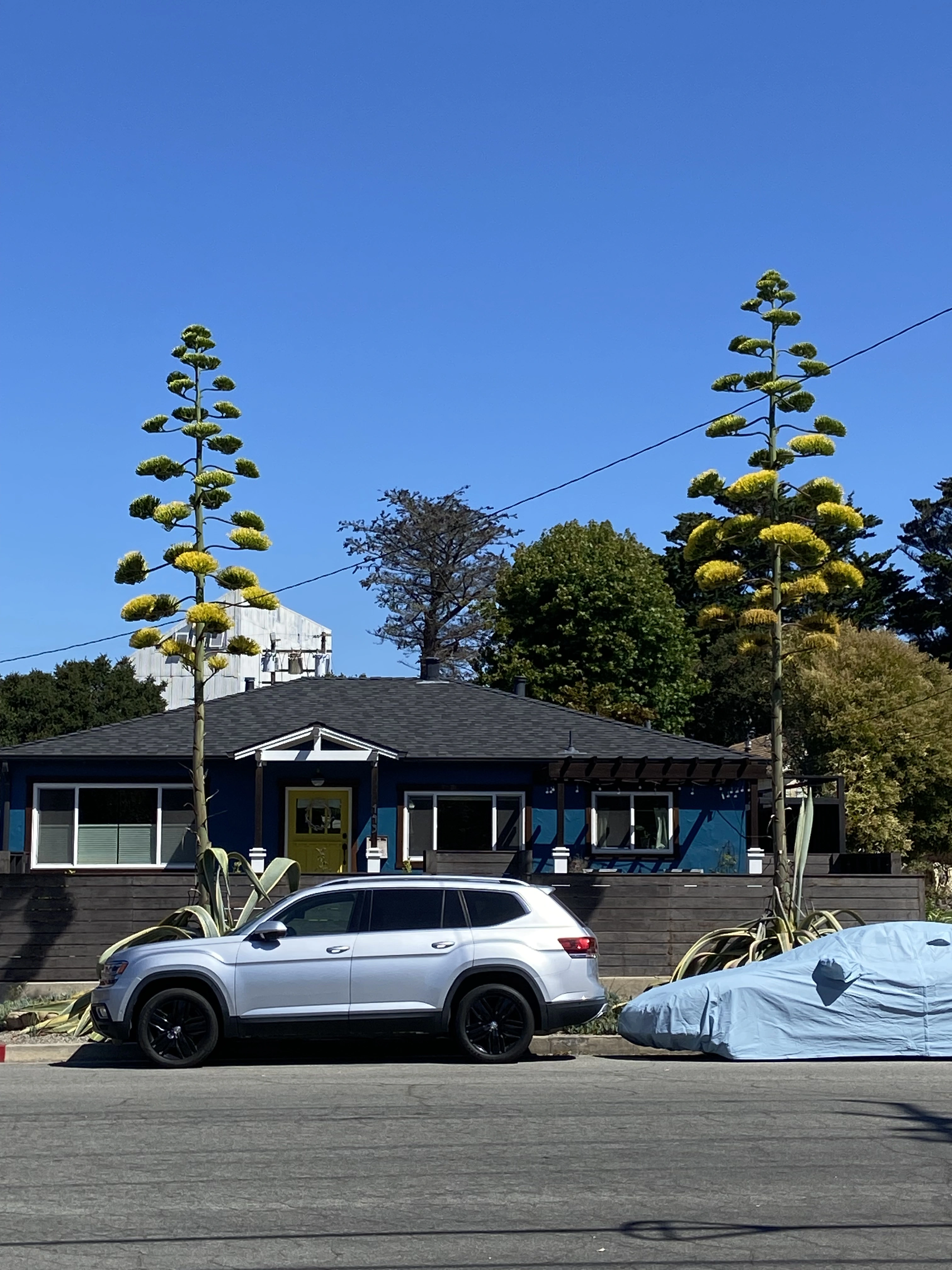These agave’s have been at the end of my street for a couple decades now. Sadly they only flower once in their lifetime, pre-death. The plants themselves were about 2m tall before the blossom and droop of the leaves. The blossoms are towering above the power pole so 8-10m tall currently.
