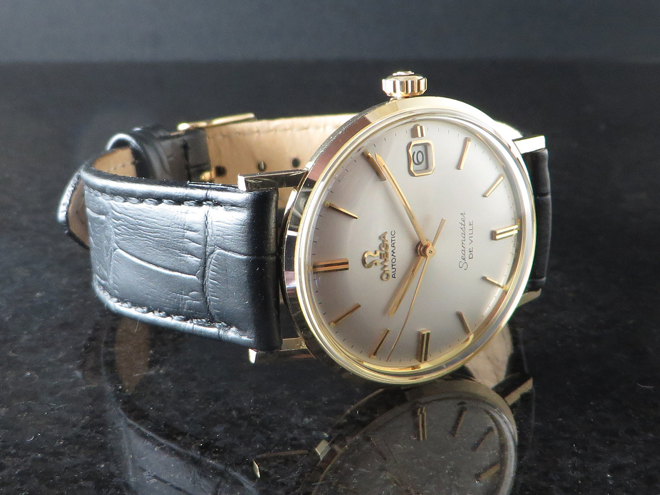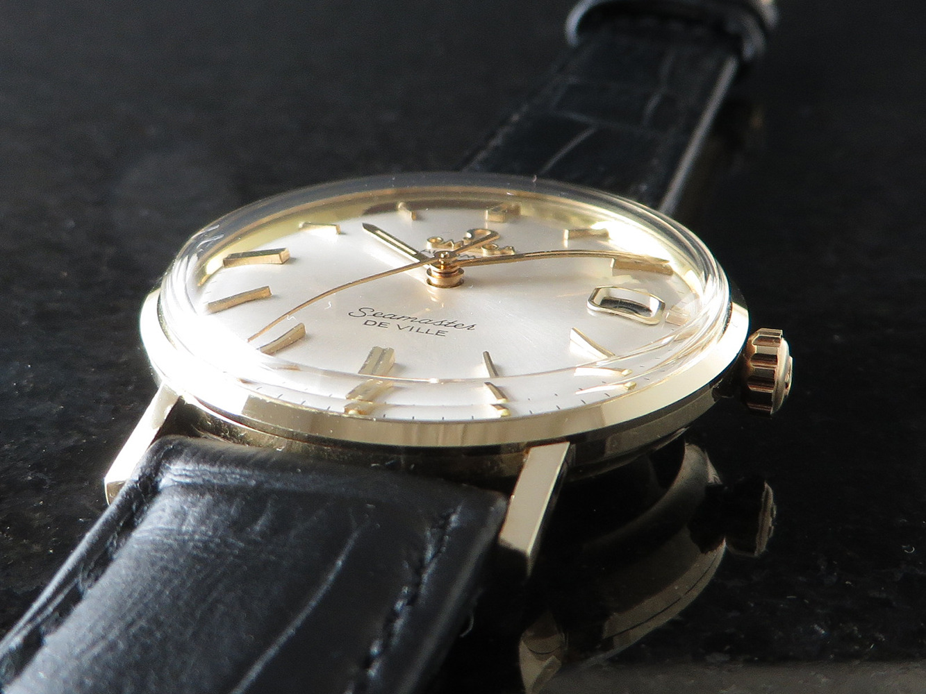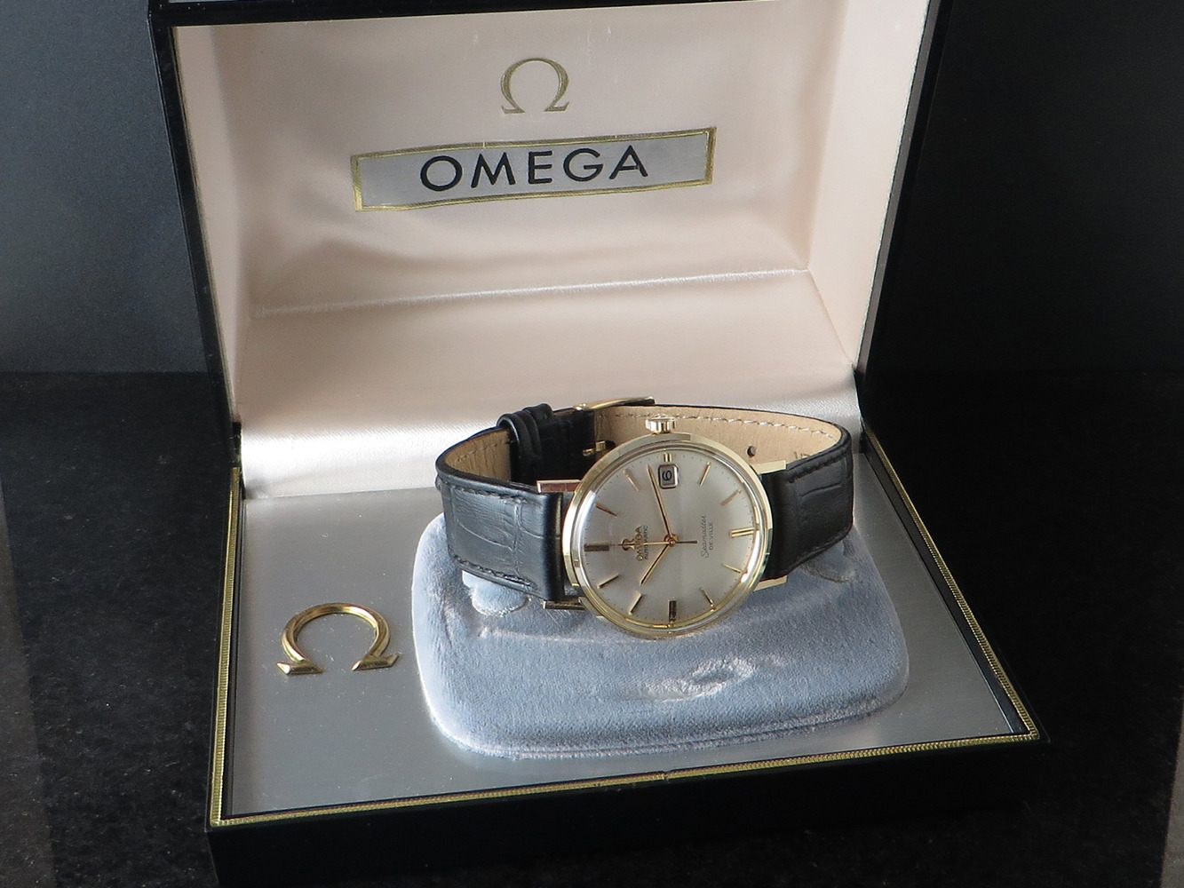 ··Vintage Omega AficionadoExceptional 14K gold-filled Seamaster DE VILLE, very nearly unworn with Hippocampus back.