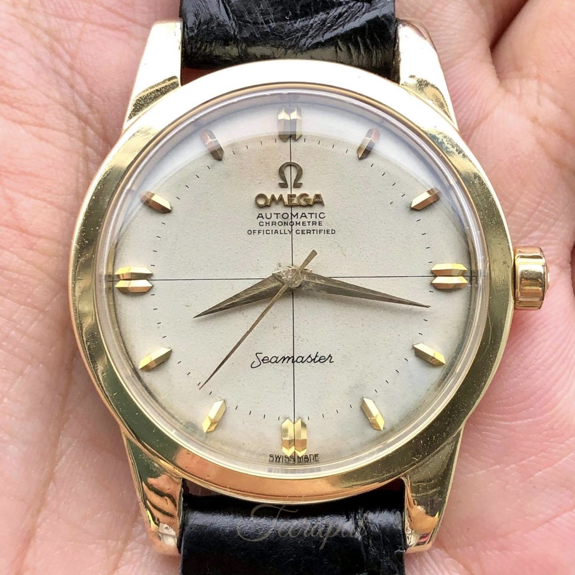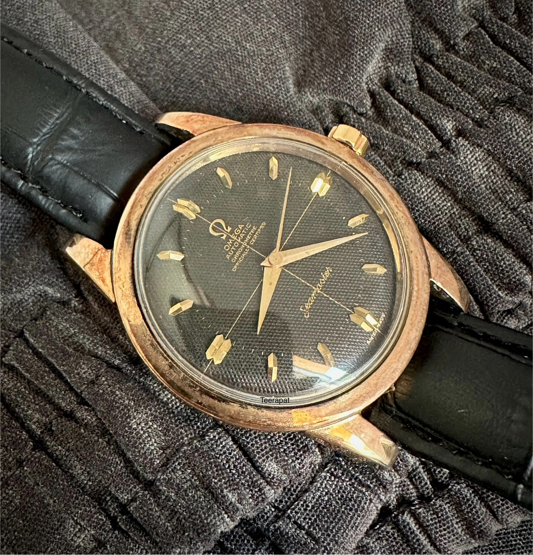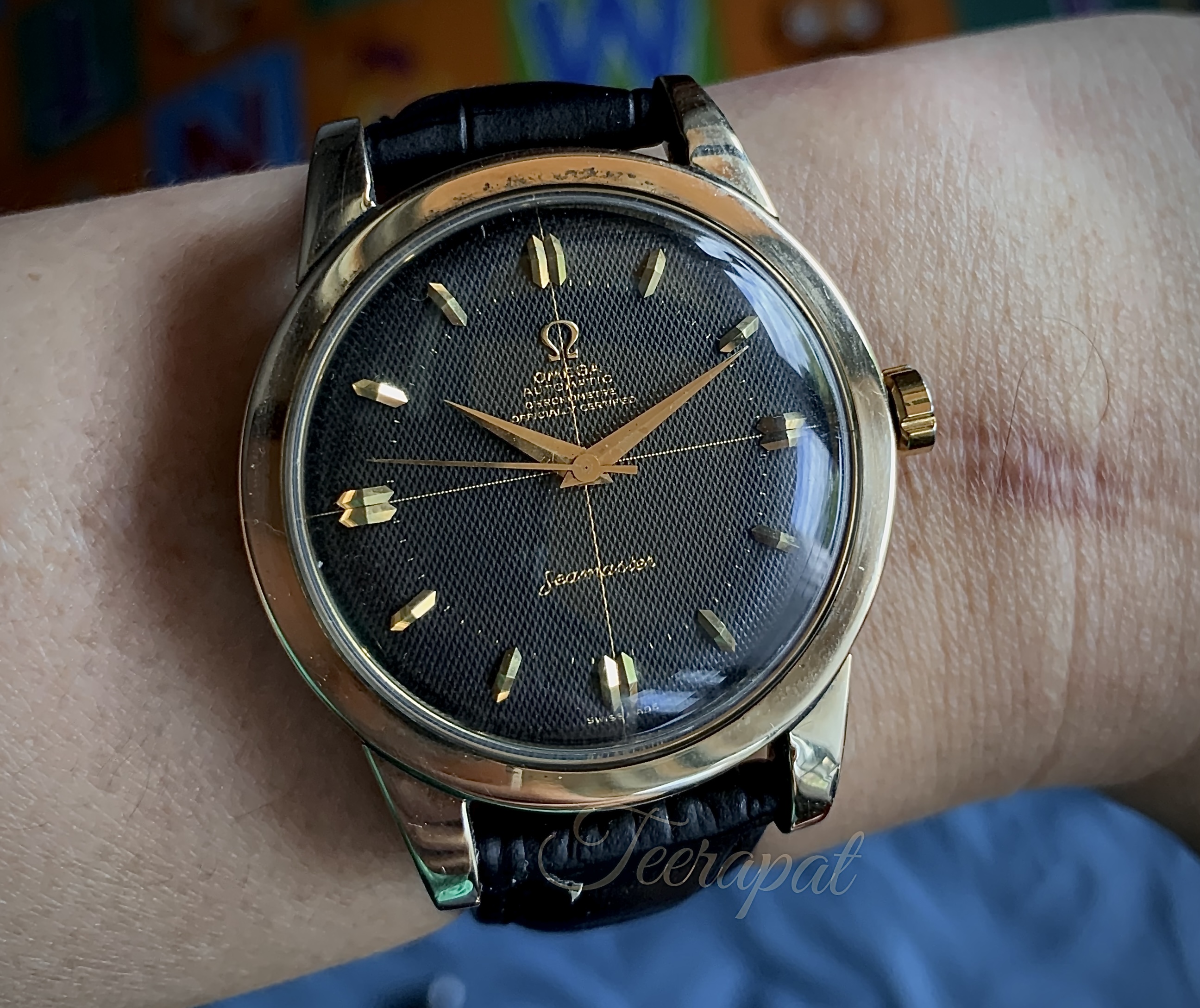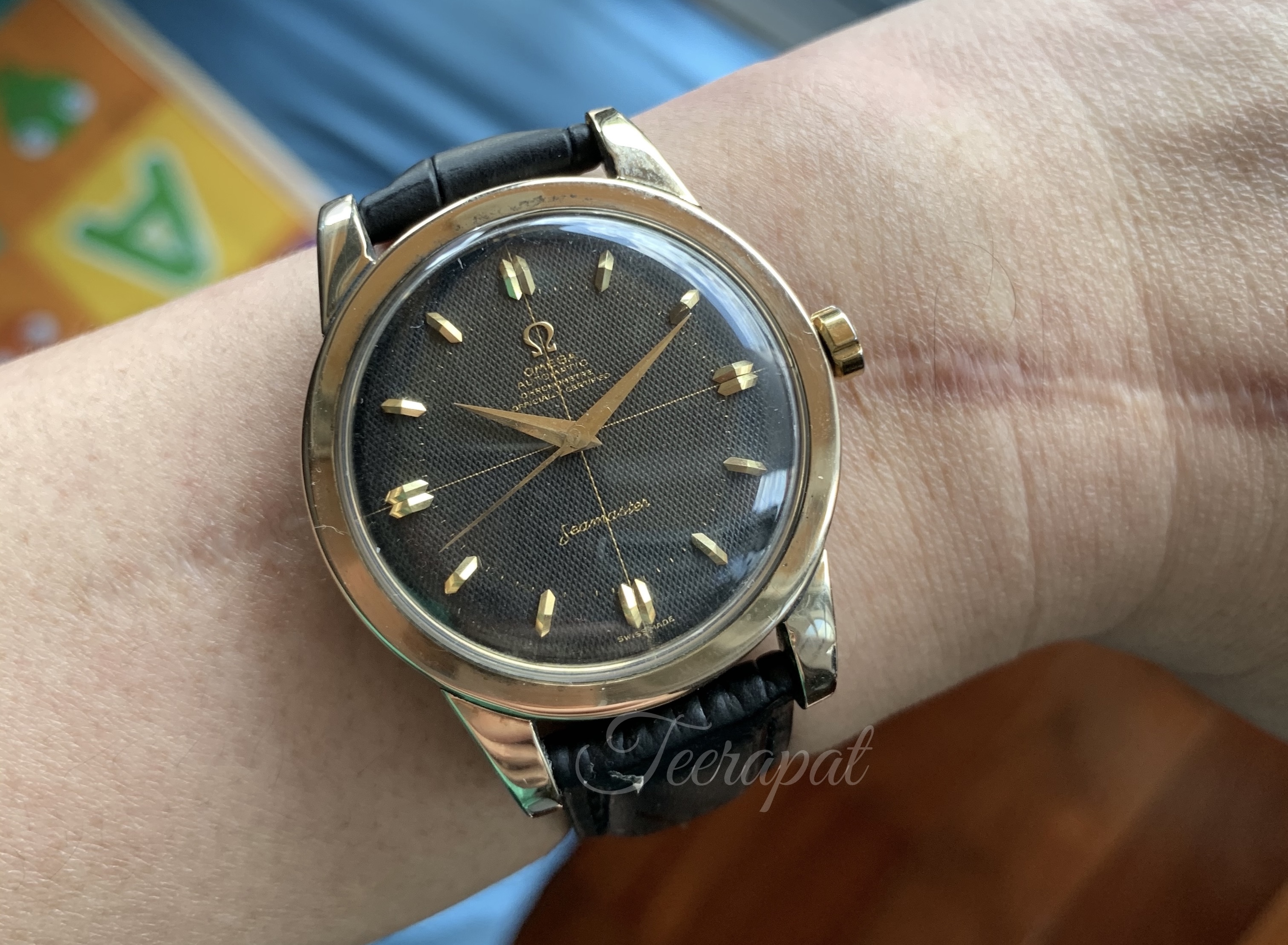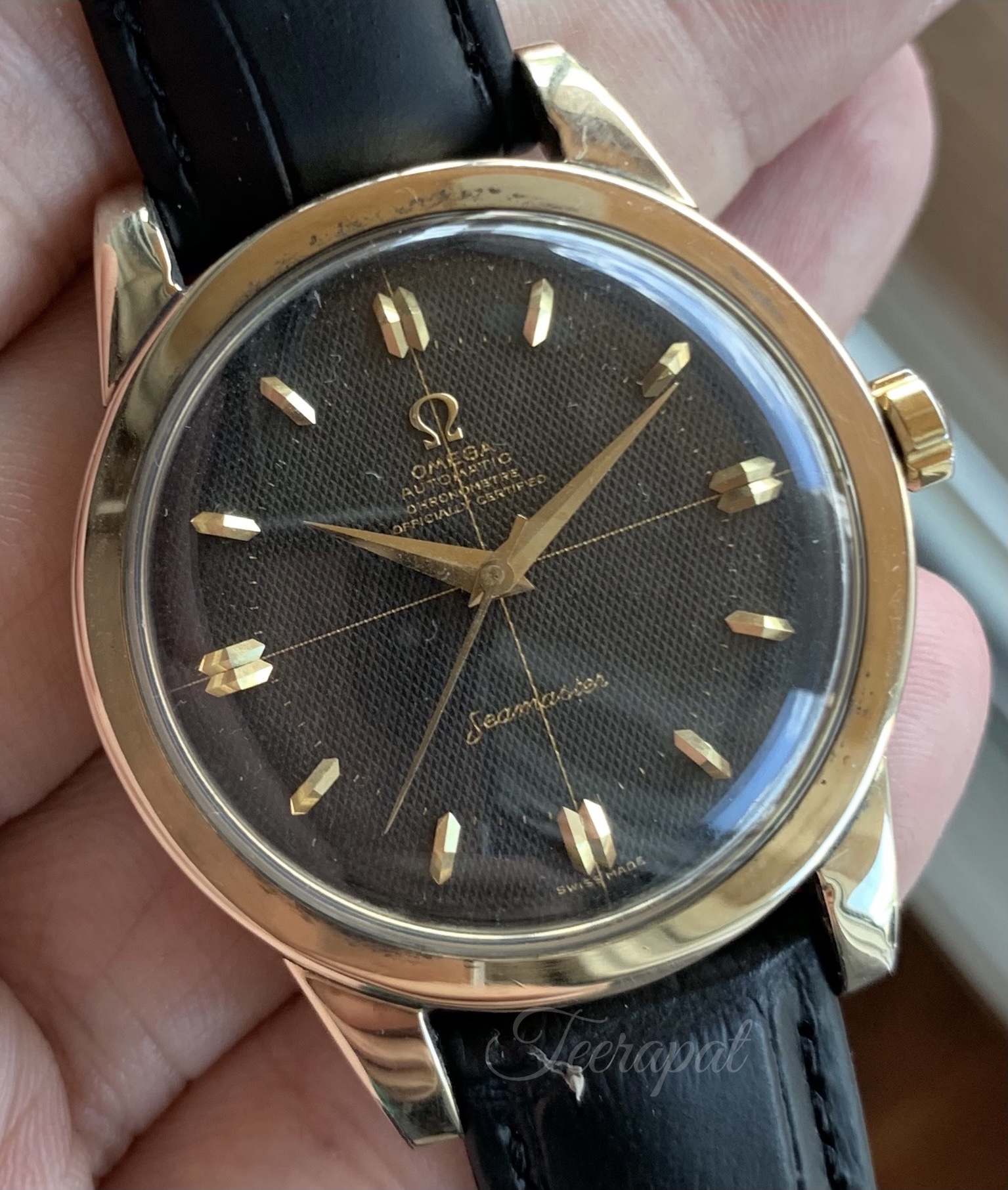 I would like to share this black waffle seamaster chronometre with larger case, approximately 36.5mm excluding the crown and 39.4 mm including the crown (larger than usual seamaster which is 34.5mm excluding the crown).