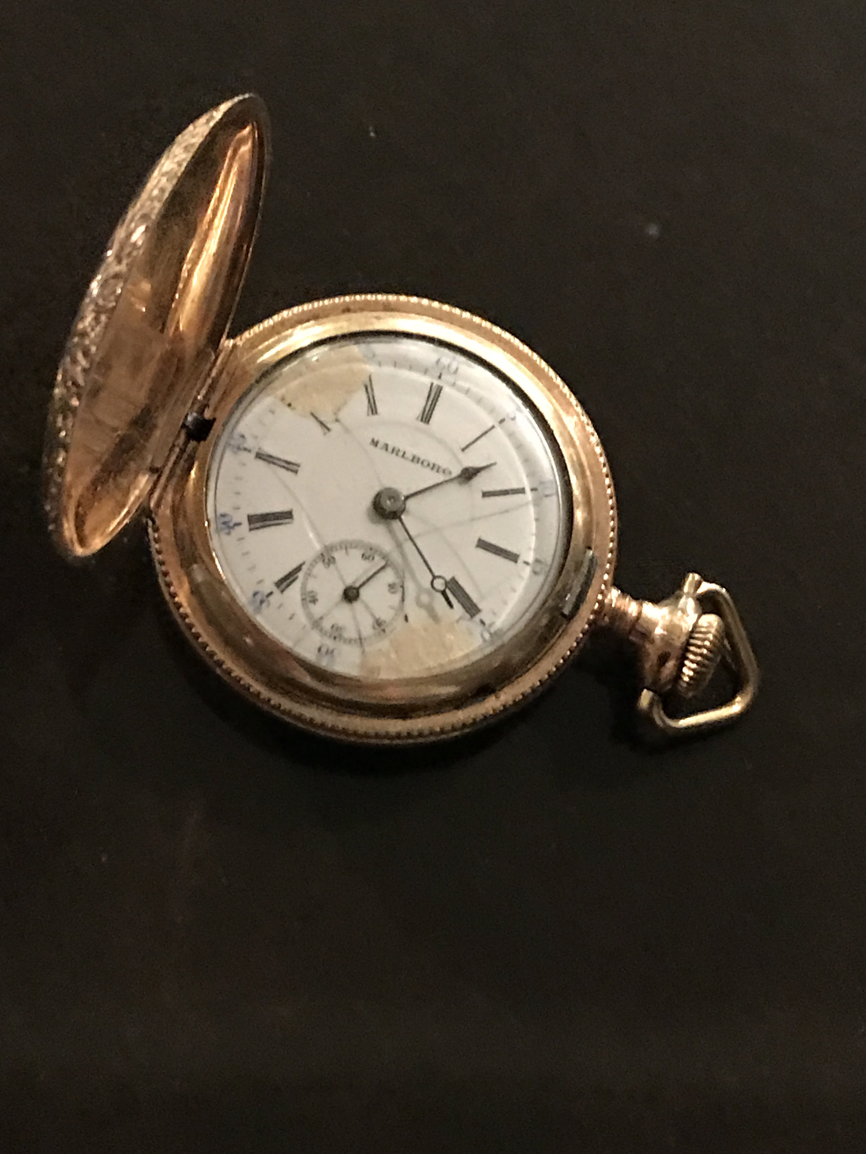 ·I inherited this Marlboro lady’s time piece. I was told it may have been my great grandmother’s but the details are at best “sketchy”. As you can see it has some problems especially the dial but if it was my great grandmother’s, she would have had it in the late 19th or early 20th century. It actually runs but needs some serious TLC. I have found out that it is 18K gold. If any of our fellow OF members can help fill in some details about this piece, it will be greatly appreciated. Is it rare and/or worth restoration?