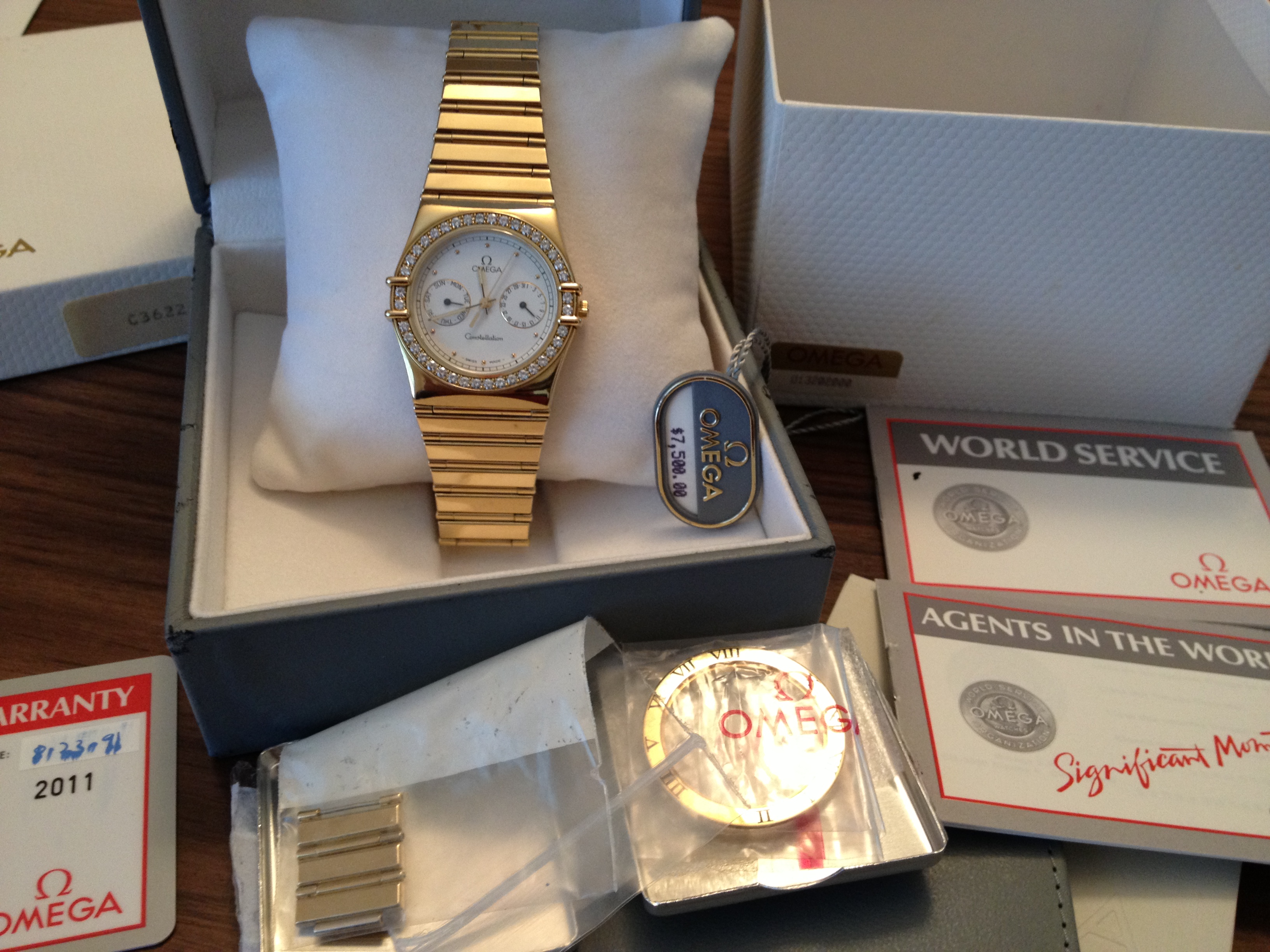 I sent it to the NY service center, and had the diamond bezel fitted. Watch has been regularly serviced at Omega certified facilities here in So Cal. Heres a pic........