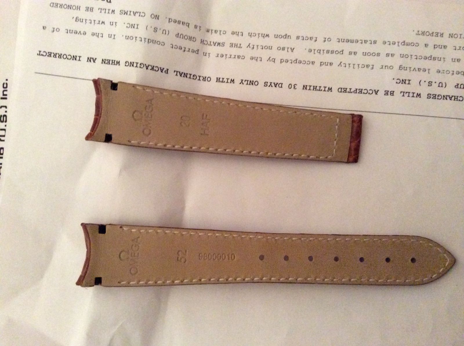 ·This strap is very cool, and rather difficult to find. This is a brand new genuine Omega 98000010 honey brown alligator 20mm leather strap for the Omega Speedmaster (or other watches with 20mm lugs). It includes just the leather strap (no deployment, you need to purchase that separately). Never used, never mounted, comes with receipt from Omega.