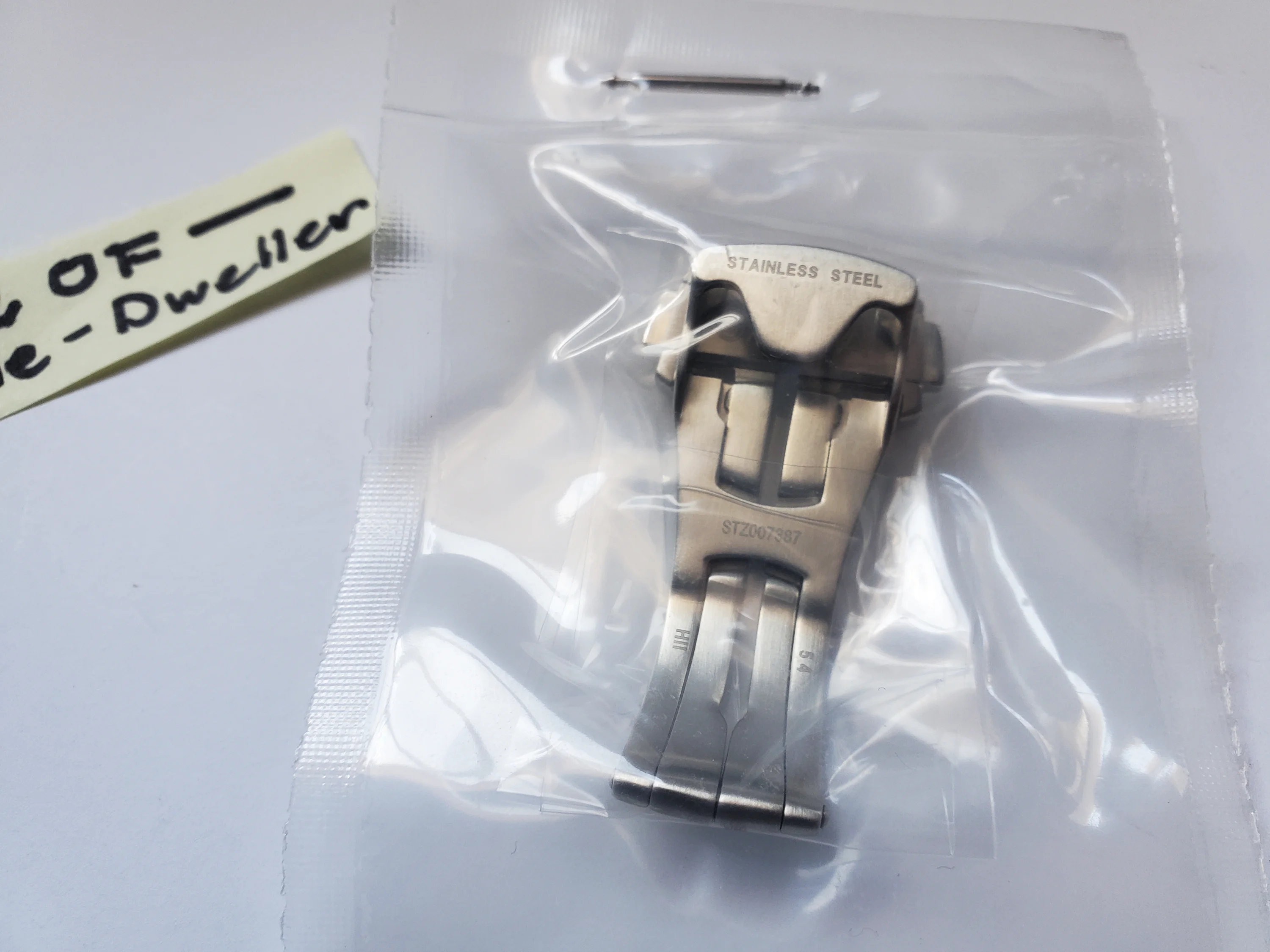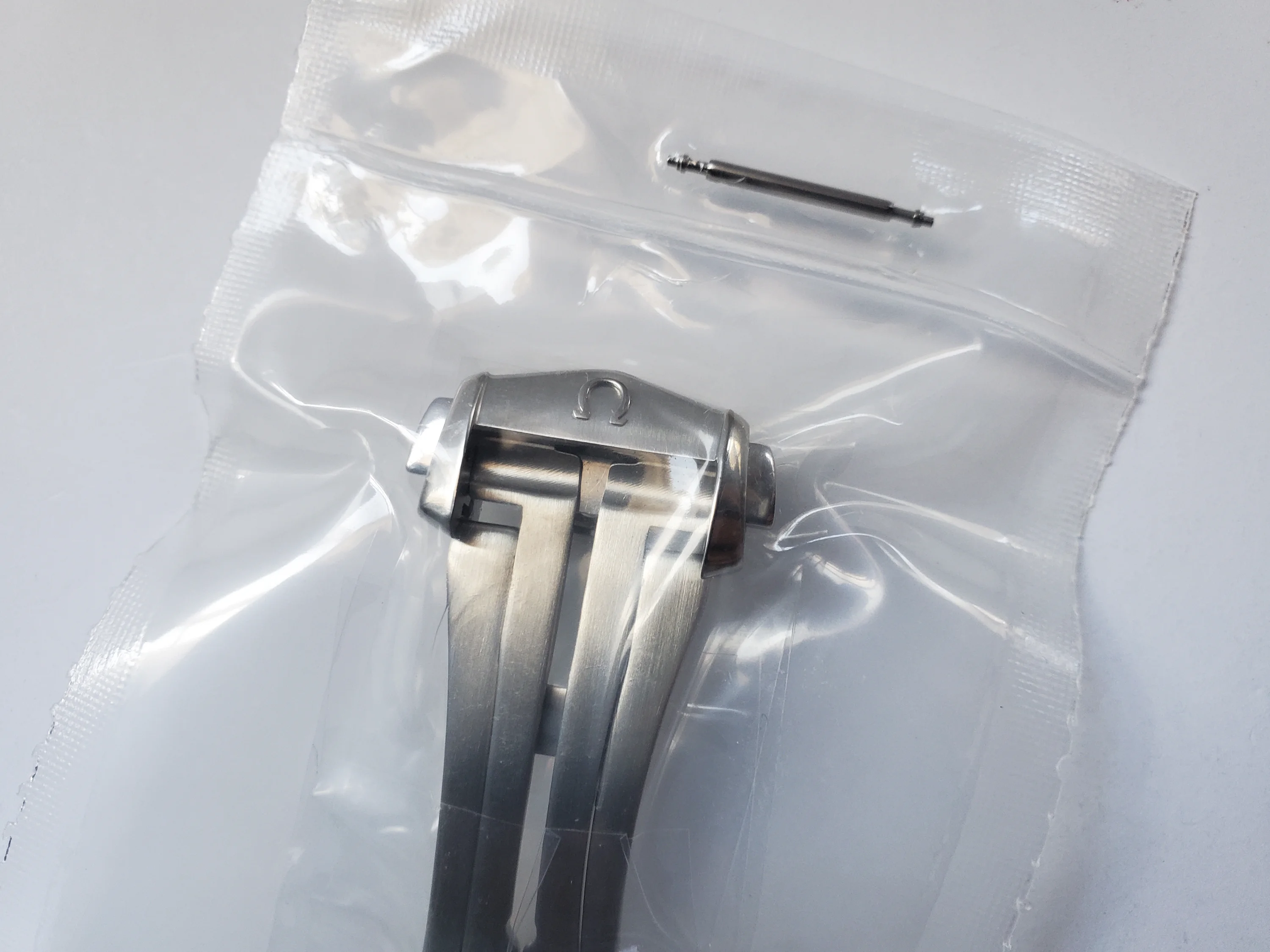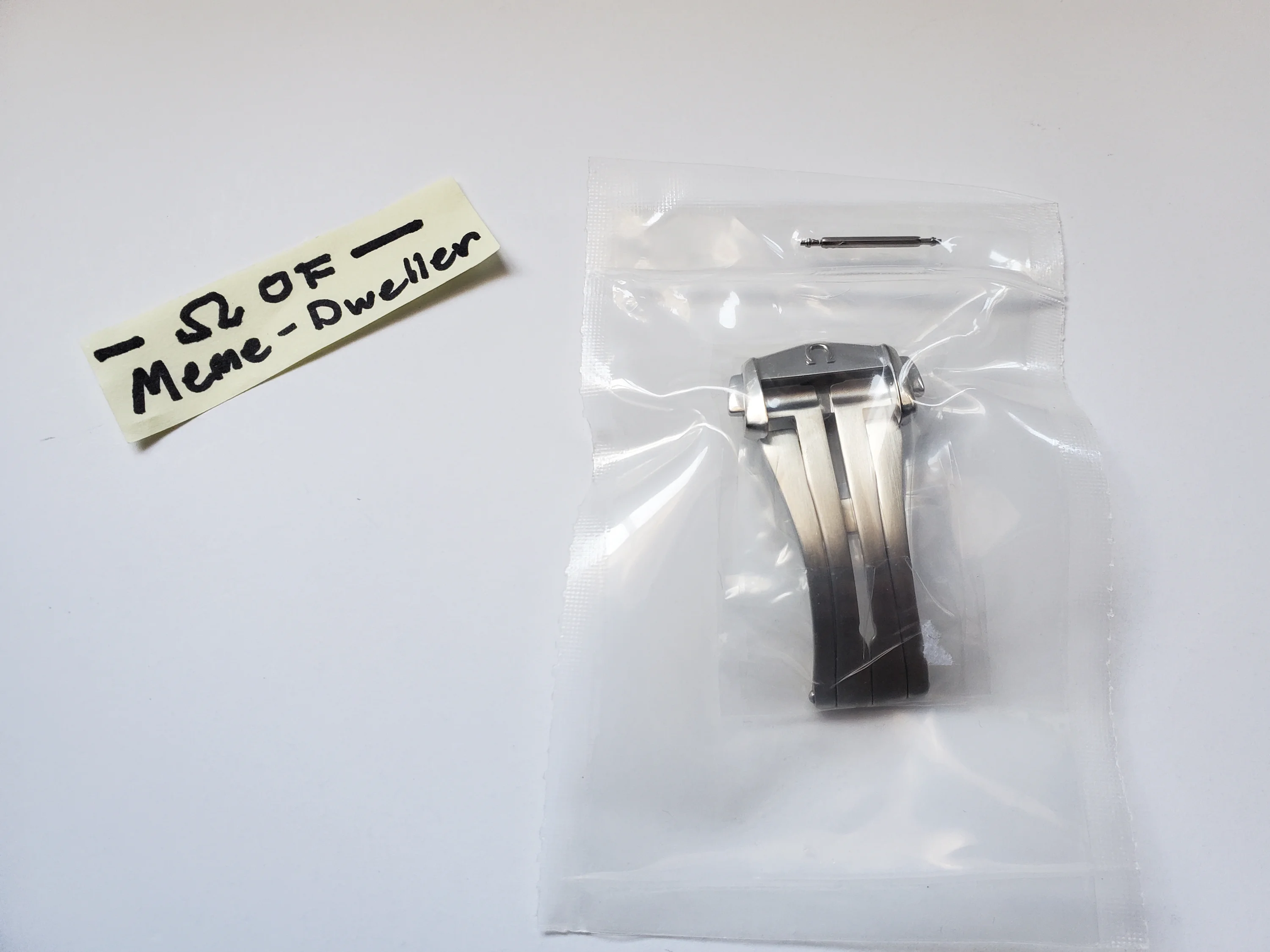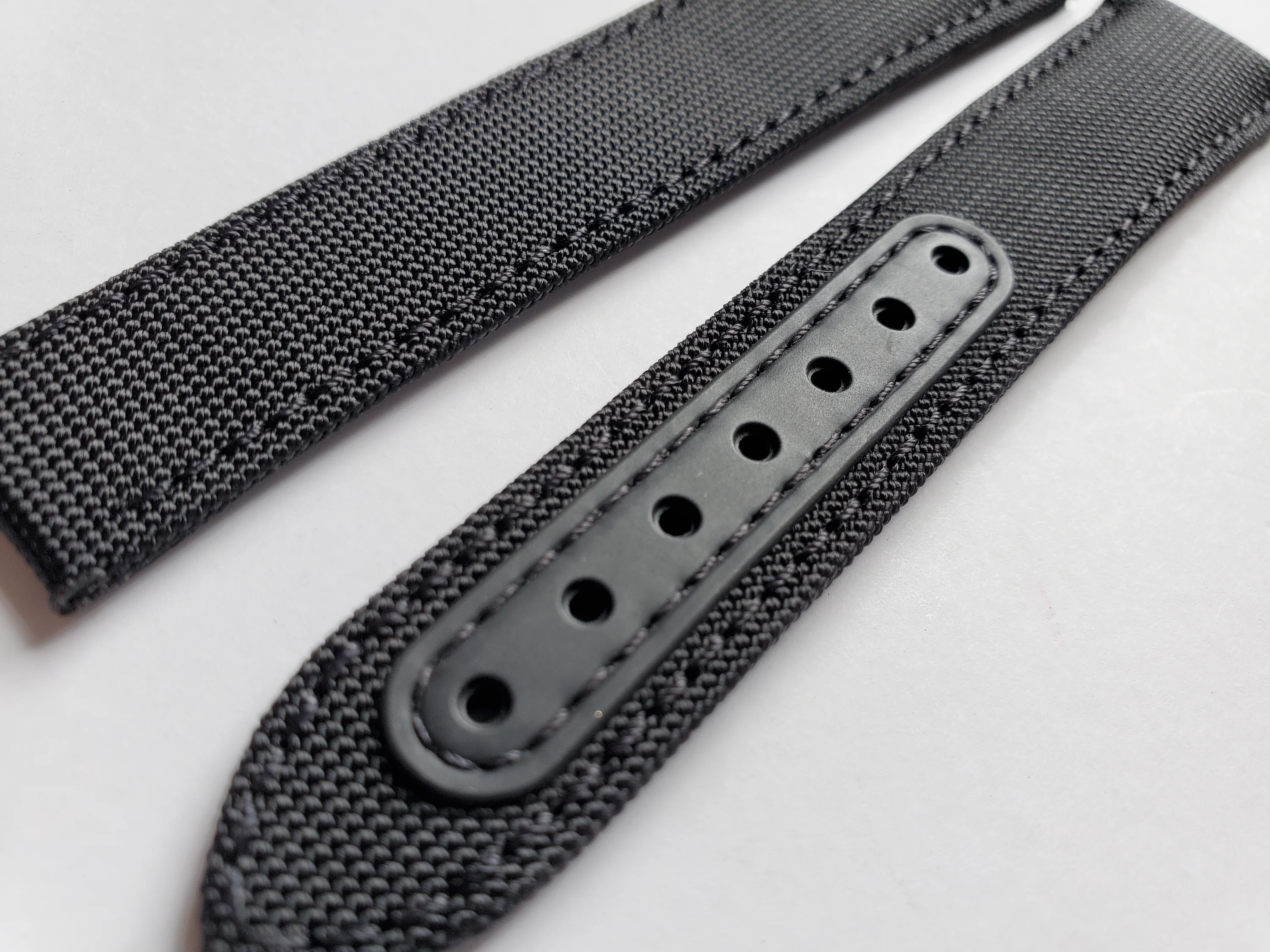 ·Up for sale is a new & unworn genuine Omega black fabric & leather strap with genuine Omega stainless steel buckle. The strap is 20mm wide at the lugs and tapers to 16mm at the clasp. No spring bars included (except the one that connects to the clasp). Standard/Regular/M length. This is meant for the Moonwatch, but it'll fit almost any watch with a 20mm lug width.