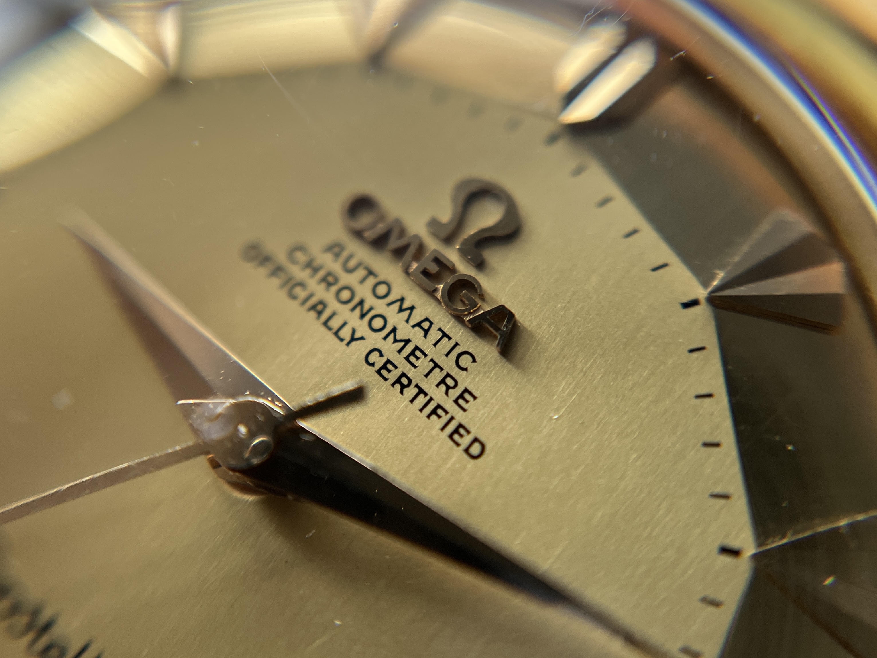 The story is quickly told: About 2 years ago, I found a little gem: A Constellation 2853 “Deluxe” dial, complete with the cal. 505 movement, hands, stem and flat foot crown. Most likely, the case had fallen prey to a smelter who must’ve been unaware that the dial, the indices, and the hands were made from solid gold, too.