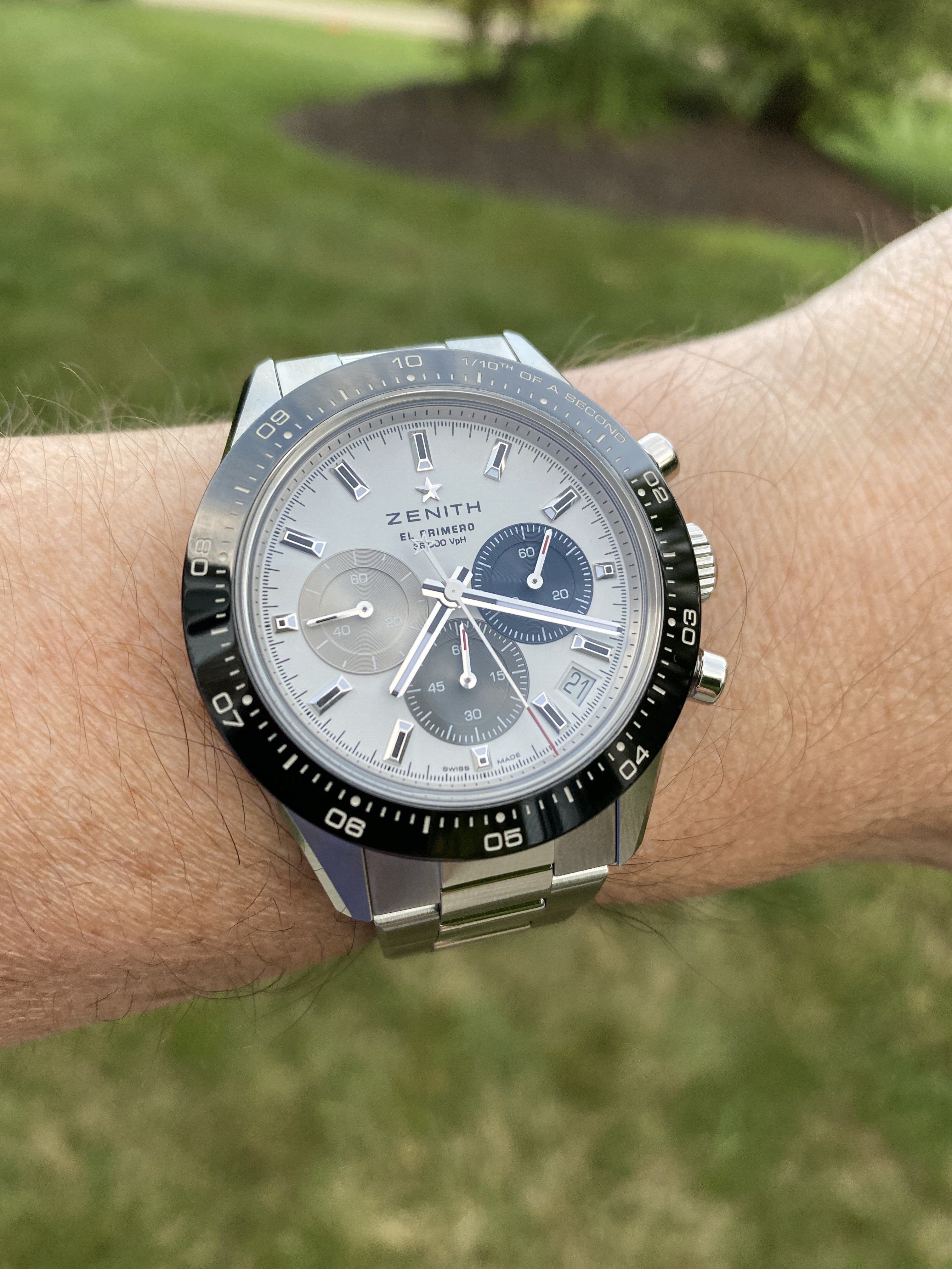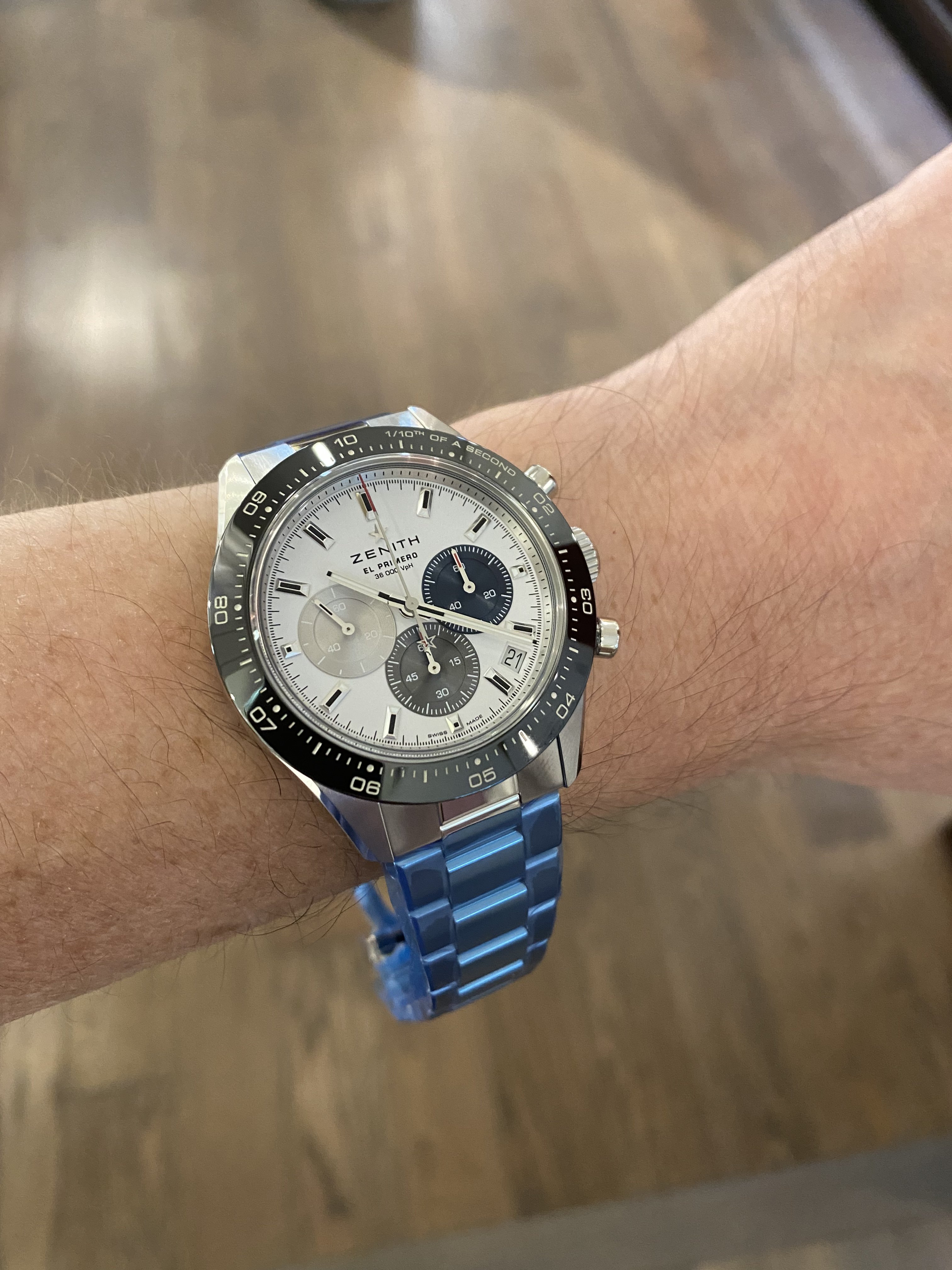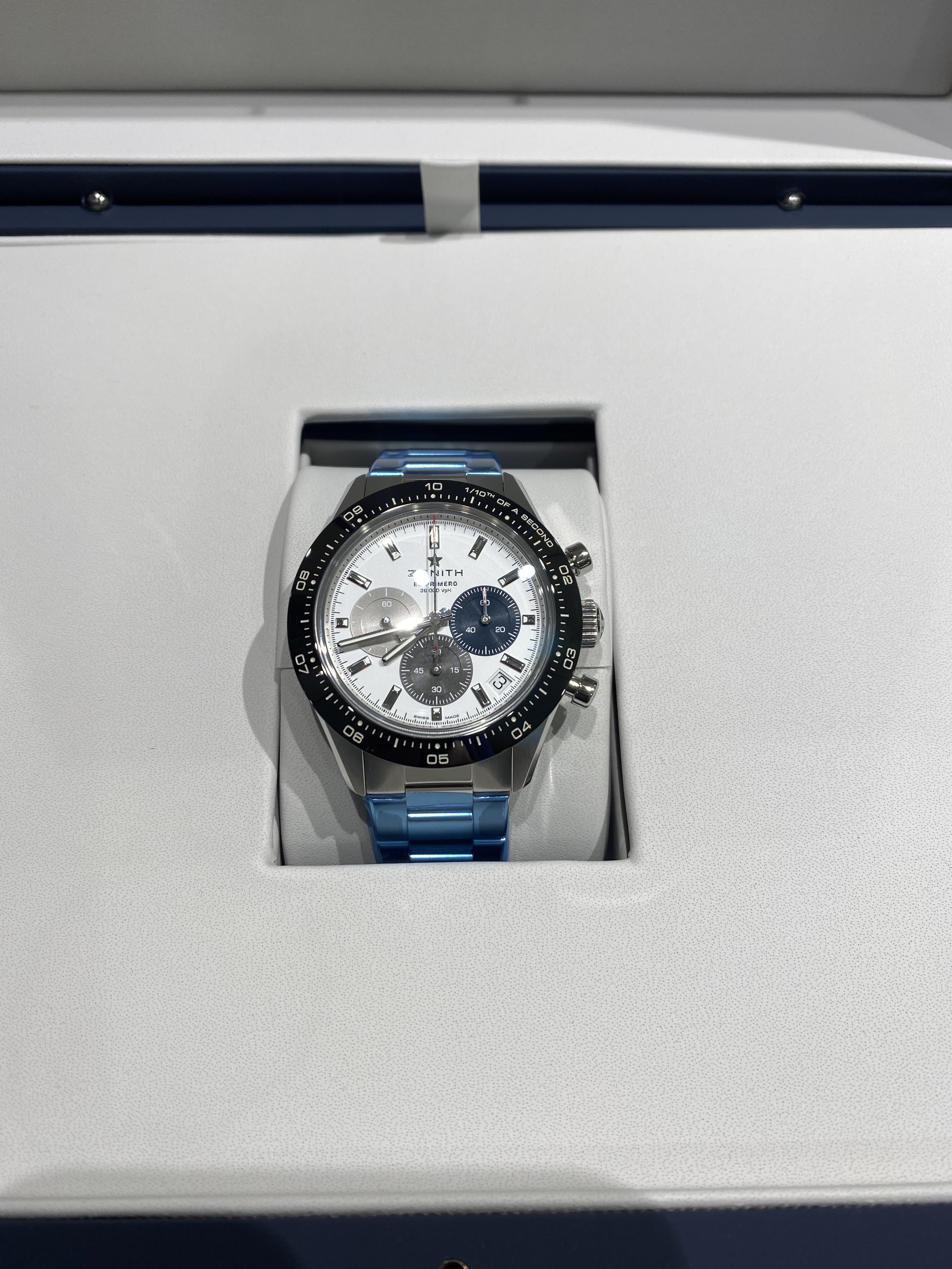 The moment I saw this beauty in the metal at my local AD, it was a no-brainer. They had the black matte dial variant, which I would usually prefer. However, I decided to have them order the white matte dial variant. Perhaps, since I've always been a fan of the El Primero's signature tri-color overlapping sub-dial layout, I believe the black ceramic bezel contrasts perfectly against the stark white dial and the blue, anthracite, and light gray registers: