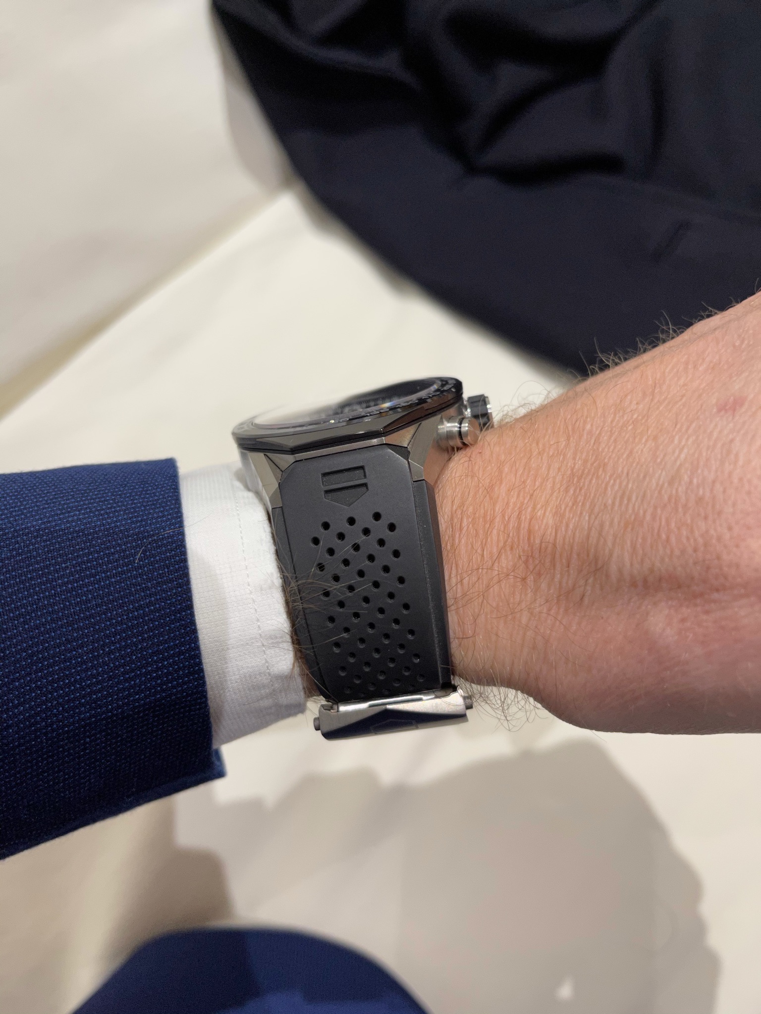 Yours is for sure the earlier version of the Modular 45 straps, which is too long. The size of the straps was later updated by TAG Heuer, although keeping the same part numbers. So when buying online, it’s important to be sure that you will receive the updated version, just asking the length of the shortest half of the strap.