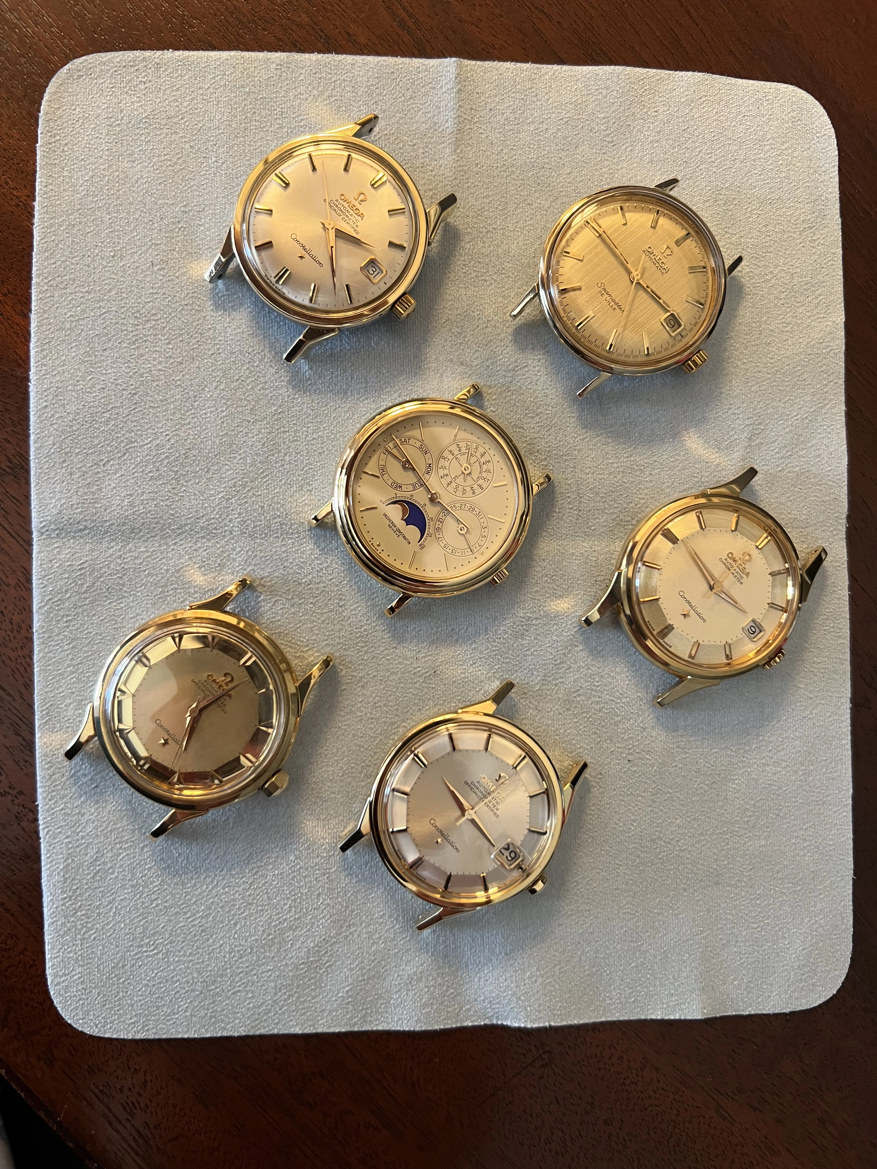 Strictly speaking, I’m not a “new” member—I’ve been lurking around for a while, and have actually bought a couple of beautiful pieces from some OF members—but I’ve neither introduced myself properly nor been an active contributor. I’m hoping to become more active in the new year, though, especially since my collection has left “daily driver and a nicer one” territory and is approaching “compulsion.” The attached photo features my constellation of Omegas, plus one imposter. (Not pictured is the gorgeous ghost bezel 1680 I purchased from @dsio.)