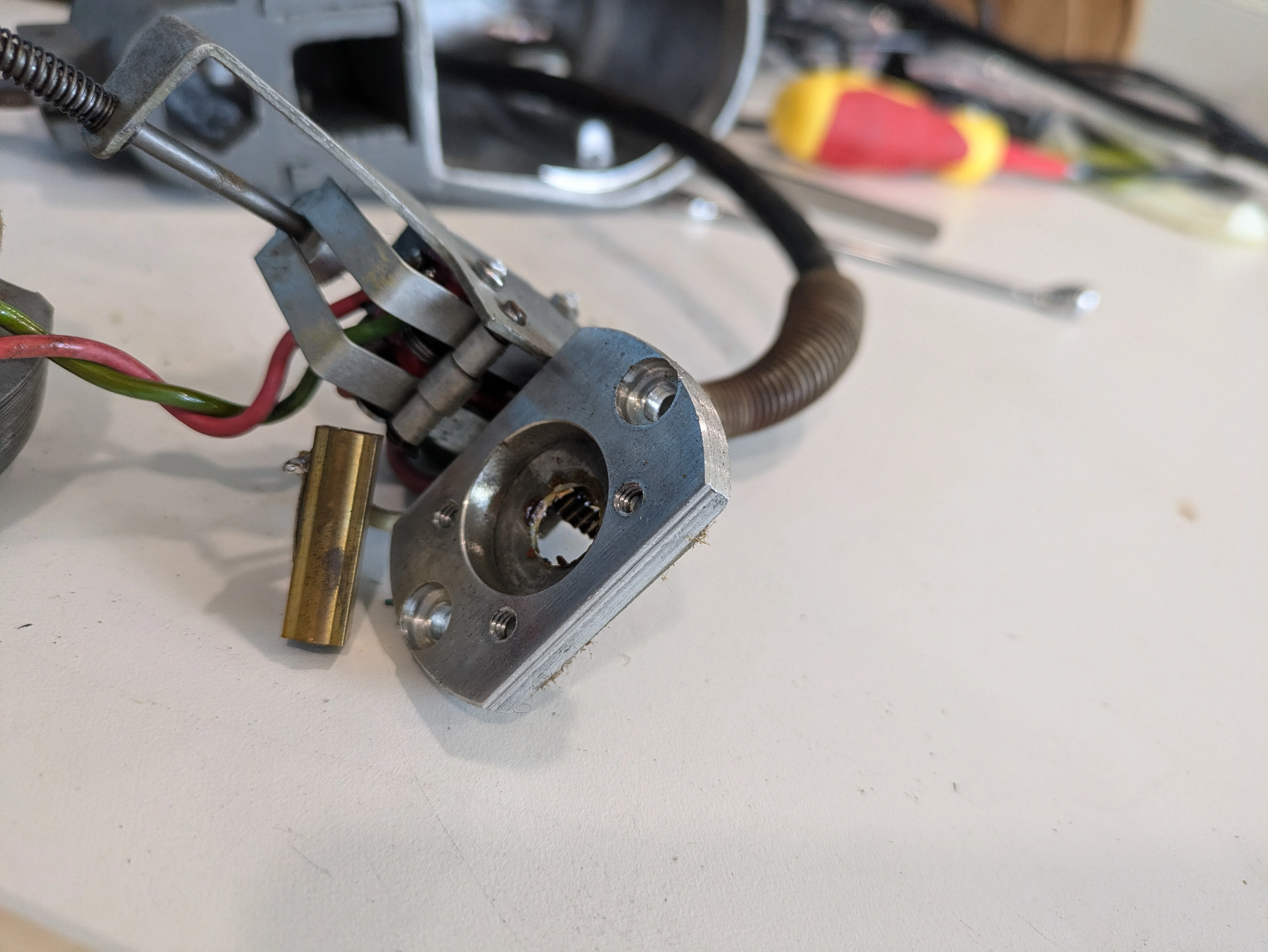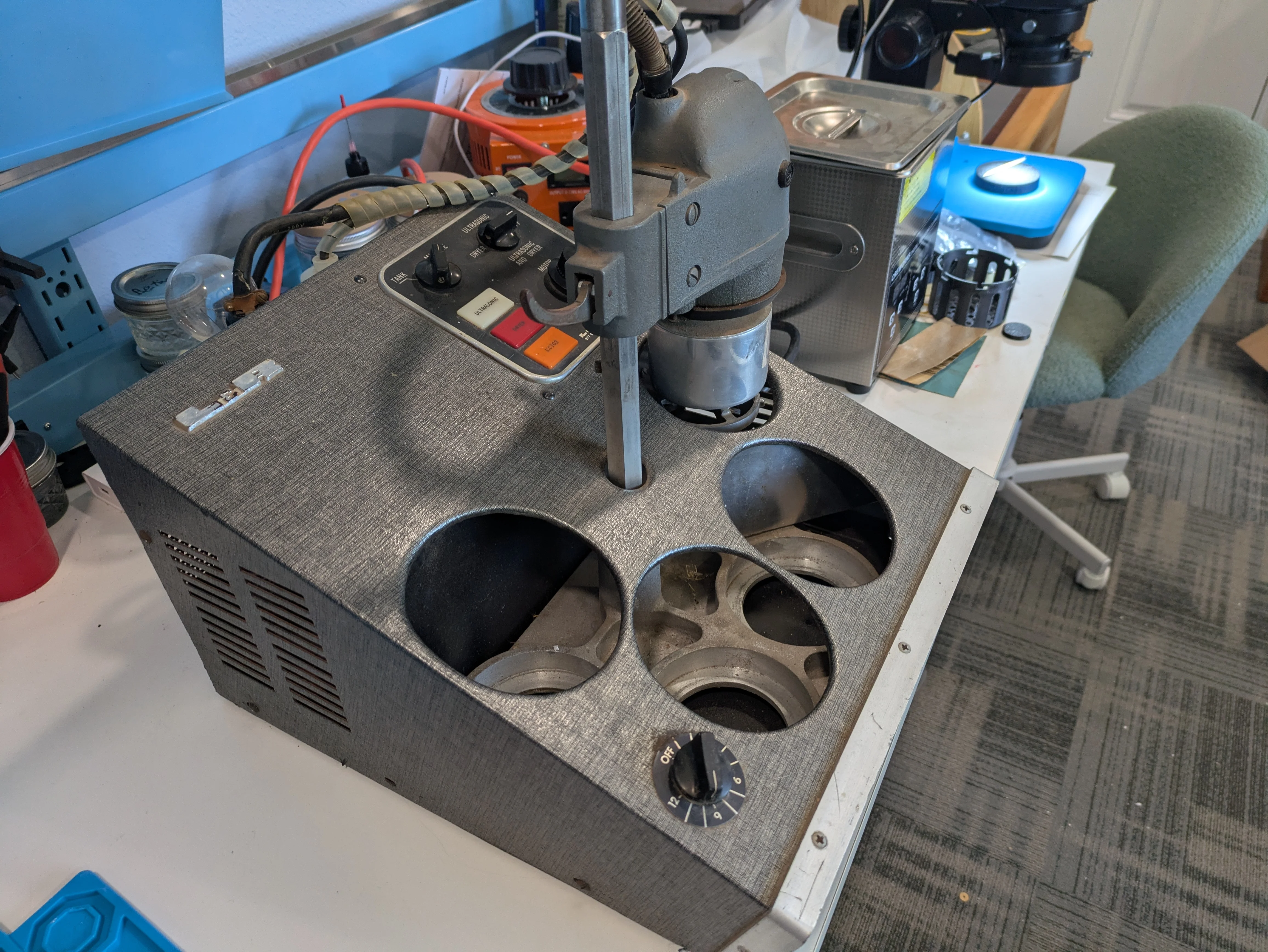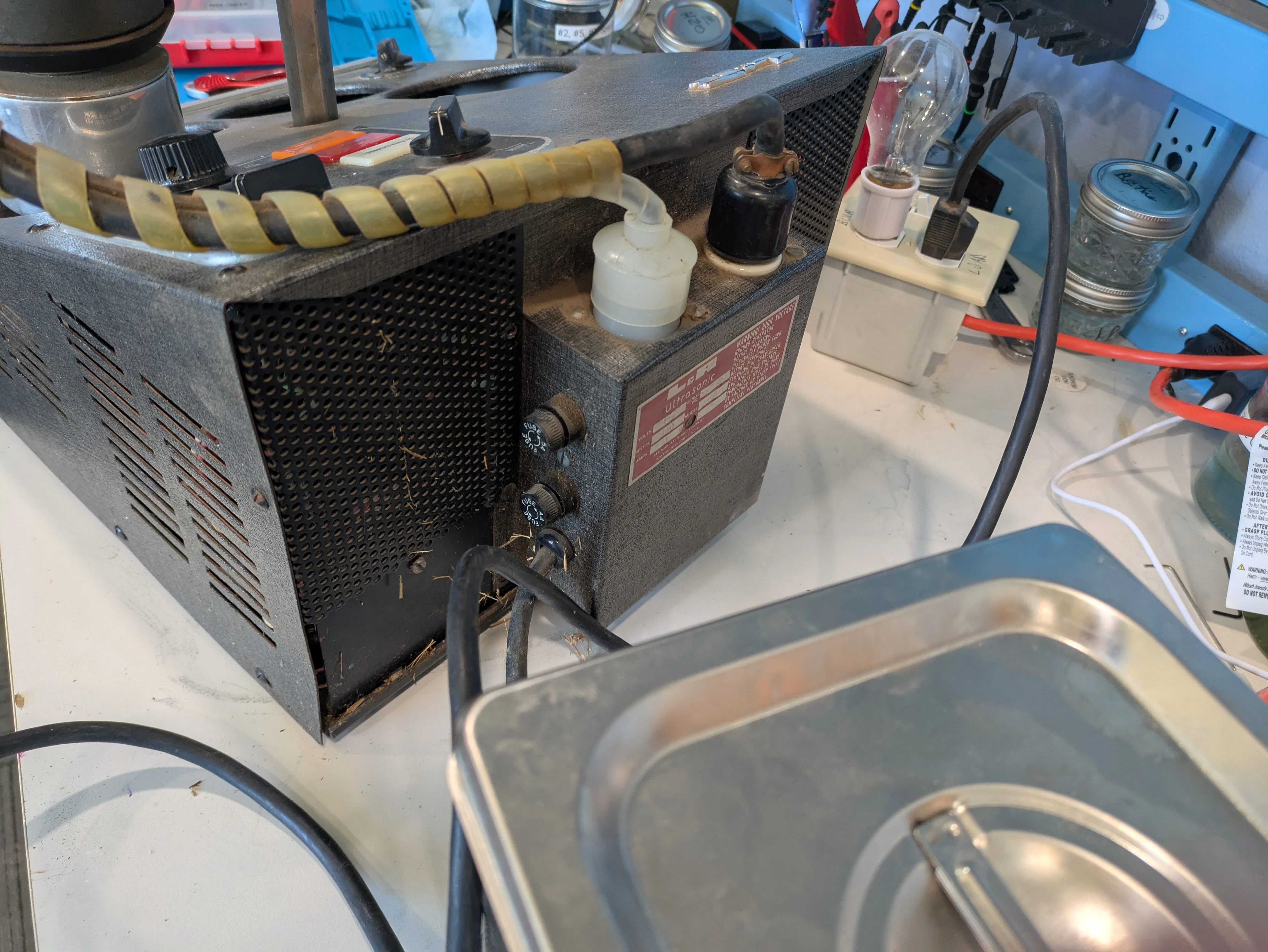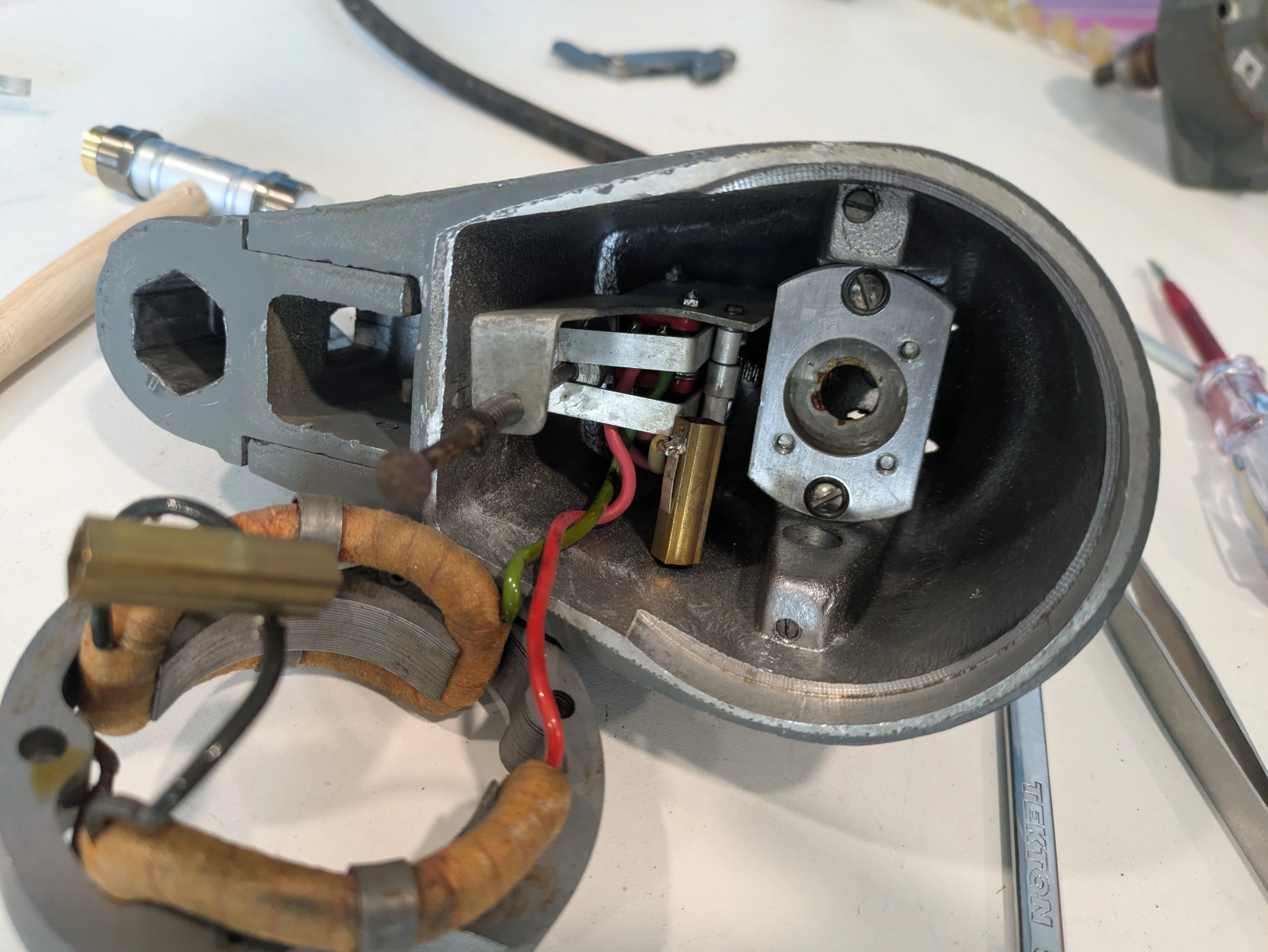 I spent a few hours disassembling it today. I took plenty of pictures, and have to figure out what needs repair. I presume all of the switches dirty/need cleaning in SOME way, and I'm sure there are some other components that need help. My next step is probably going to be to give it a good clean, and try to figure out the wiring diagram. The machine is FILTHY, there is grime and grossness all over the machine, plus some grass, webs, and bugs throughout. I'm guessing this lived in a barn for a while. I ALSO haven't even dug into the head, where the motor and transducer are. The brushes no doubt need some TLC, and the wiring that goes into the head has a busted grommet at least, so I'll have to poke at that as well.
