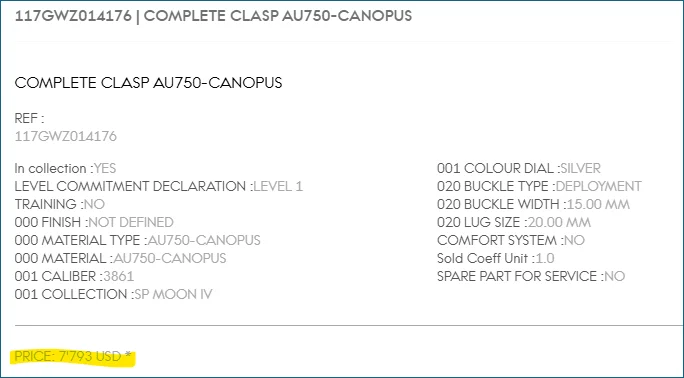 As of July 2025, this clasp sells for $7,793.00 + tax direct from Omega. Prices are known to increase depending on the price of gold.