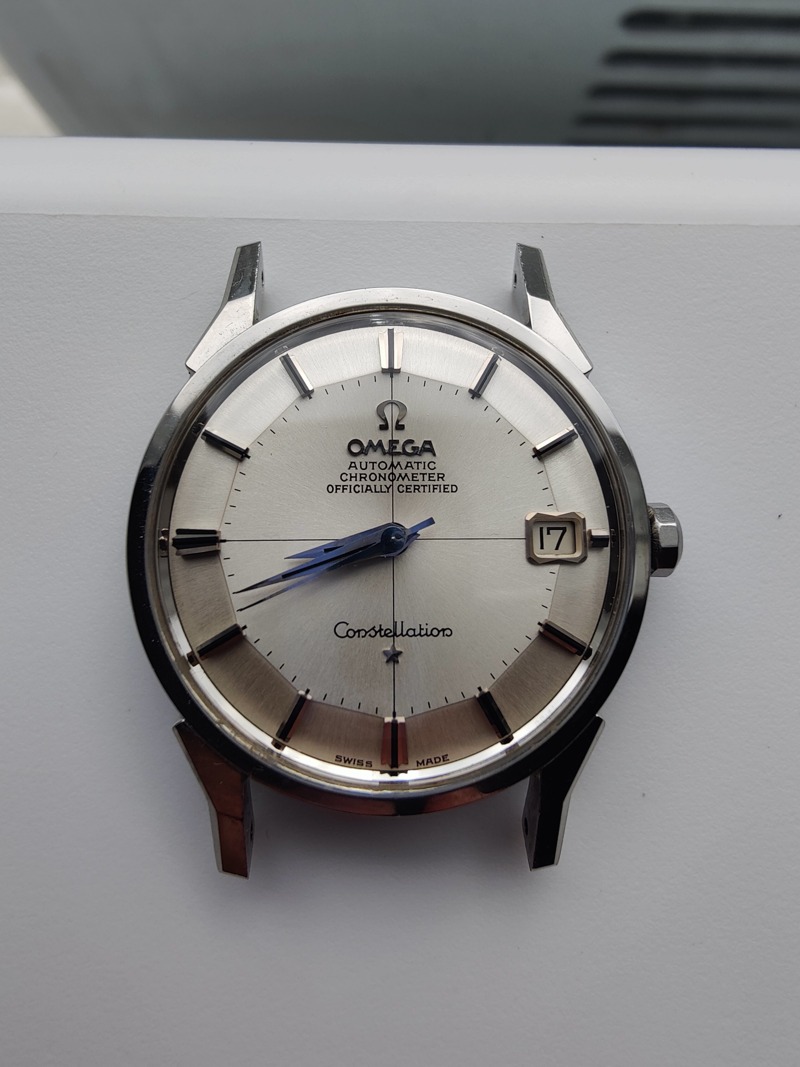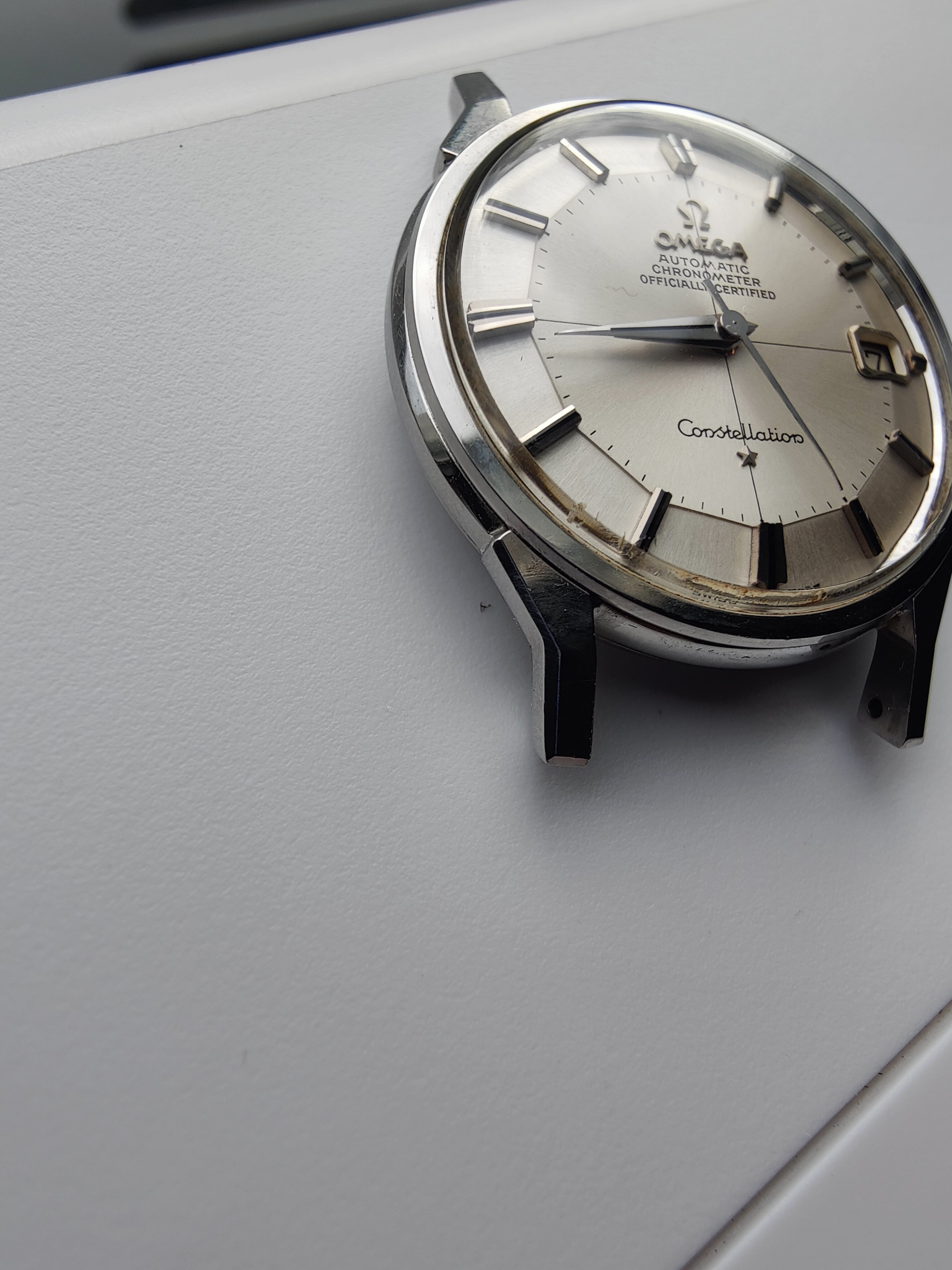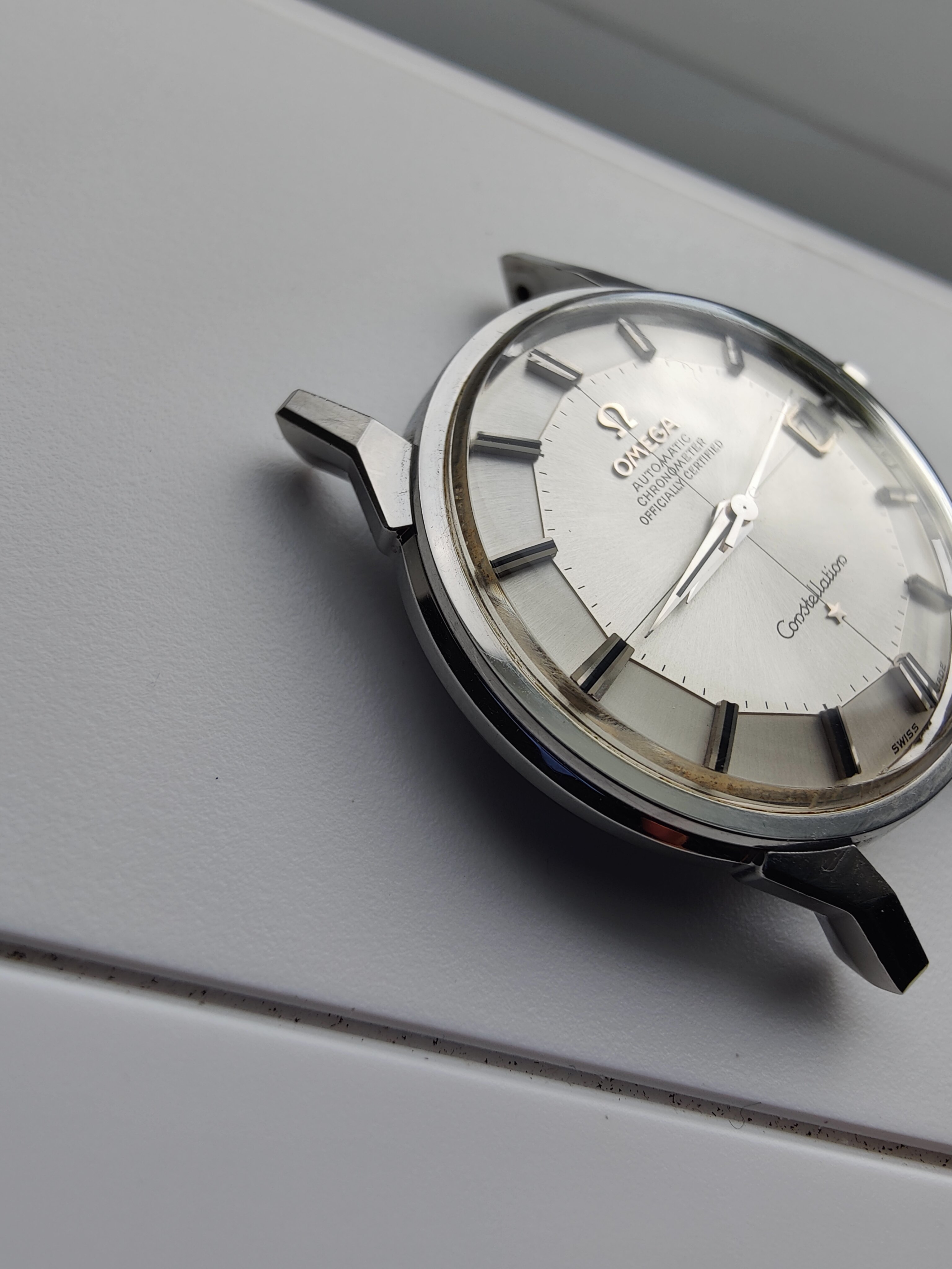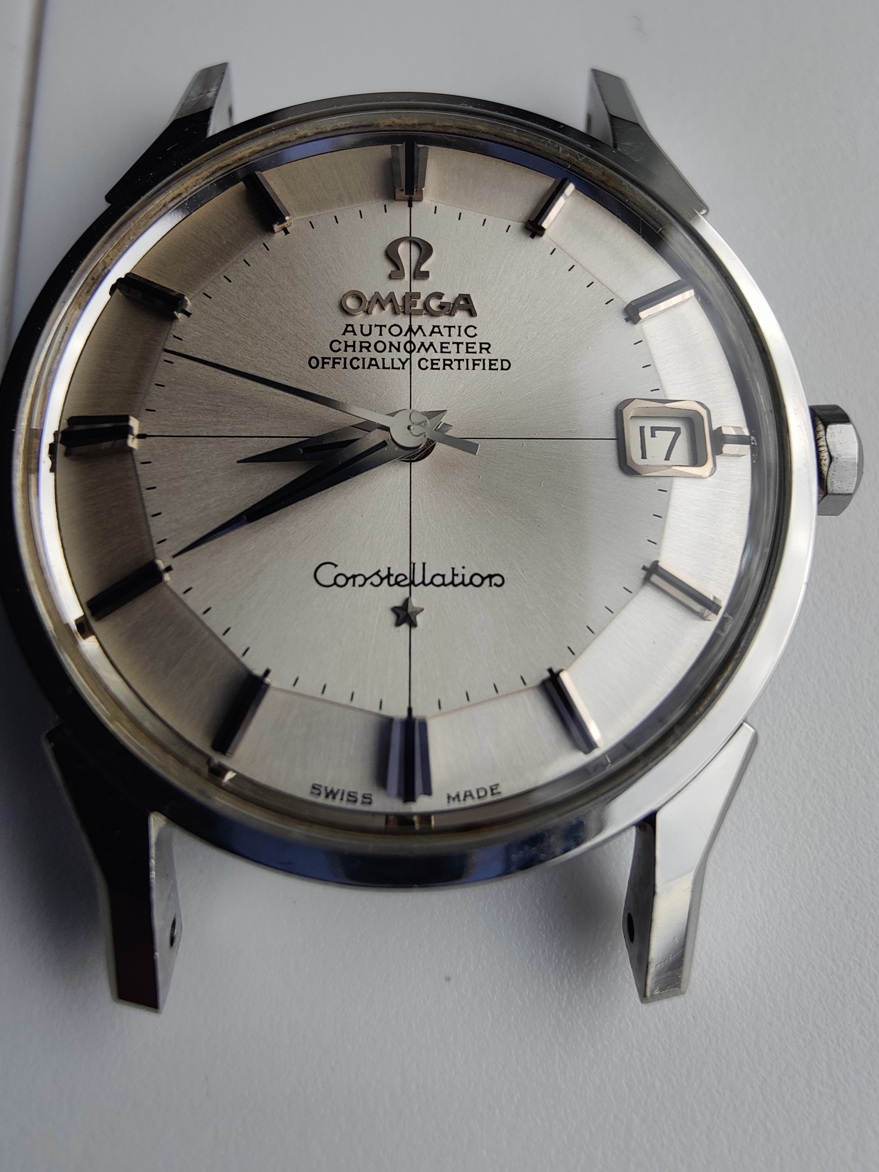 路I want to share a new acquisition that arrived by FedEx this afternoon. I've been searching for a nice stainless steel example for a while. I have a nice dome dial Constellation and a 14k gold 168.005 already so this will round out the collection nicely. This popped up on eBay last week. Bought it for $1,650 plus shipping and tax ($1,865 total).
