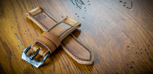 • Strap in English leather, handcrafted in Italy, with Terra Cielo Mare stitches