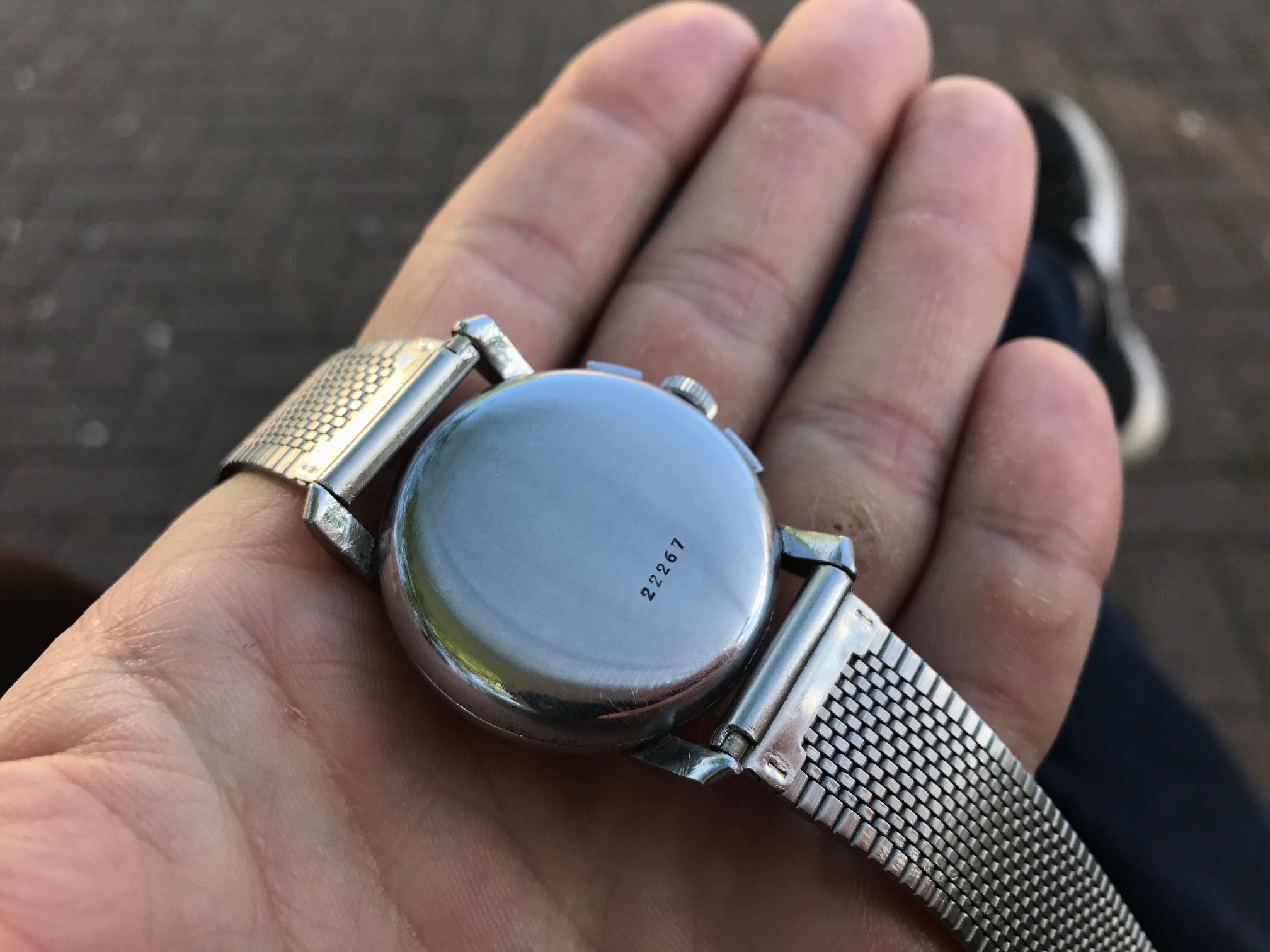 The seller says that it is a prototype since it has no reference number and since the dial is unseen on other examples (but looks kosher overall).