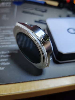Usando la herramienta de palanca de plástico y tomándome mi tiempo para evitar daños importantes en la junta tórica naranja y la junta de sellado de plástico que mantiene el módulo LCD apretado en el cuerpo de titanio. Esta área requiere atención adicional para minimizar cualquier daño. Esta fue el área más difícil y requerirá un poco de sellador para volver a ensamblar. También mantuve el módulo LCD intacto y no lo desmonté más.