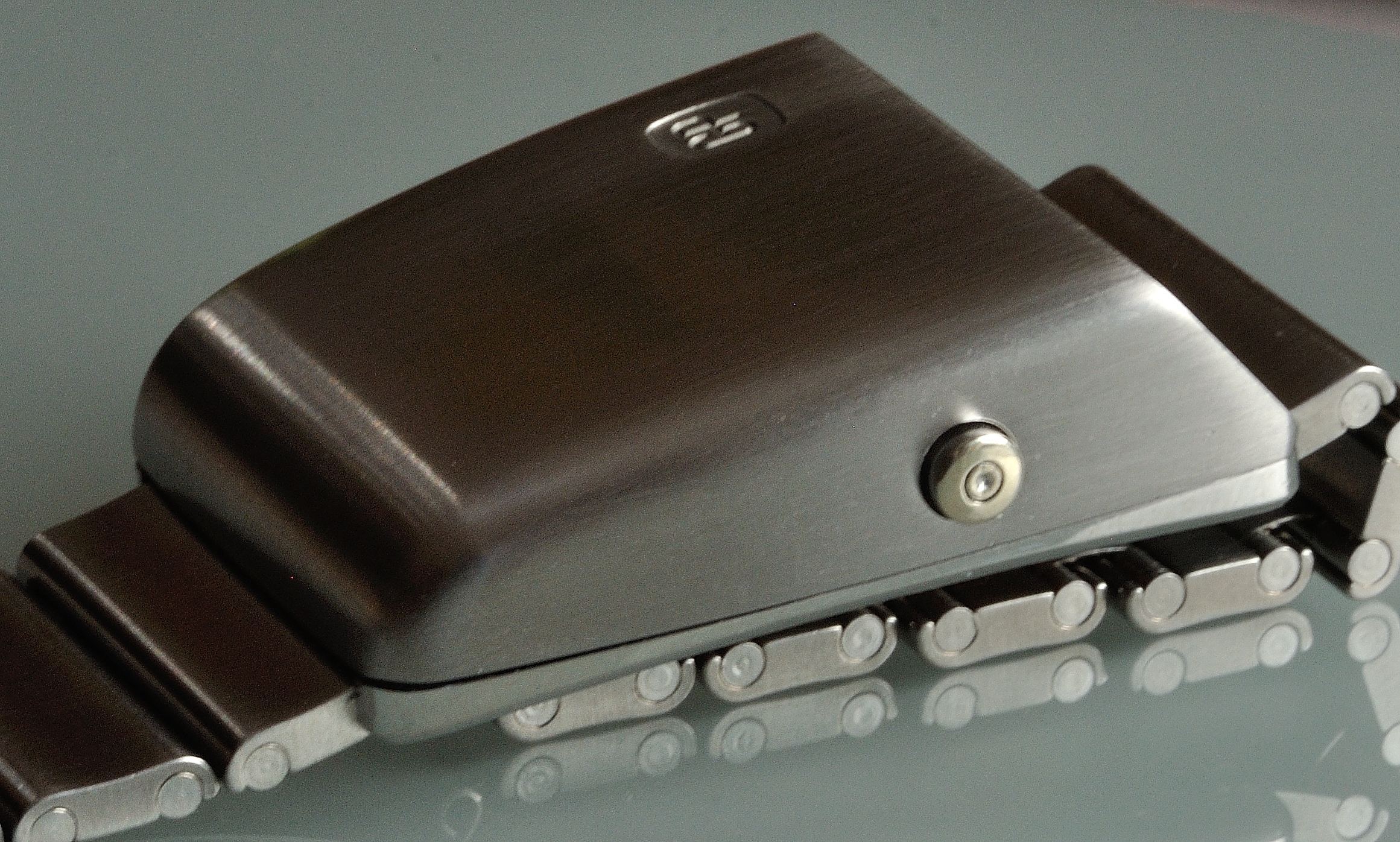 The Girard-Perregaux (Ref. 9931) LED watch (a.k.a. Casquette) is arguably the most attractive of the LED watches. Produced only for less than three years, it was quite innovative: custom integrated circuit, flexible circuit board, aged quartz crystal, etc. The design of the case oozes geeky 1970’s space theme, which would fit perfectly on the set of the TV show Space 1999. The substantial stainless steel case has three finishes: polished bezel and pushers, brushed sides and matted area surrounding the synthetic ruby window. The stainless steel bracelet is brushed, heavily tapered and has scalloped links. GP also produced the watch in a gold capped version and a cool looking polymer material called Makrolon. Despite the heavy investment done by GP, only a few thousand were produced during 1974-1976.