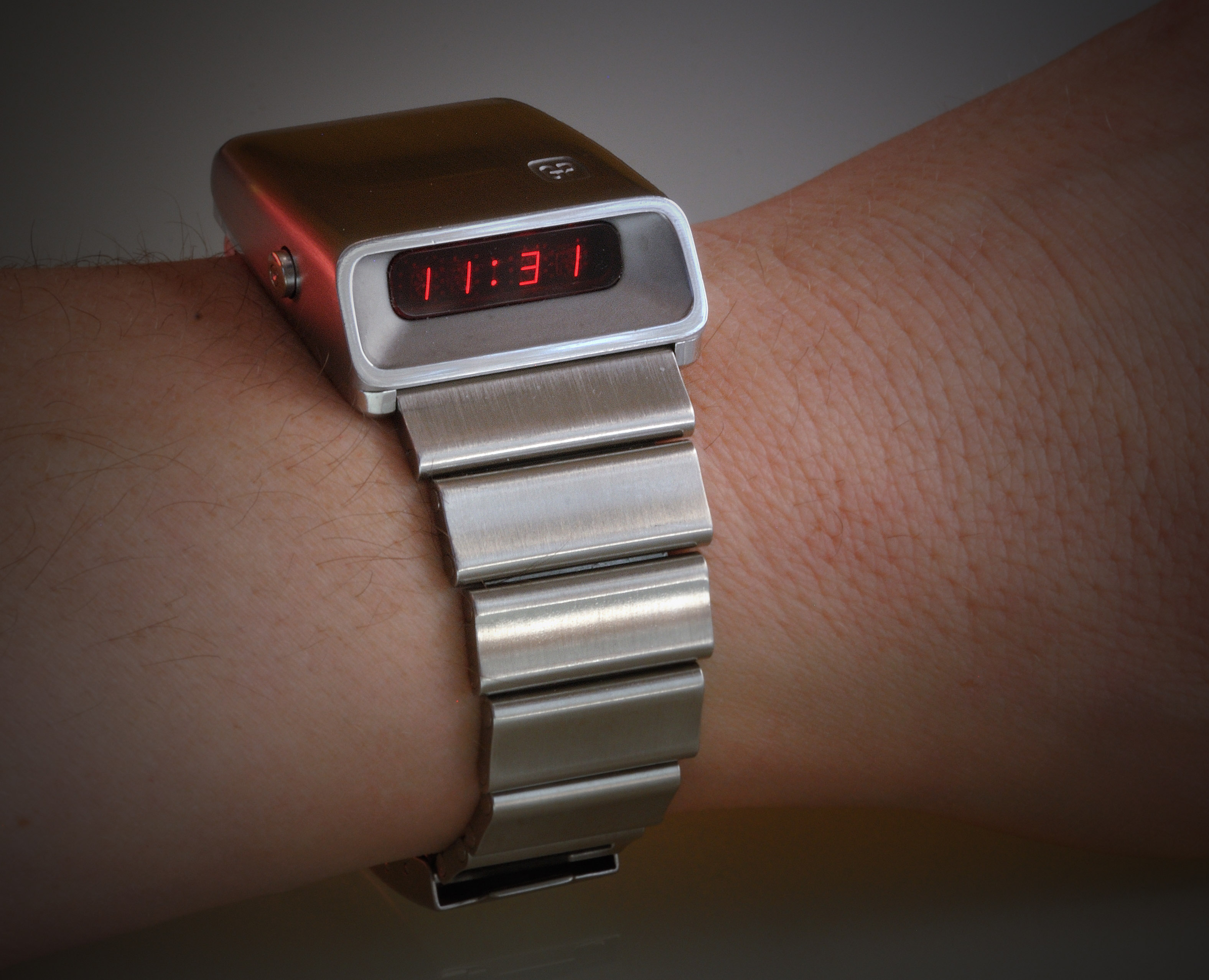 For a brief time in watchmaking history the light emitting diode (LED) display watch was in vogue. In 1972, the Hamilton Pulsar was the first to come out with such technology and, although expensive, caught on big time, with Hamilton selling 10 000 watches/month at its peak. A year later Seiko came out with the first watch with a liquid crystal display (LCD). The two technologies battled for market share during the 1970’s. Alas, LCD consumed much less power than LED technology and proved to be more convenient. The LED watch consumes several tens of milliamperes of current when displaying, a thousand times that of the LCD, so to save battery power it could only be displayed for a few seconds after pressing a pusher. By the end of the 1970’s the LED watch had pretty much disappeared from the market.